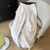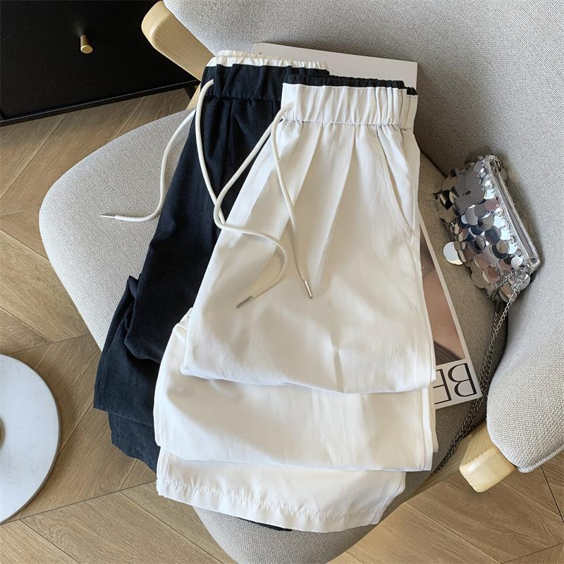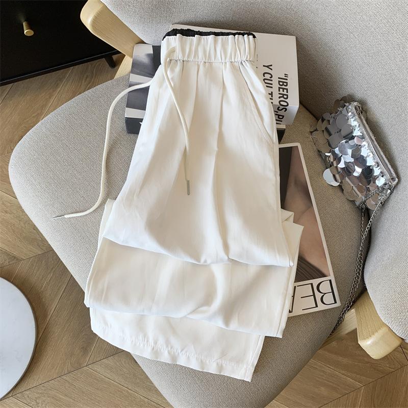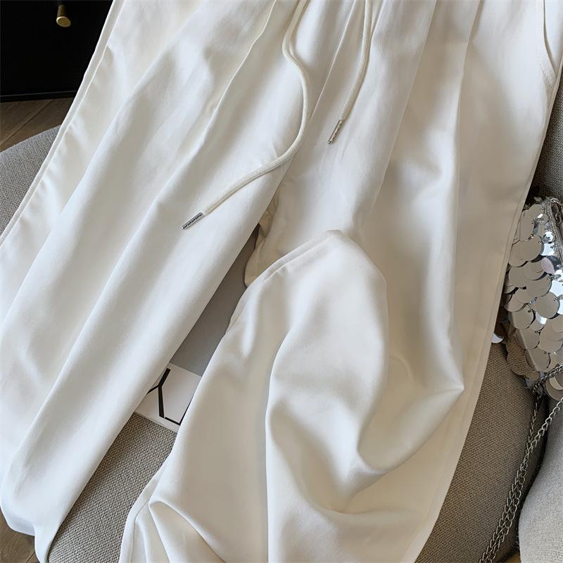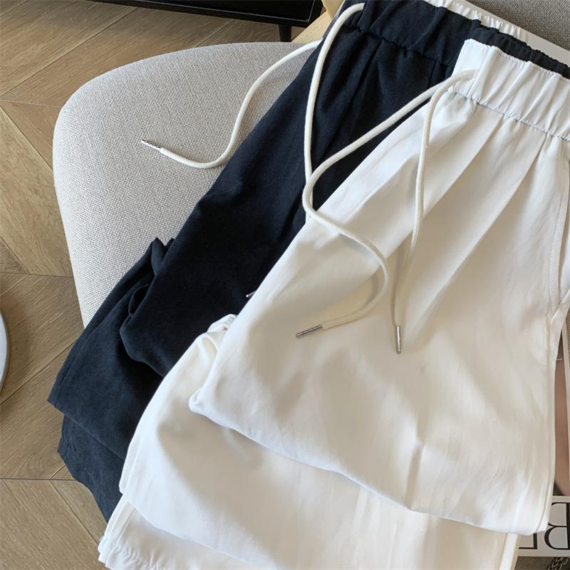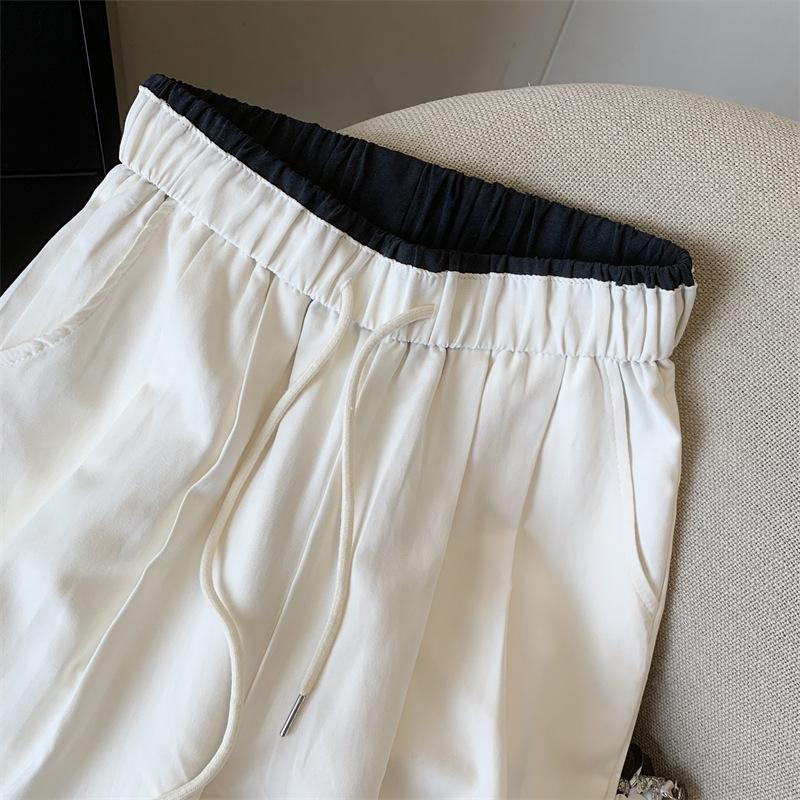 Foto real de pantalones nuevos de pierna ancha texturizados sueltos en color de contraste para primavera, estilo perezoso recto casual deportivo para combinar con todo