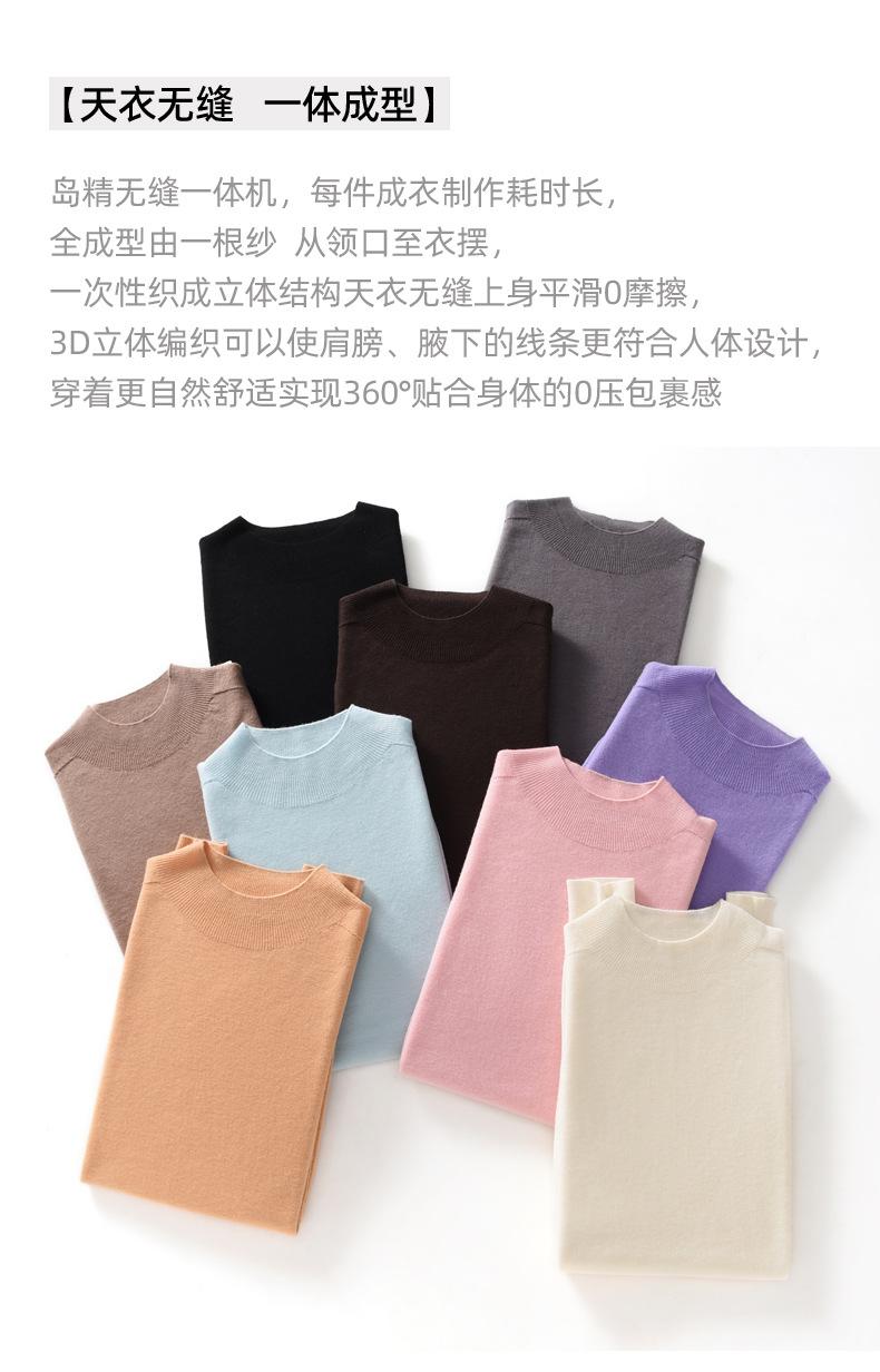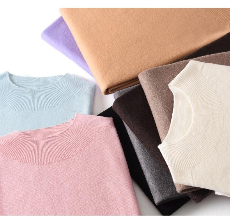 Prenda de Primera Línea de Imitación Fina Suéter de Lana 100 Pura para Mujer Cuello Medio Alto Suéter Jersey Simple de Color Sólido de Alta Gama Otoño e Invierno Ajustado