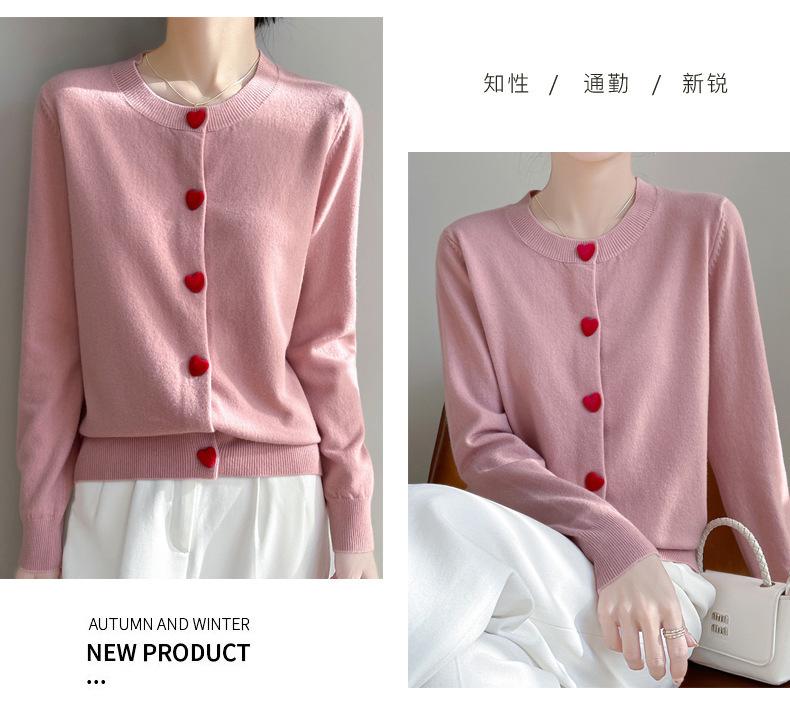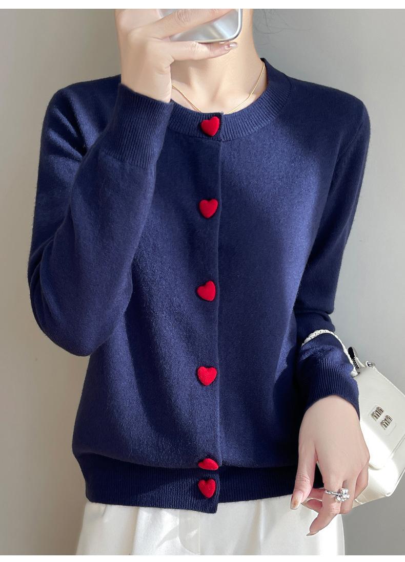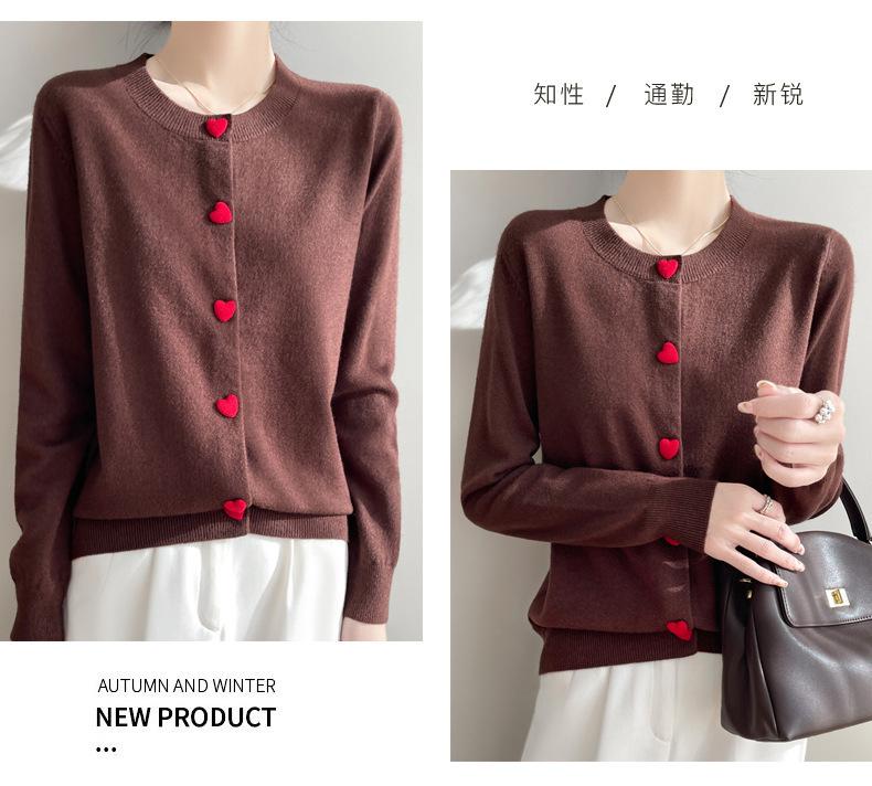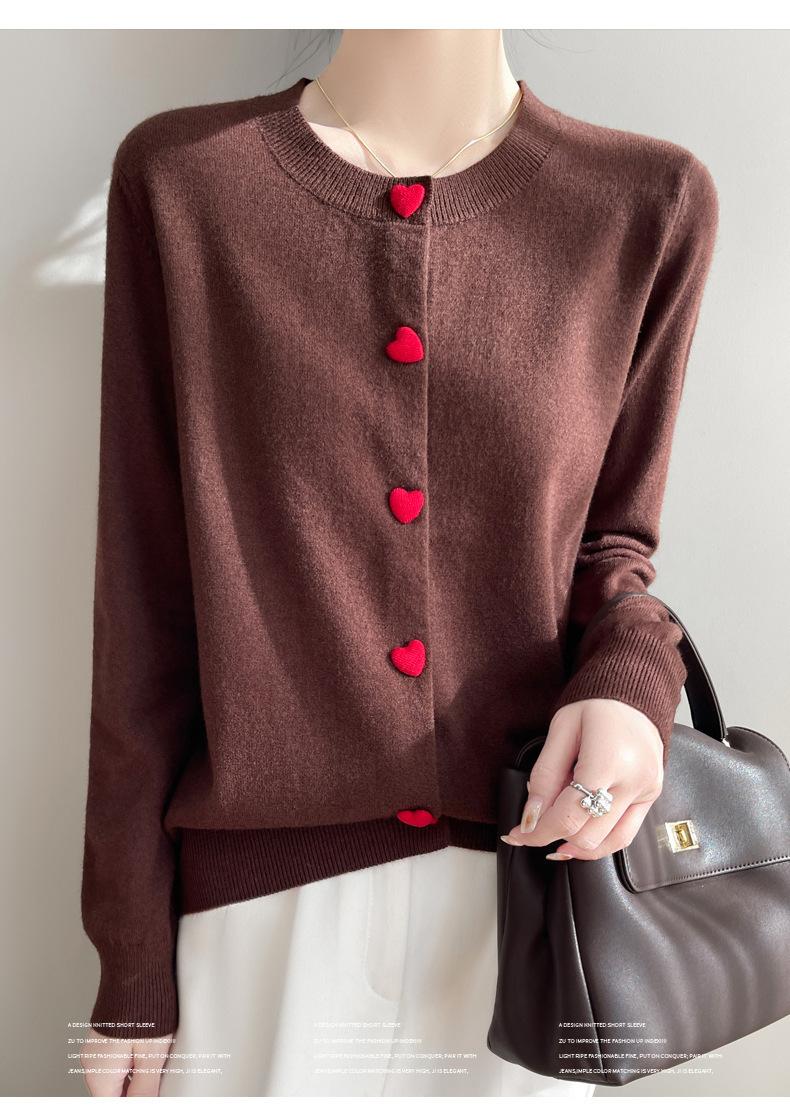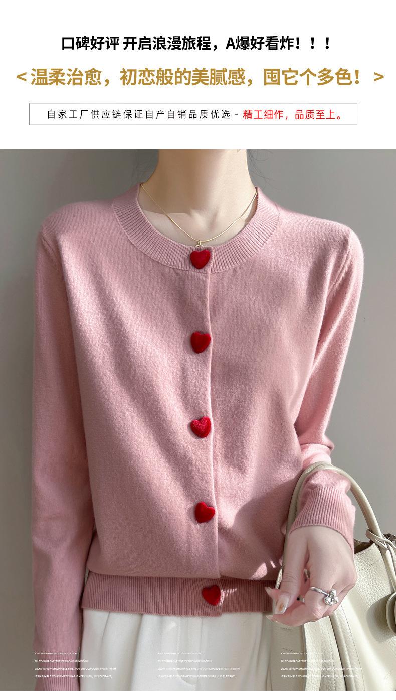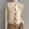 Cárdigan de punto de cuello redondo de terciopelo Andy de estilo dulce nuevo de primavera 2025, botón de amor, color sólido, holgado, tipo chaqueta