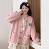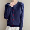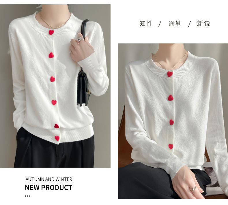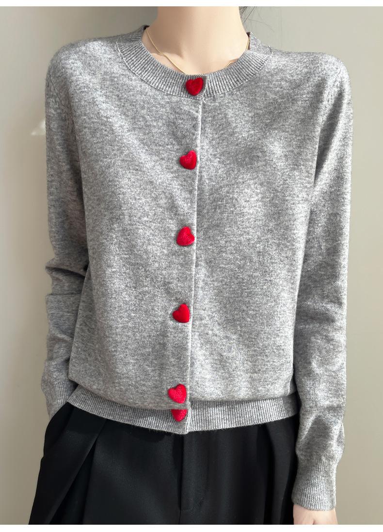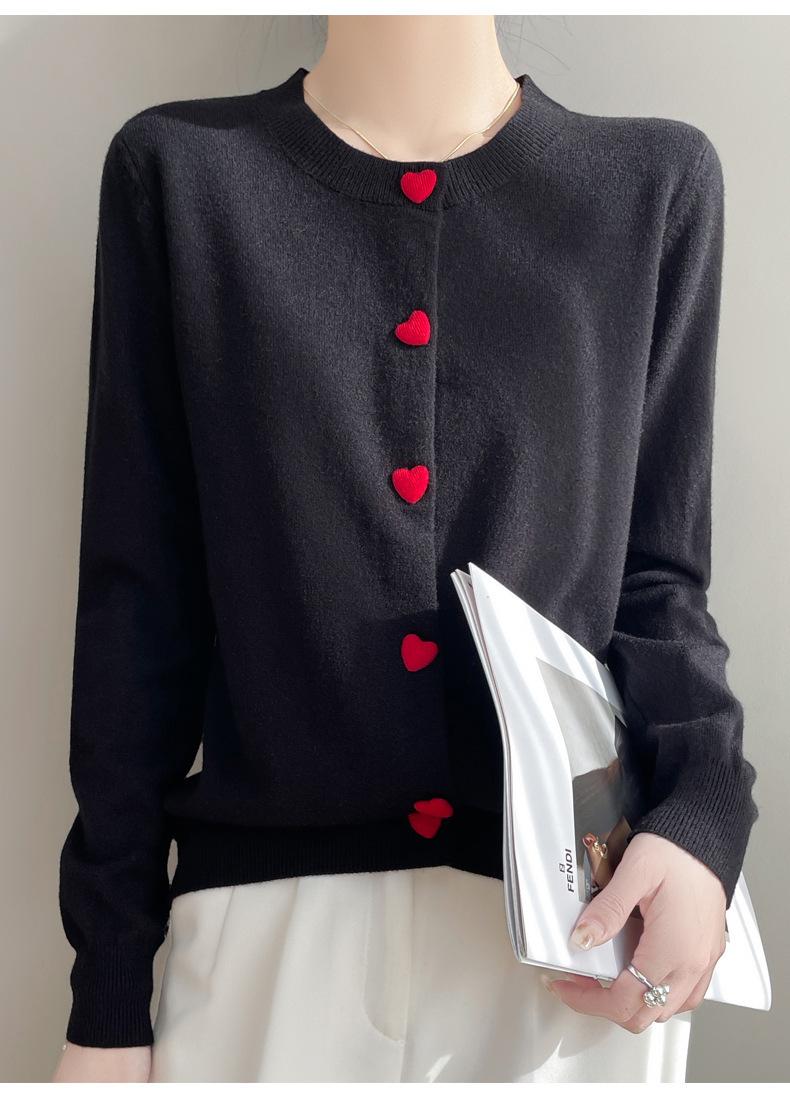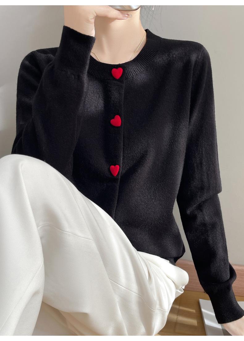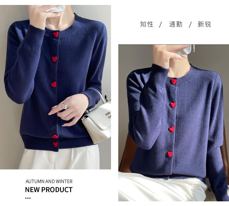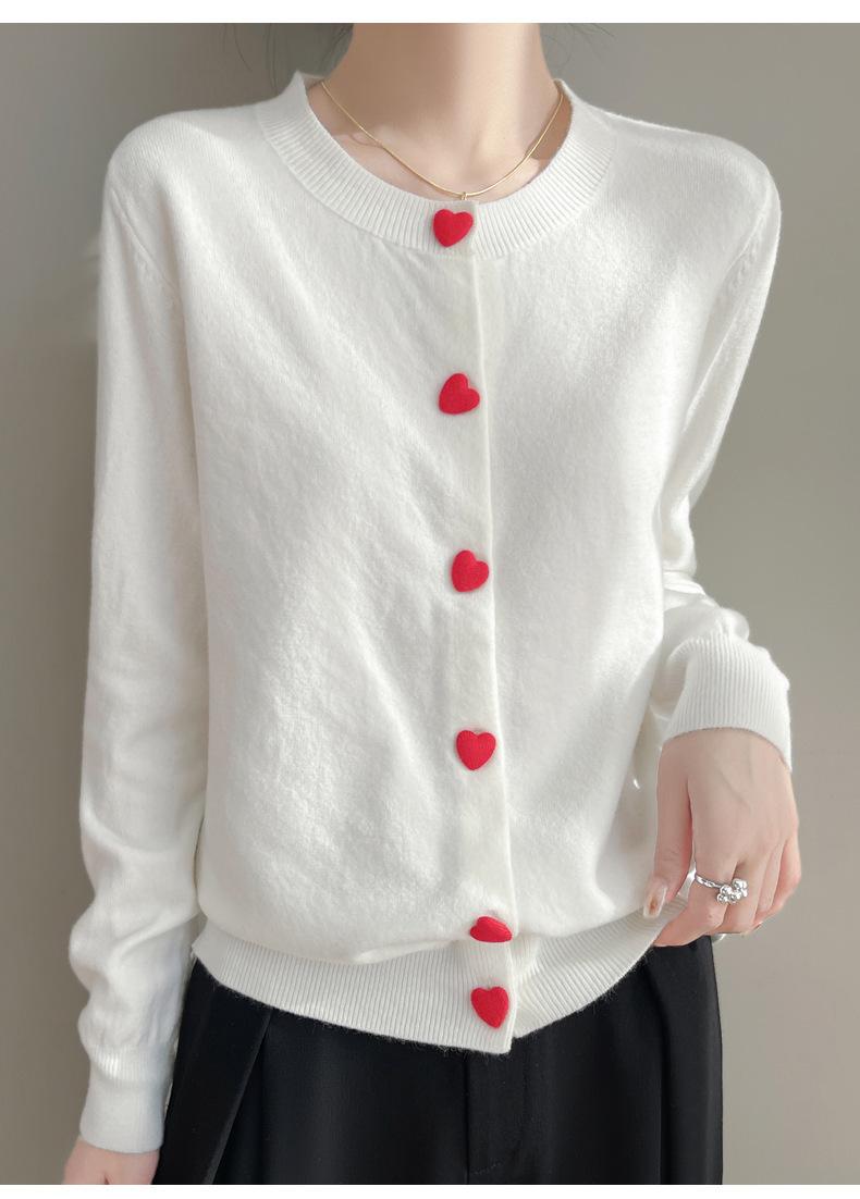 Cárdigan de punto de cuello redondo de terciopelo Andy de estilo dulce nuevo de primavera 2025, botón de amor, color sólido, holgado, tipo chaqueta