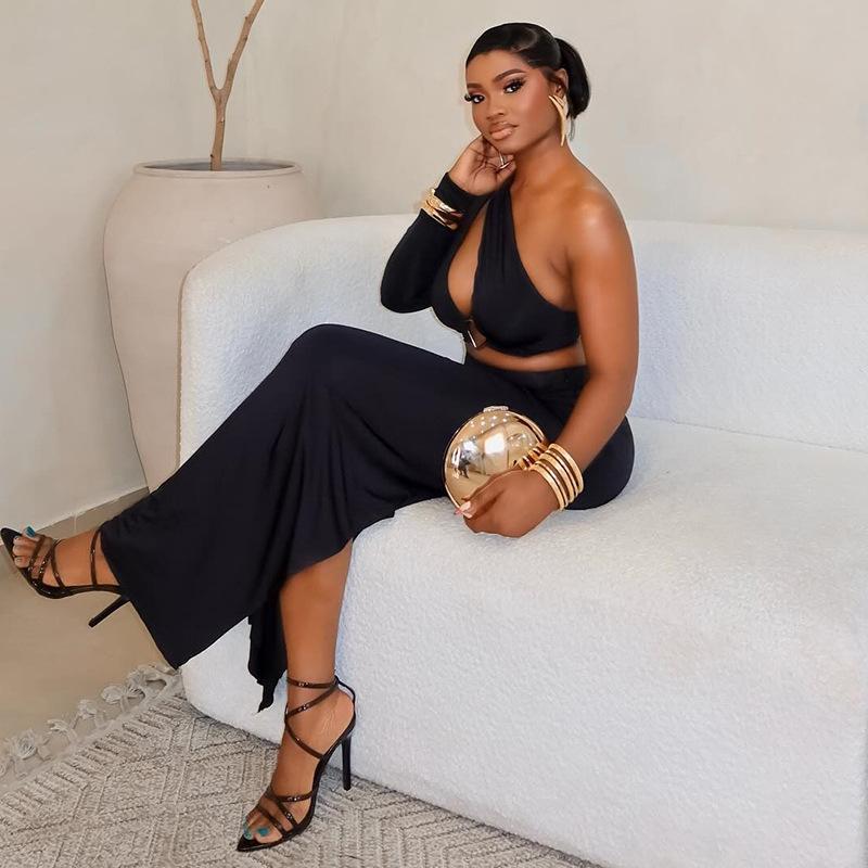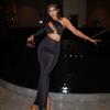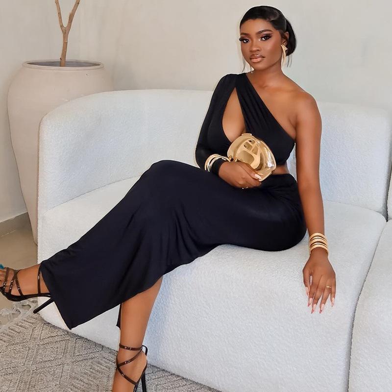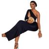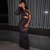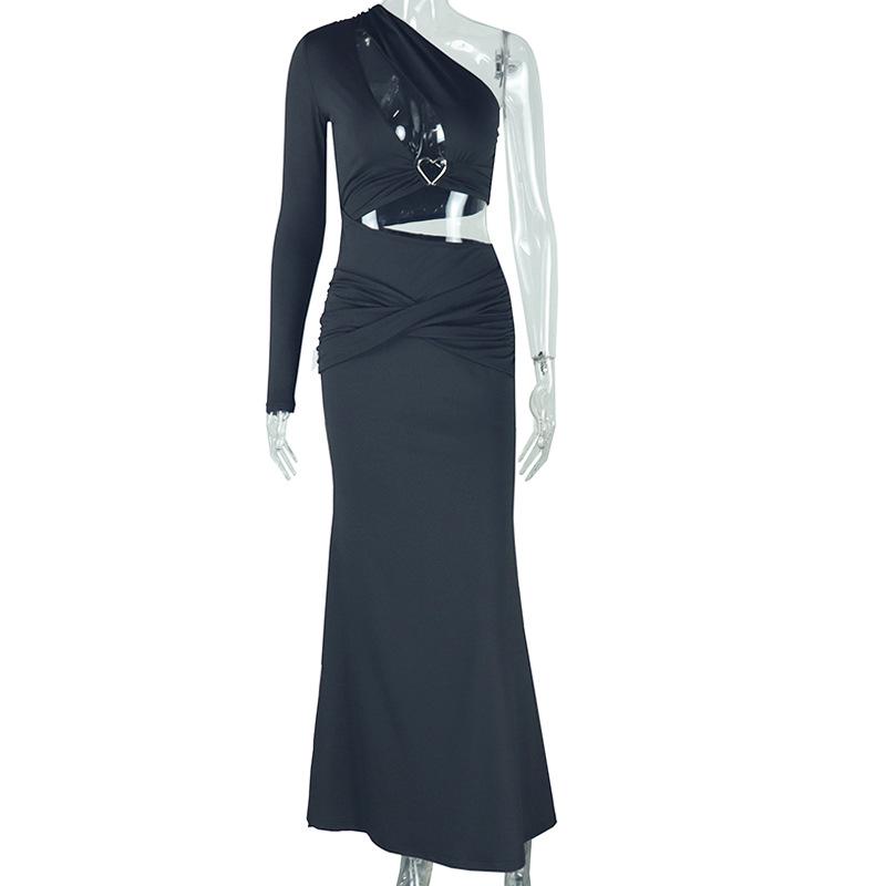 Falda asimétrica de un solo hombro con abertura y cuello para mujer, estilo europeo y americano, de color liso, con ombligo calado y corte entallado en la cadera