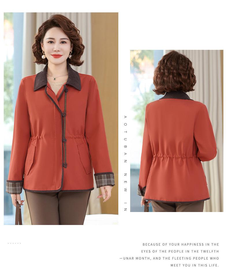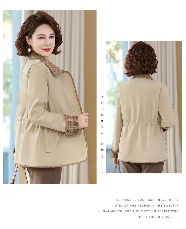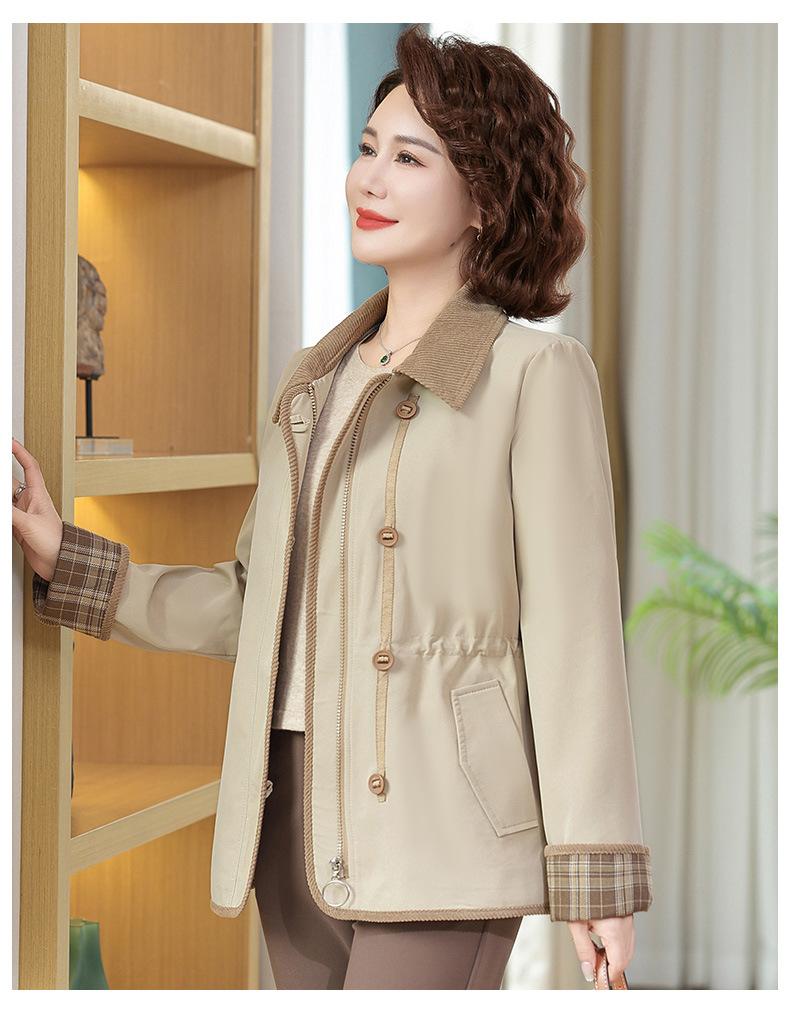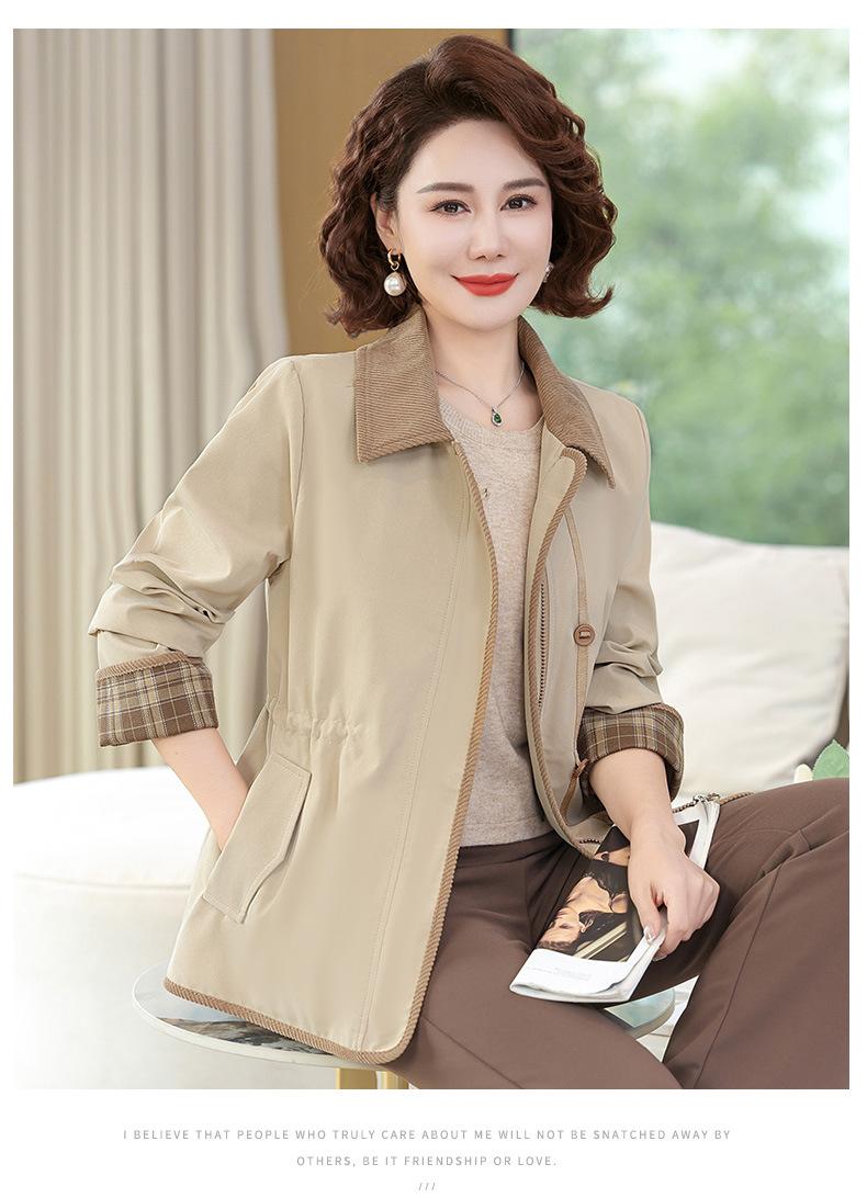2025 Nuevo Estilo Primavera y Otoño para Madres de Mediana Edad Solapa Abrigo Delgado Corto para Mujeres de Mediana Edad y Mayores Top con Aspecto Adelgazante de Cintura