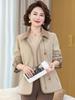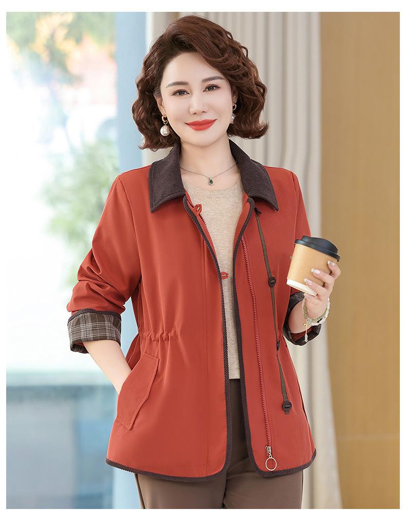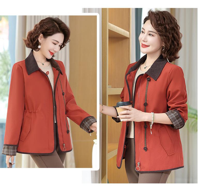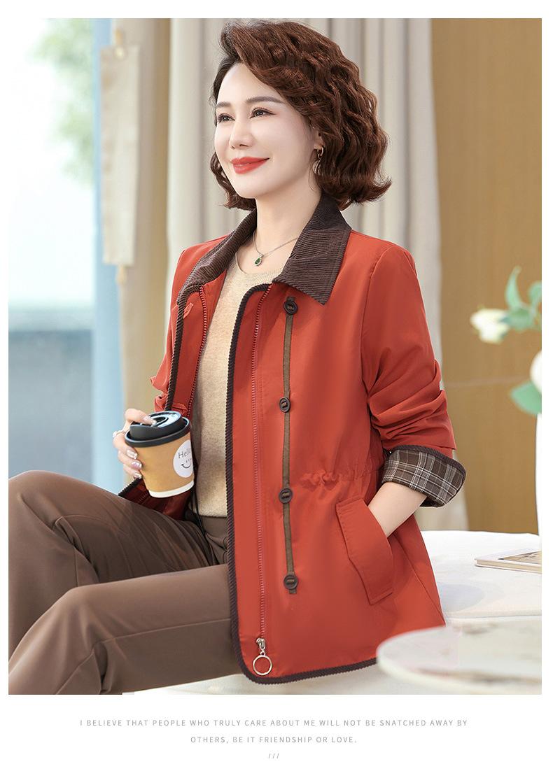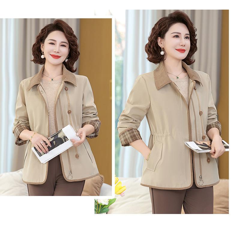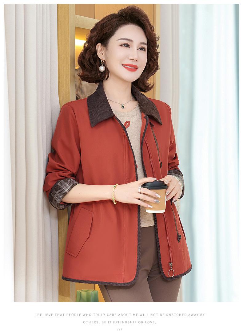 2025 Nuevo Estilo Primavera y Otoño para Madres de Mediana Edad Solapa Abrigo Delgado Corto para Mujeres de Mediana Edad y Mayores Top con Aspecto Adelgazante de Cintura