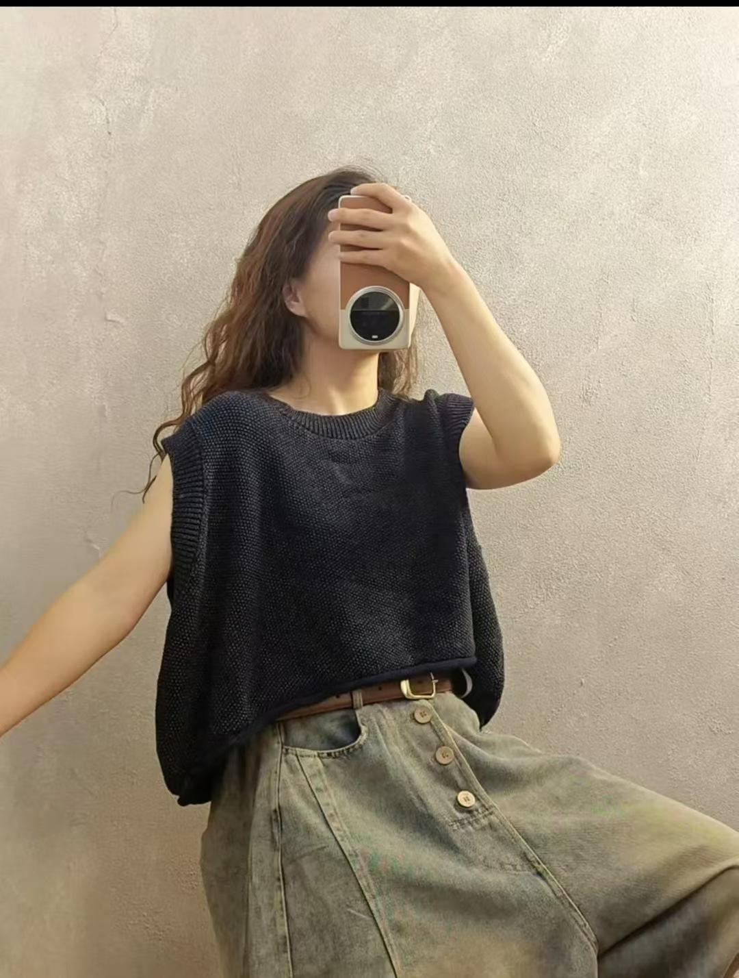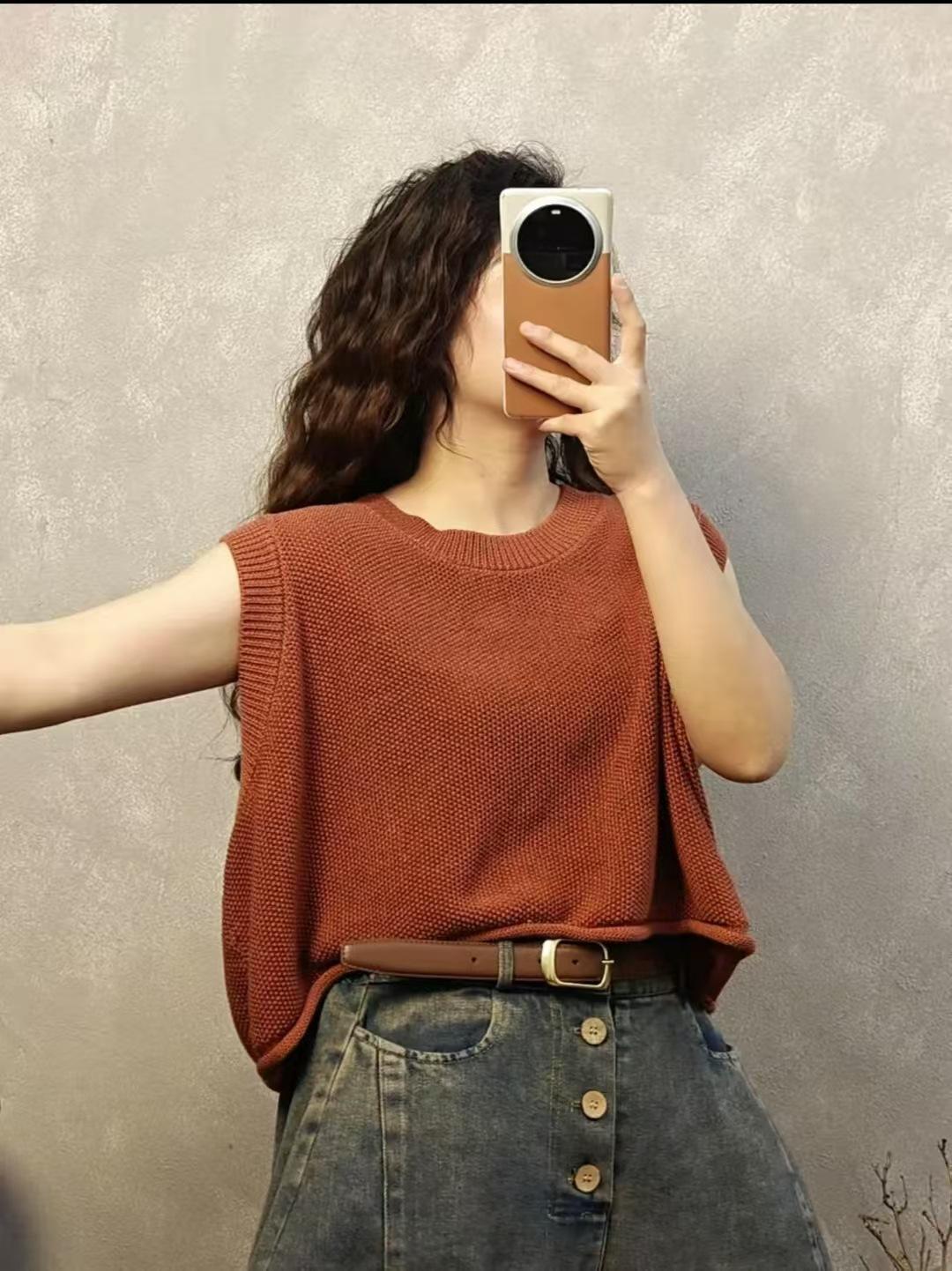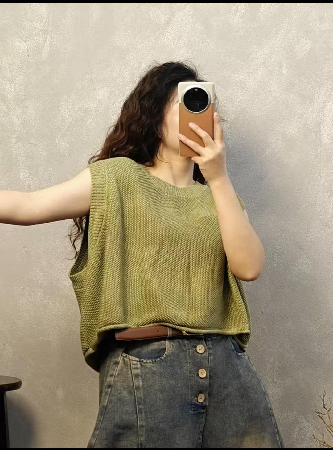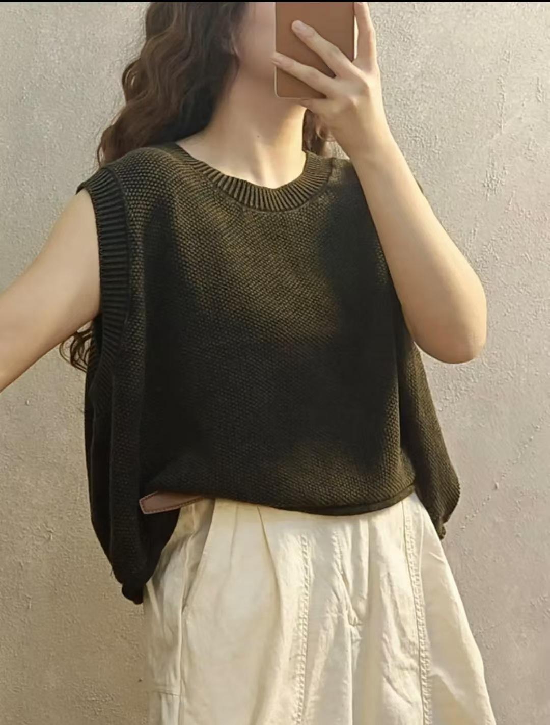 Chaleco de punto para mujer, suéter, primavera 2025, nuevo, de alta gama, holgado, exterior, sin mangas, apilado.
