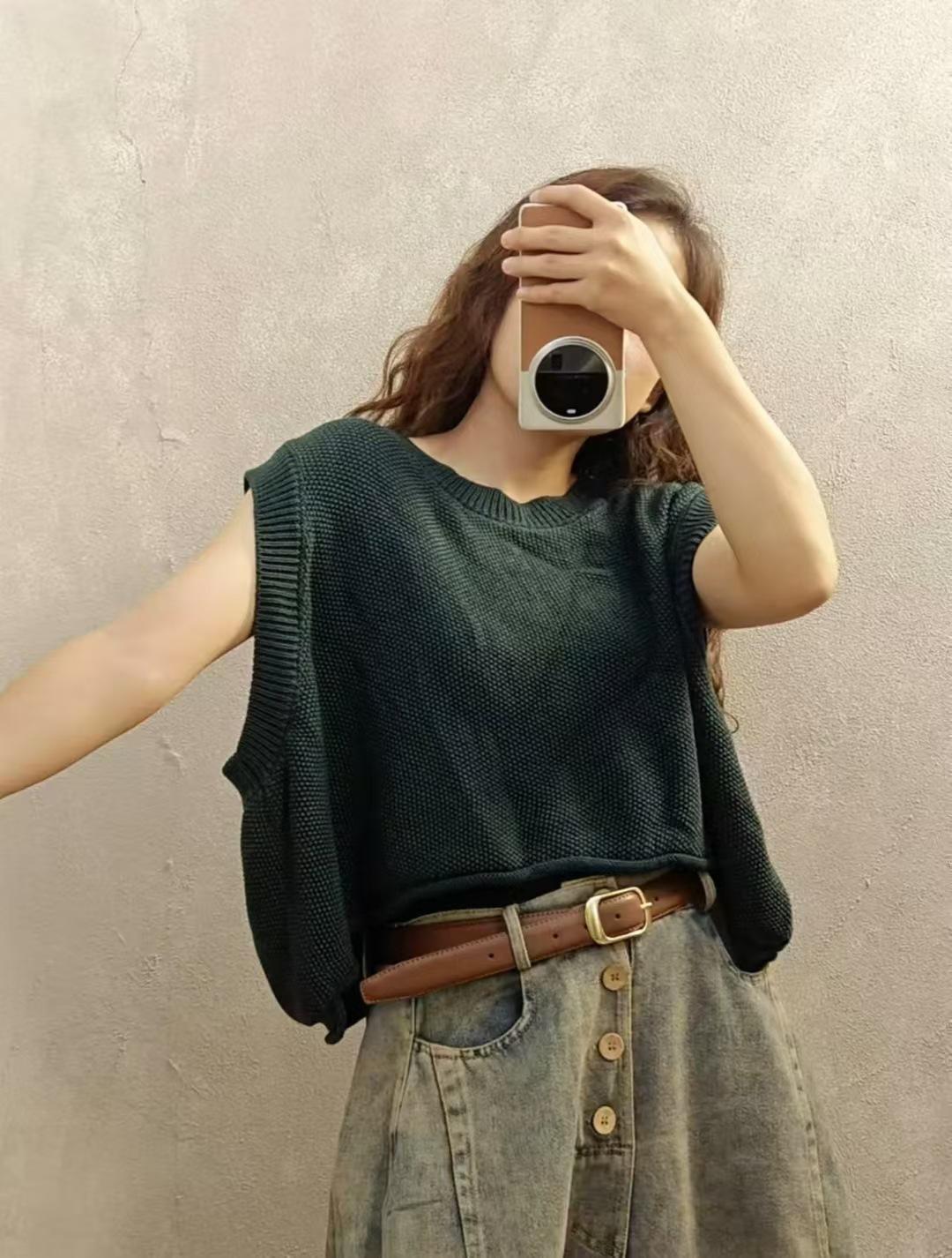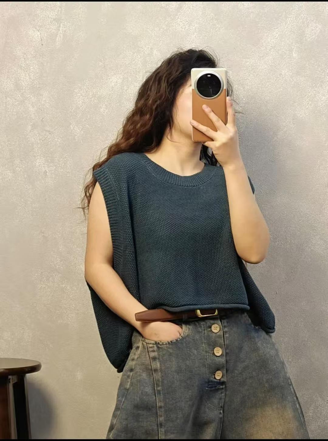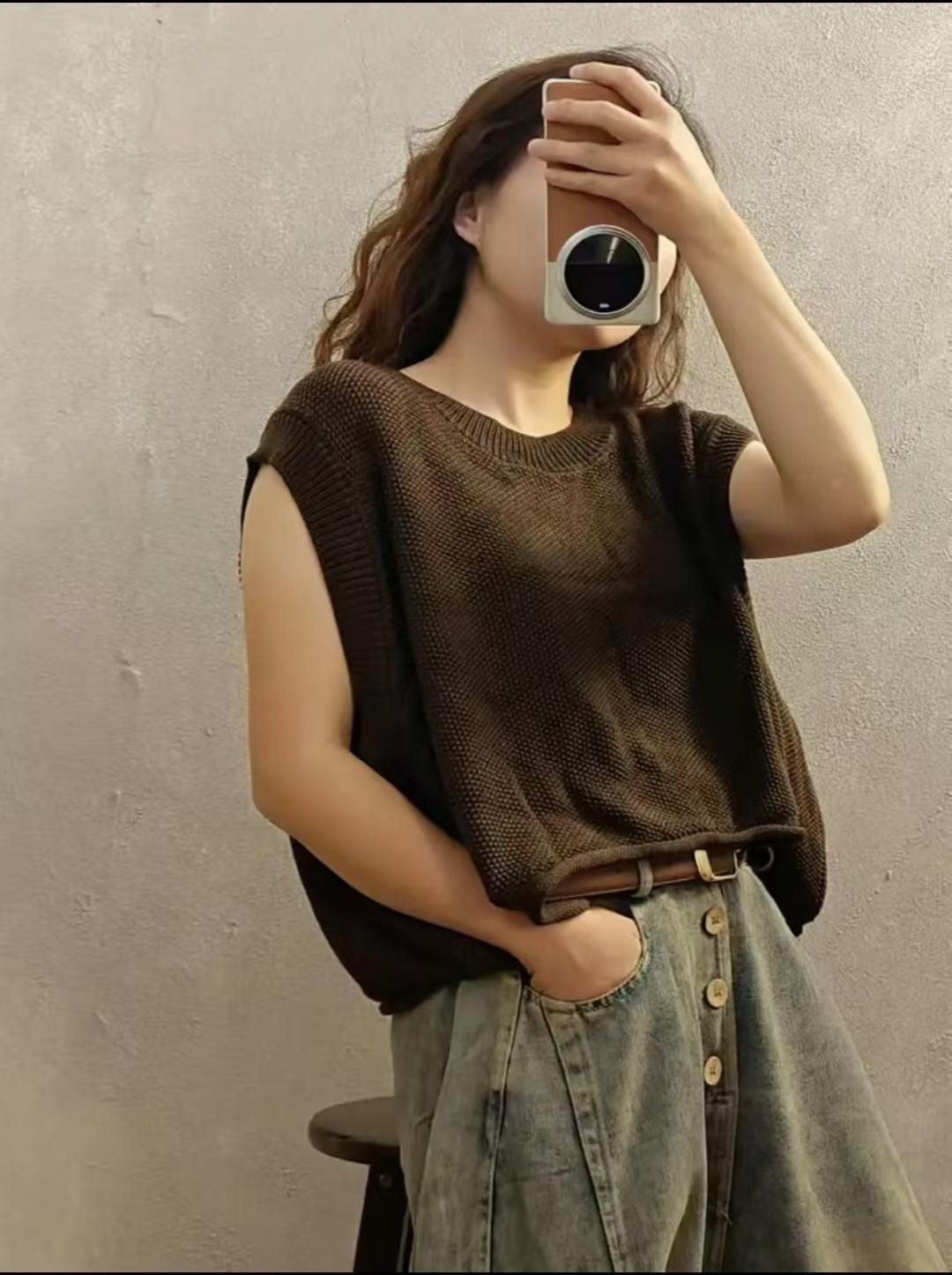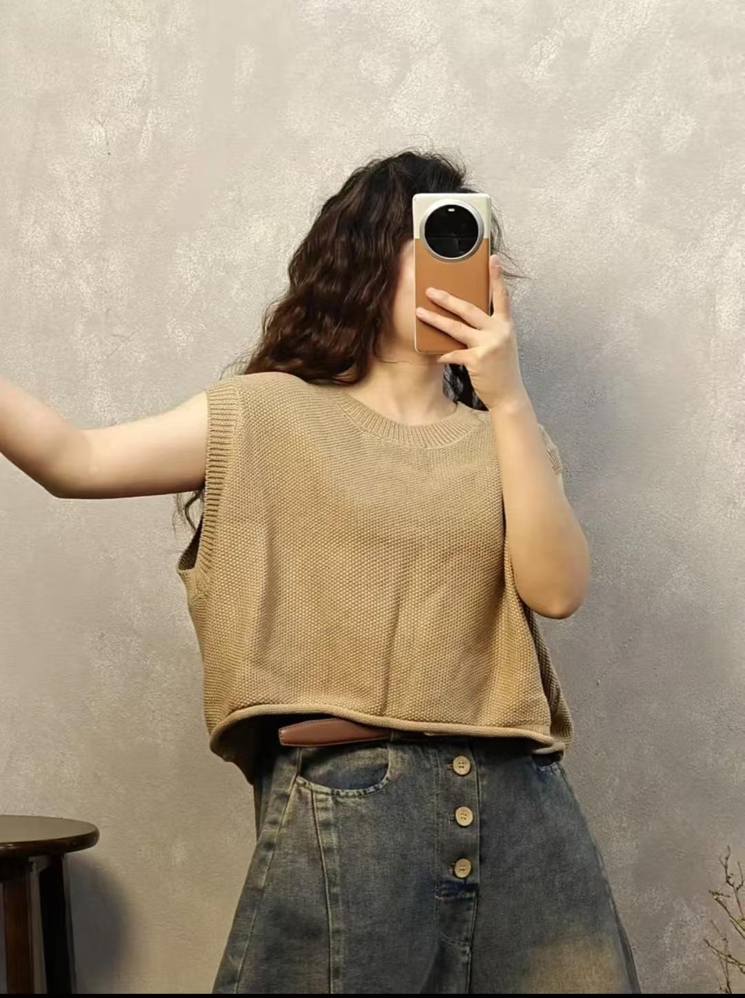 Chaleco de punto para mujer, suéter, primavera 2025, nuevo, de alta gama, holgado, exterior, sin mangas, apilado.