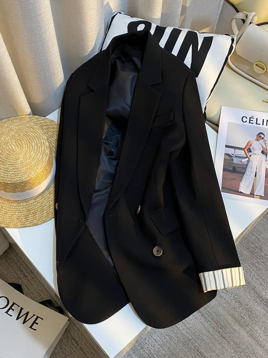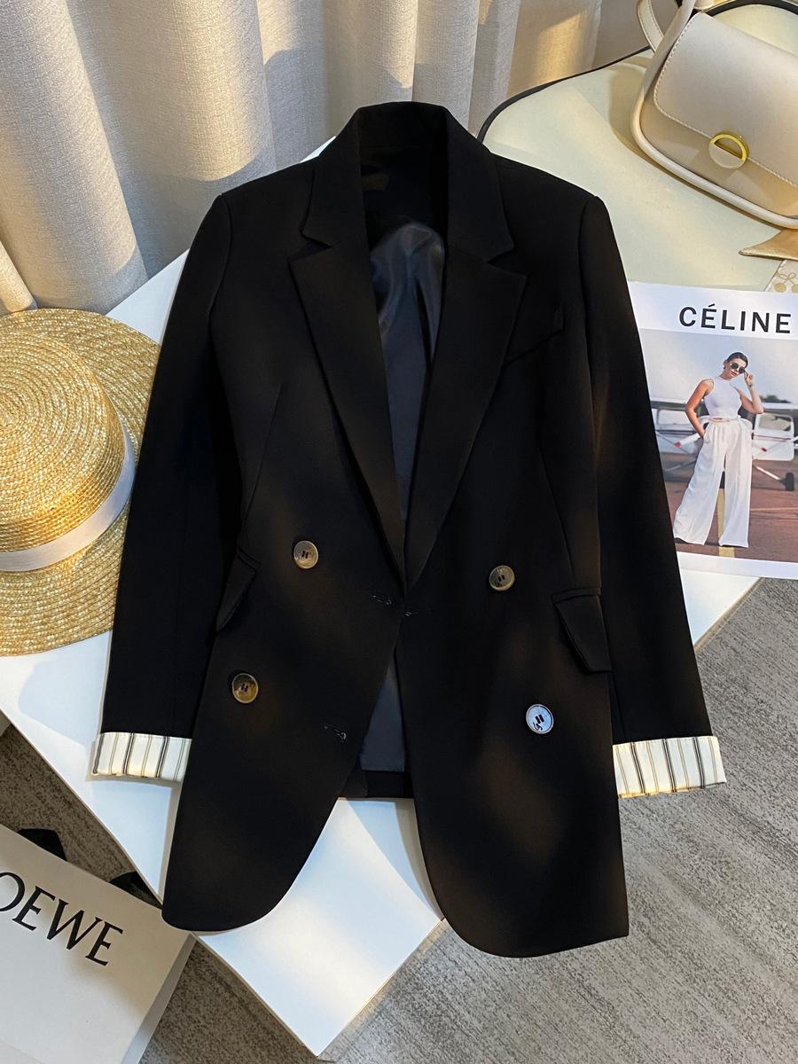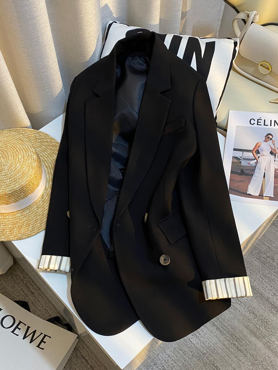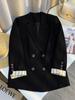 Chaqueta de traje con costuras negras para mujer, primavera 2025, nueva moda de alta gama para ir al trabajo, elegante traje informal a juego.
