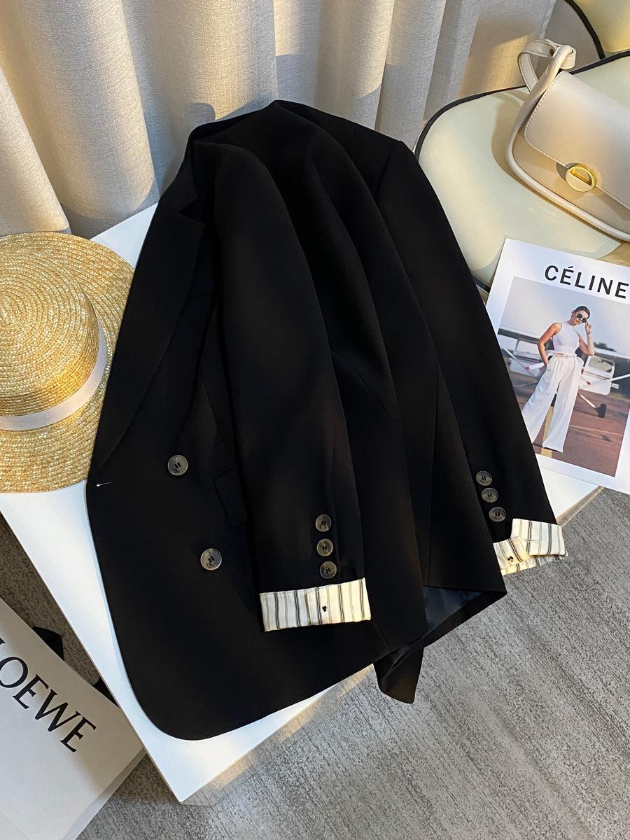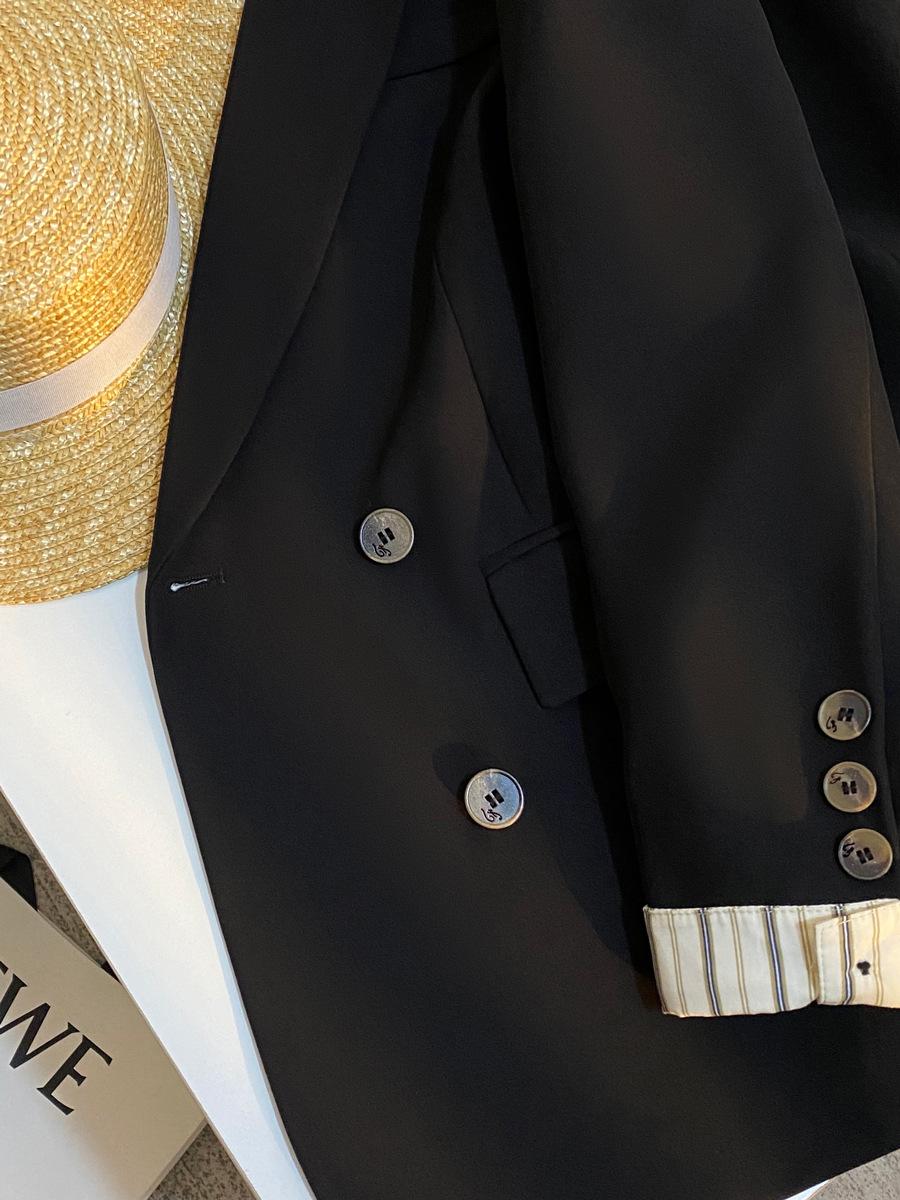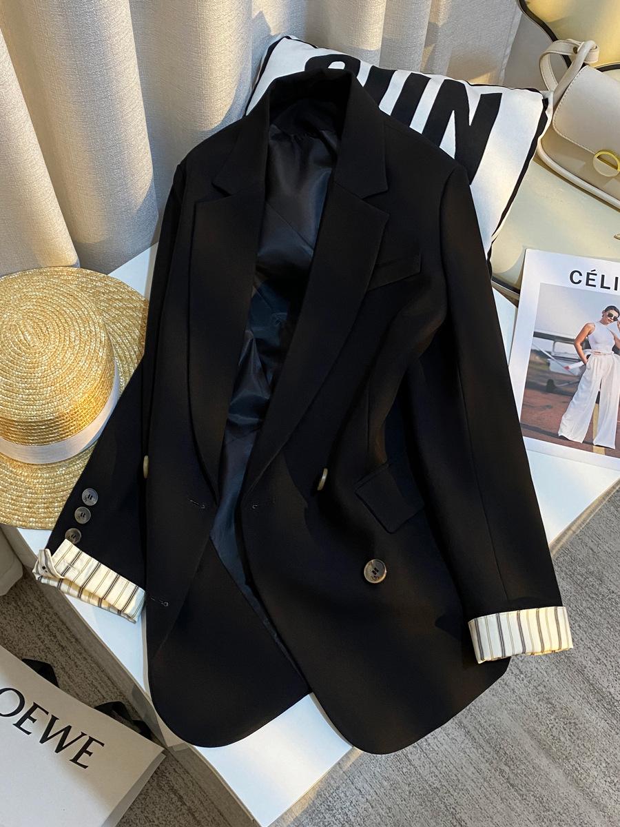 Chaqueta de traje con costuras negras para mujer, primavera 2025, nueva moda de alta gama para ir al trabajo, elegante traje informal a juego.