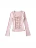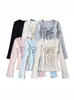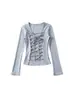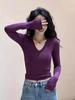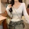 Camiseta de manga larga con cuello en V y tirantes cruzados para mujer, diseño de camisa interior de primavera, corte entallado y elegante.