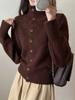 Suéter de lana con botones y cuello alto estilo francés para mujer, chaqueta corta de punto de lana para otoño e invierno.