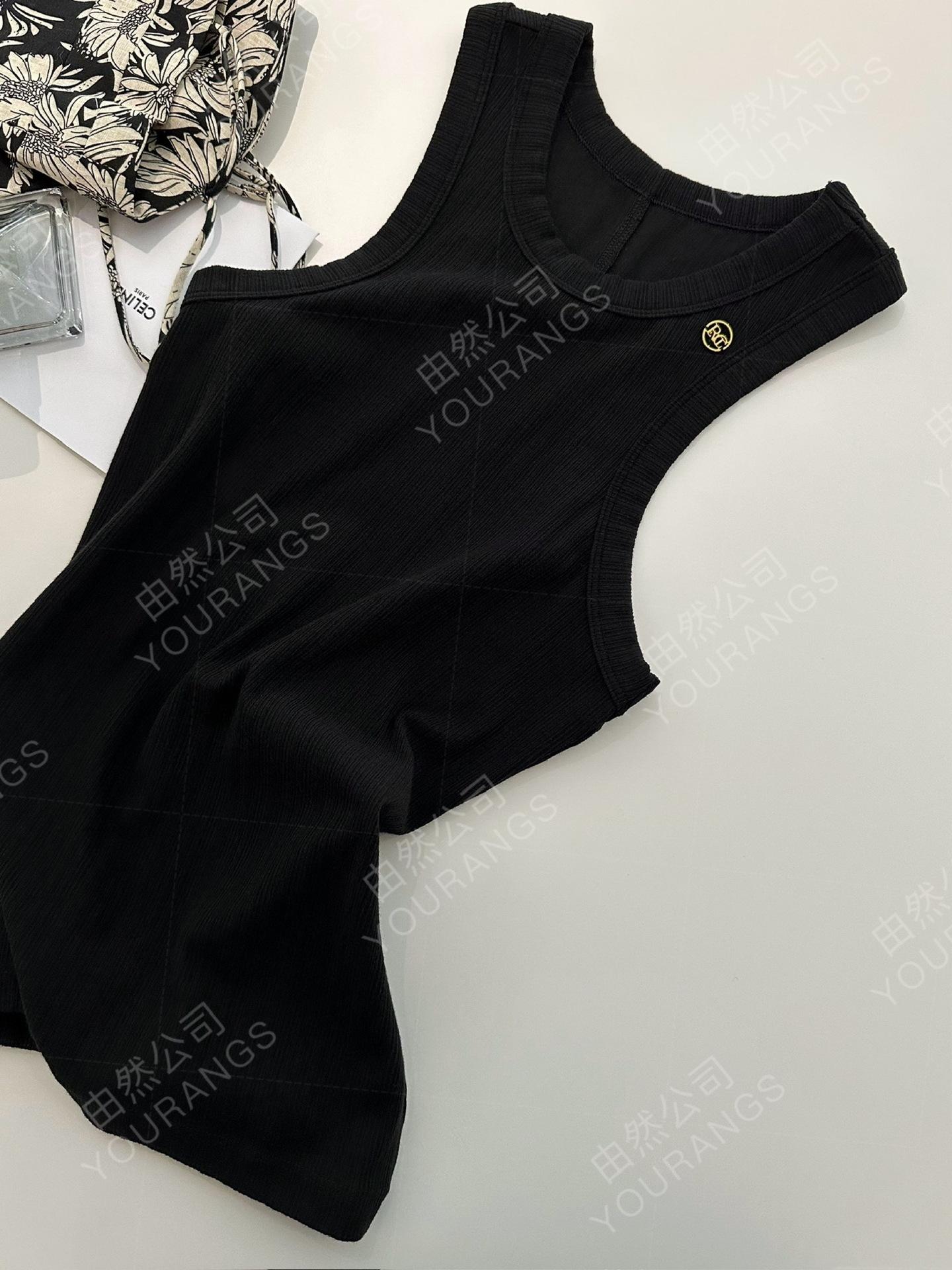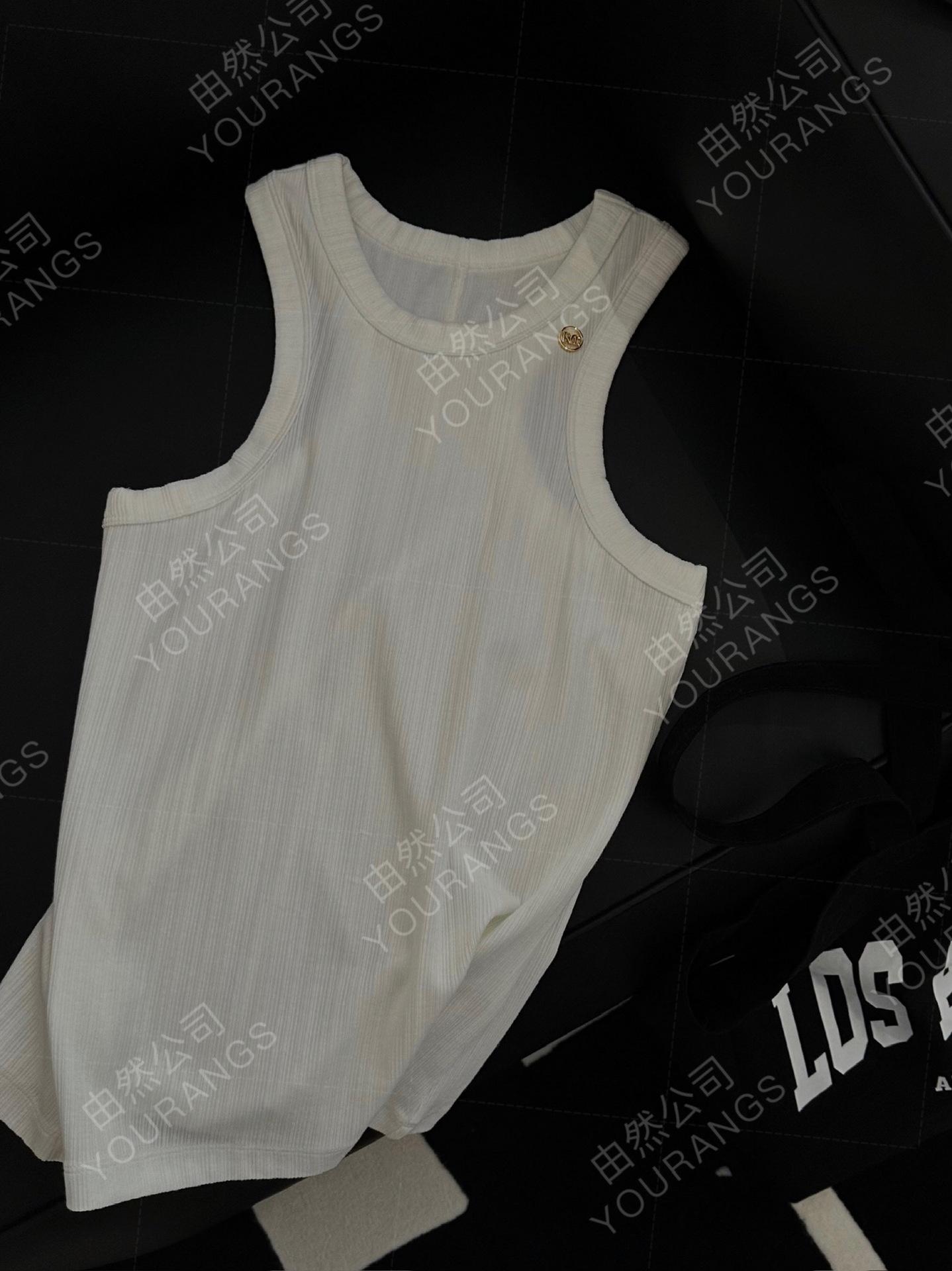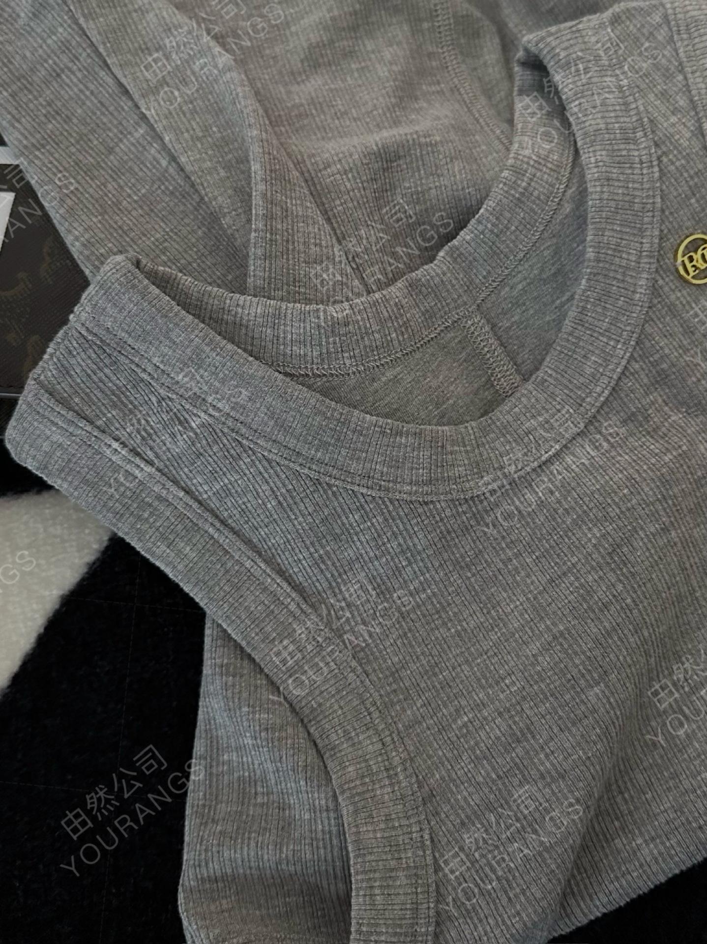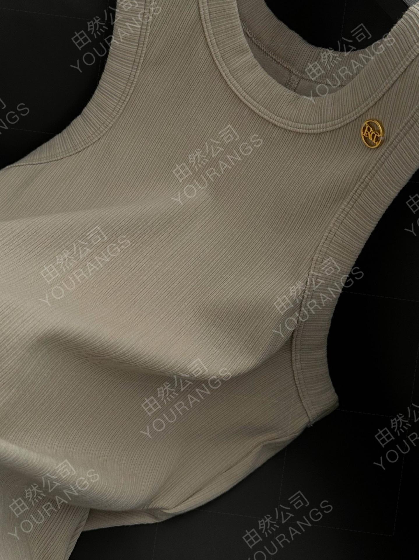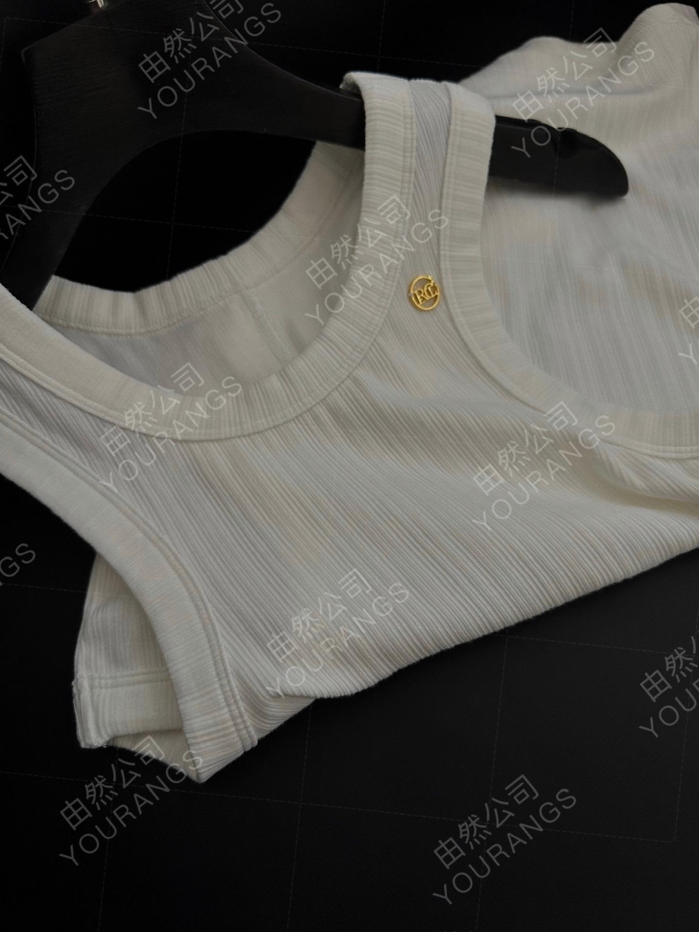 [Kui Qing 50] RE Elástico de Alta Torsión Ligero Canalé Fino Etiqueta Metálica Ajustado Simple Cuello Redondo Tejido Chaleco en I