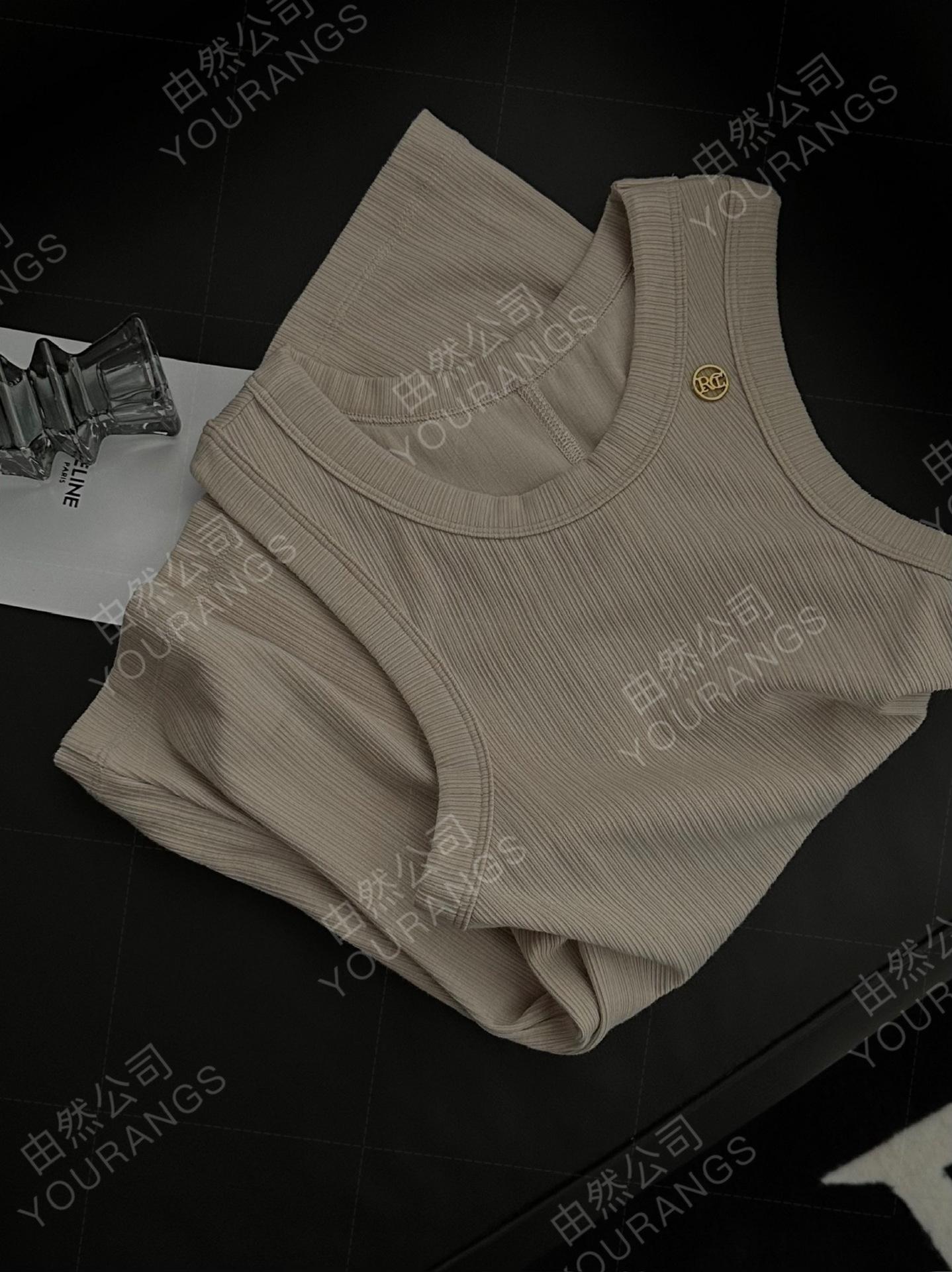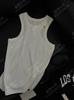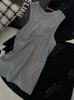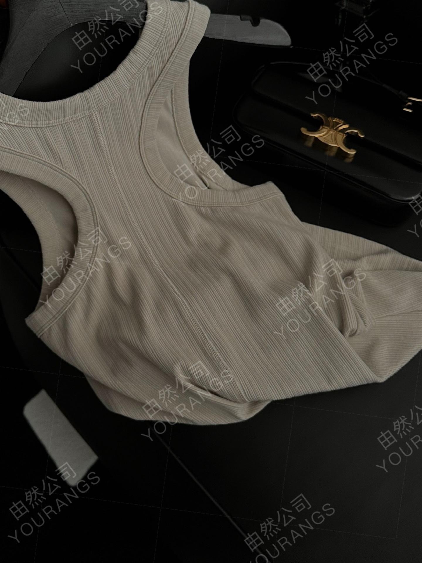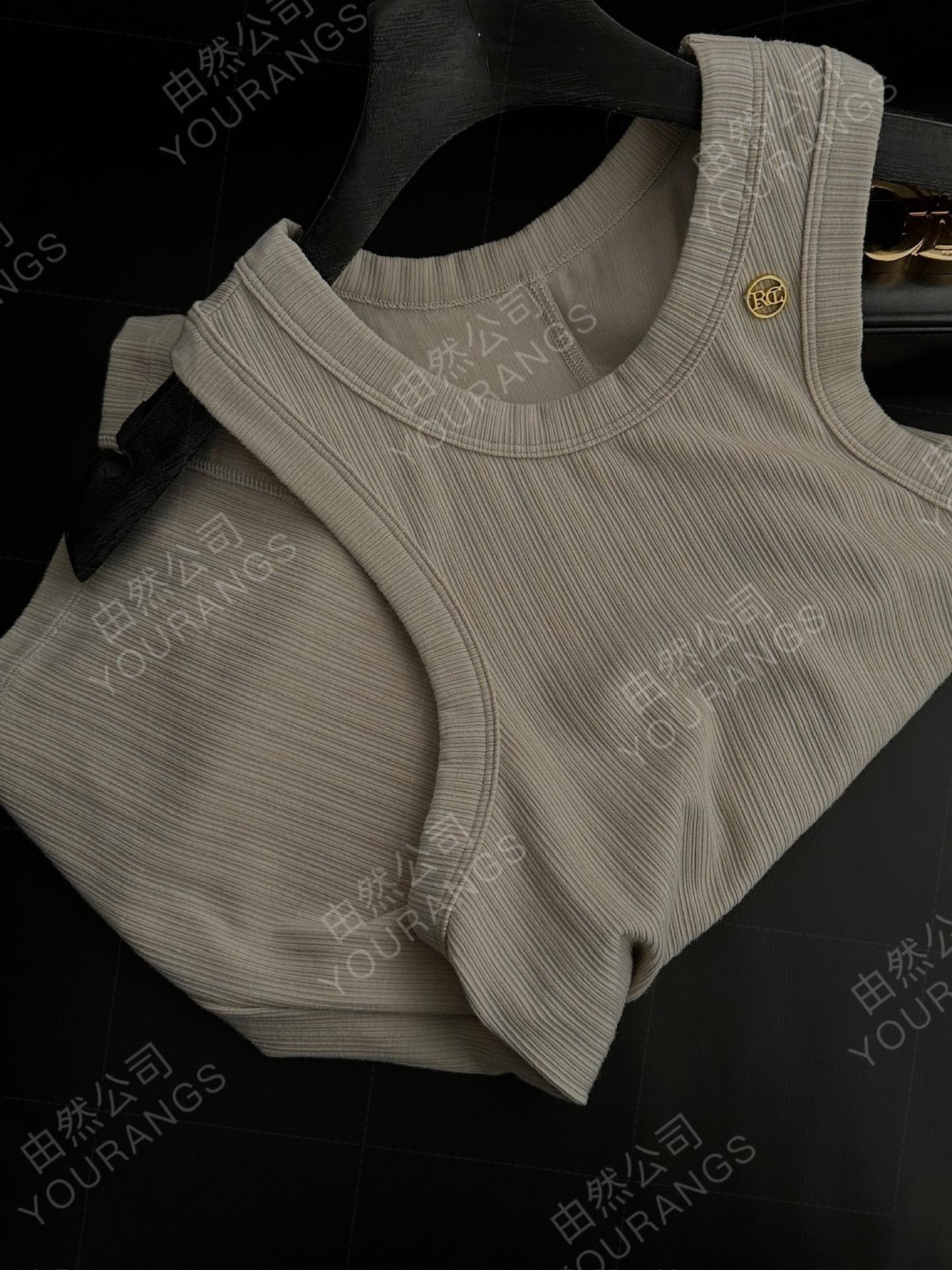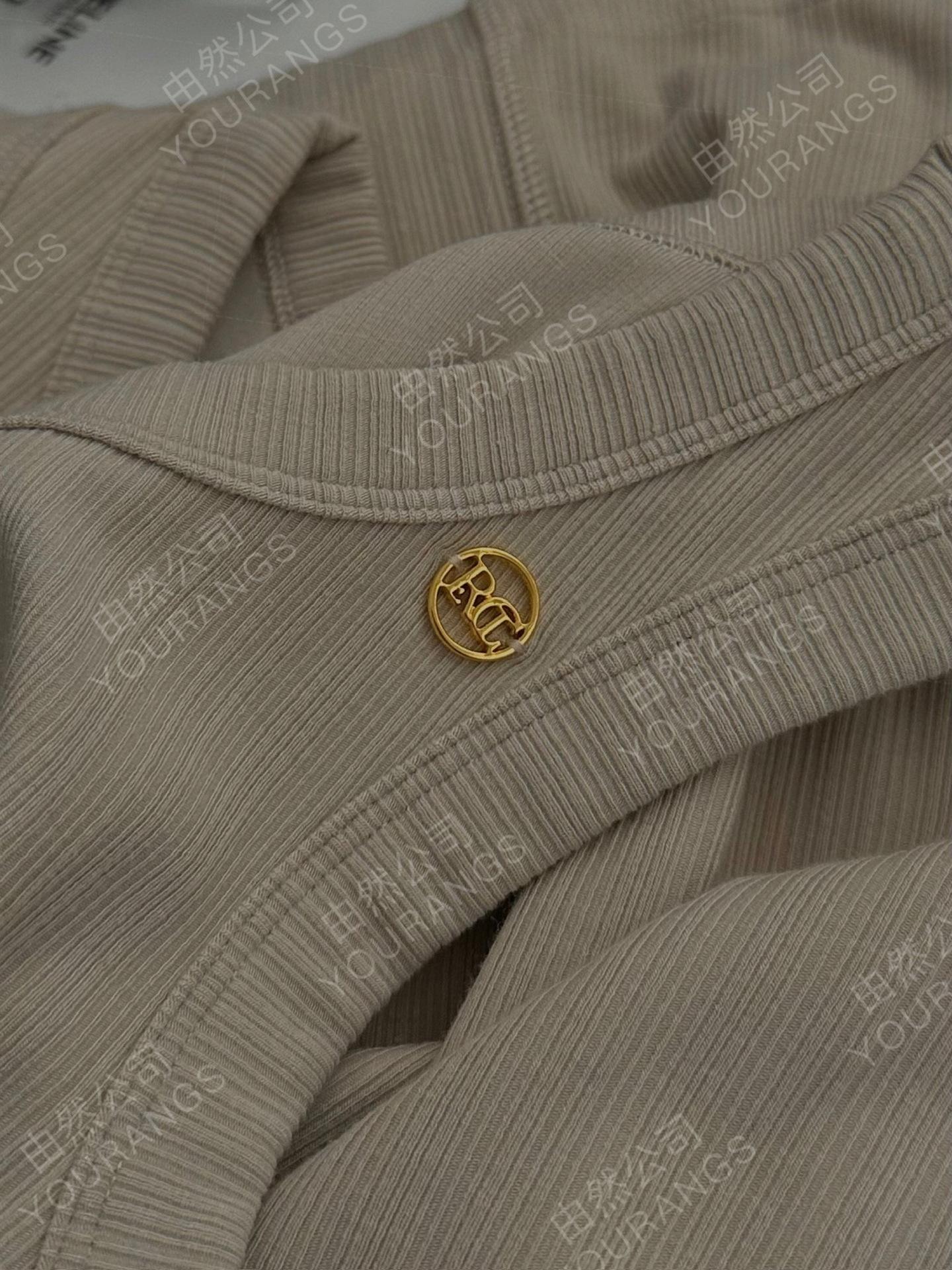 [Kui Qing 50] RE Elástico de Alta Torsión Ligero Canalé Fino Etiqueta Metálica Ajustado Simple Cuello Redondo Tejido Chaleco en I
