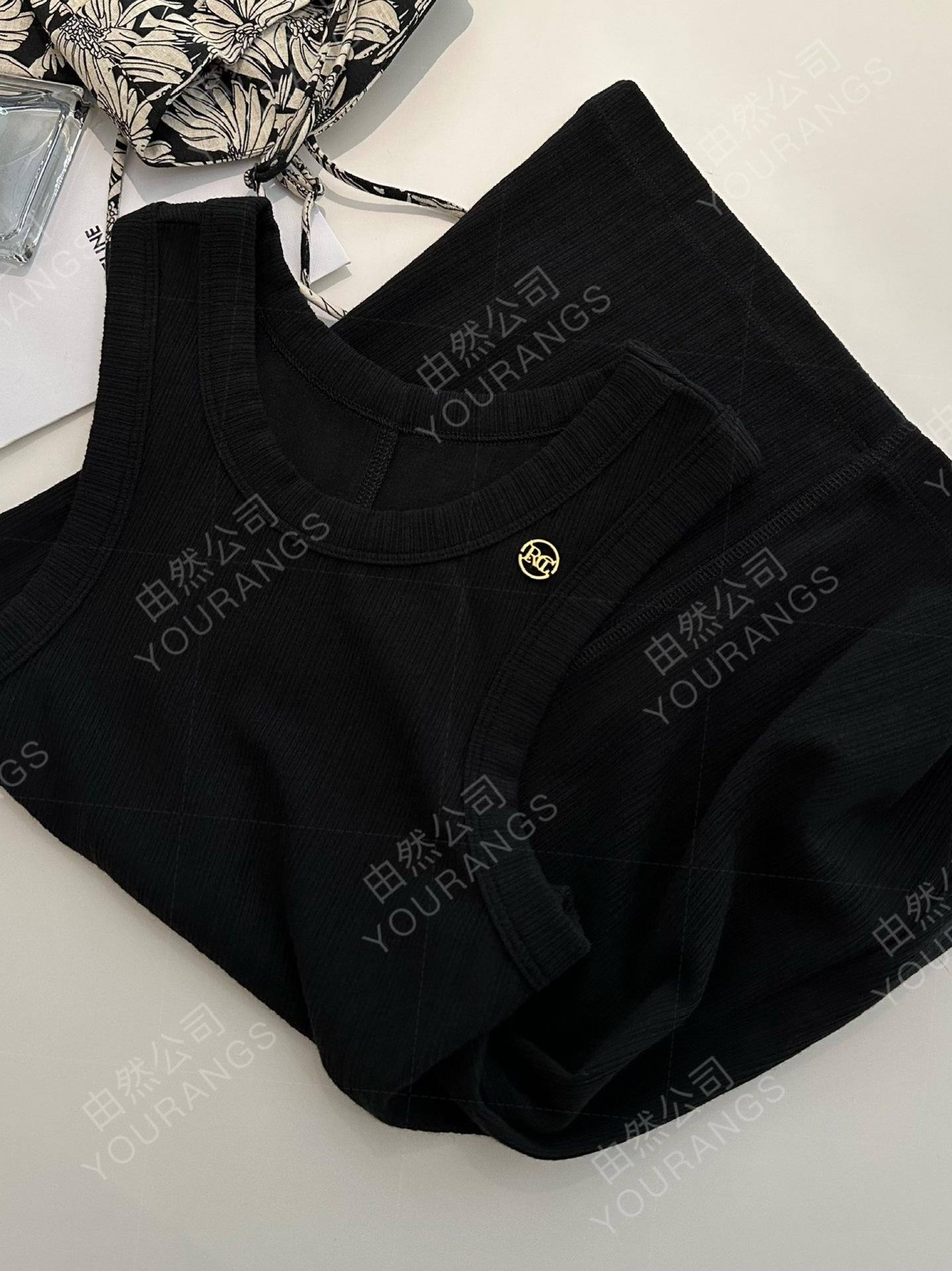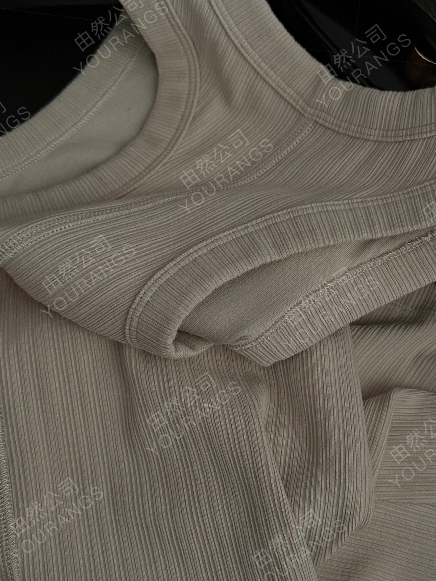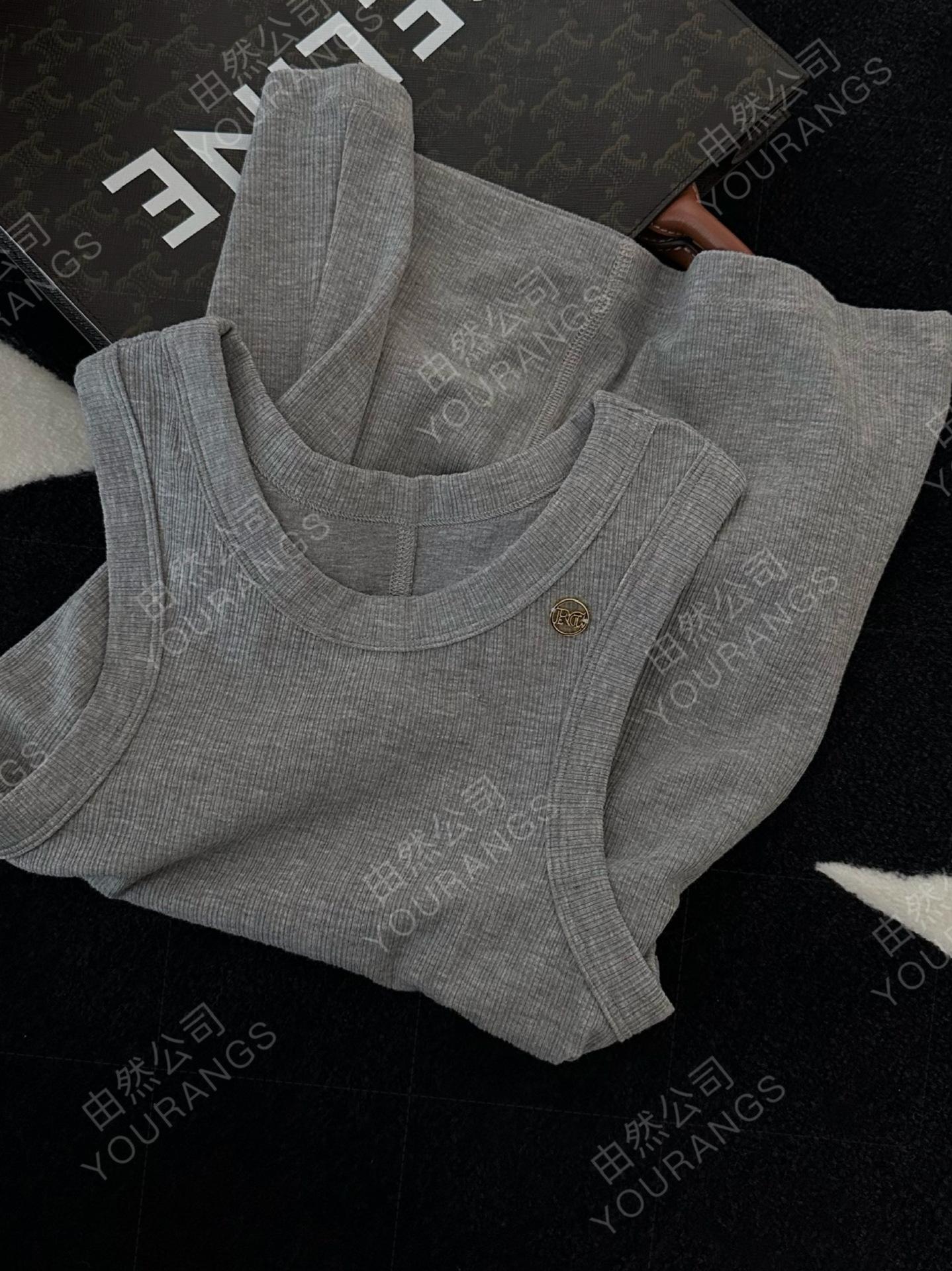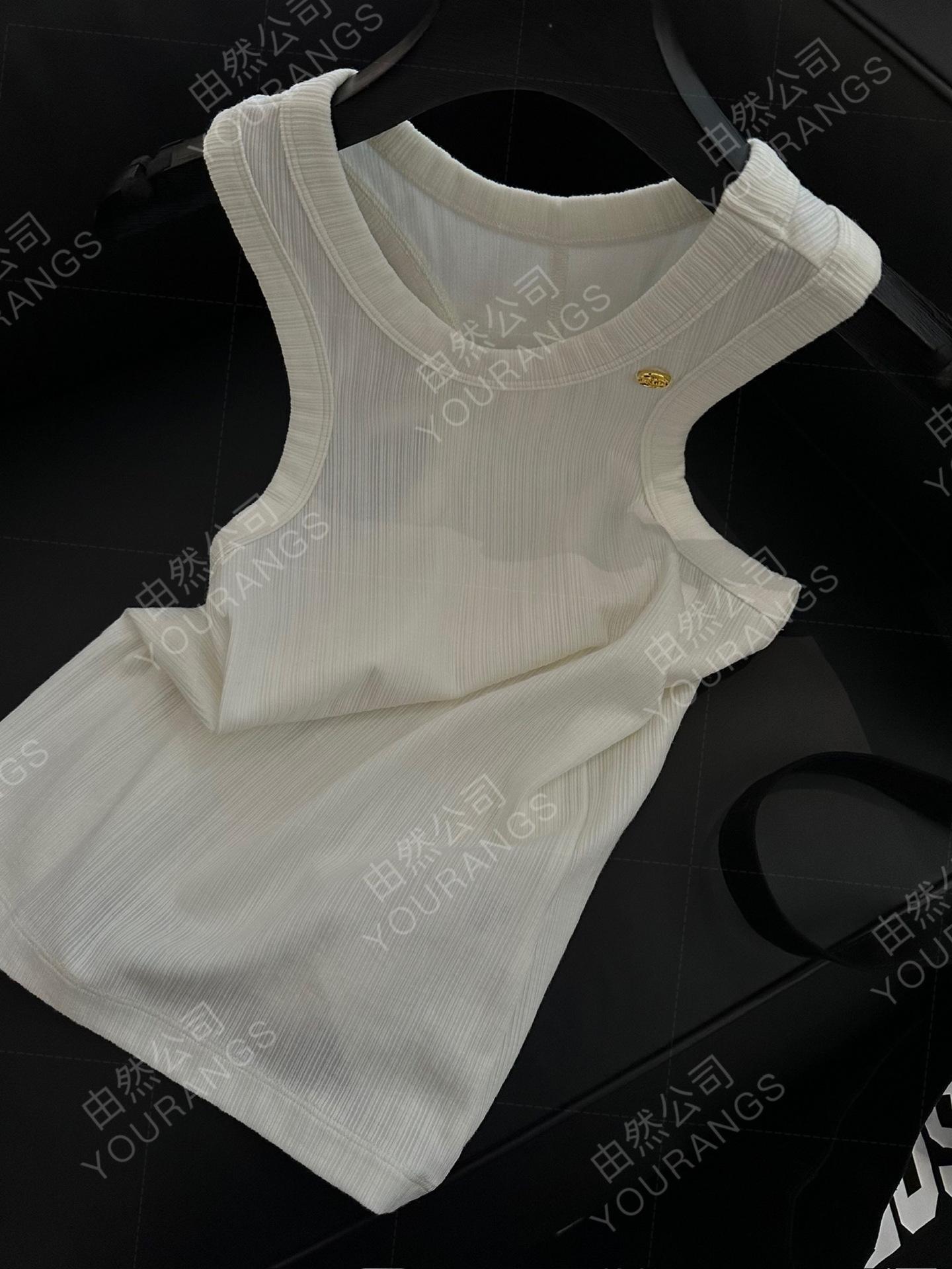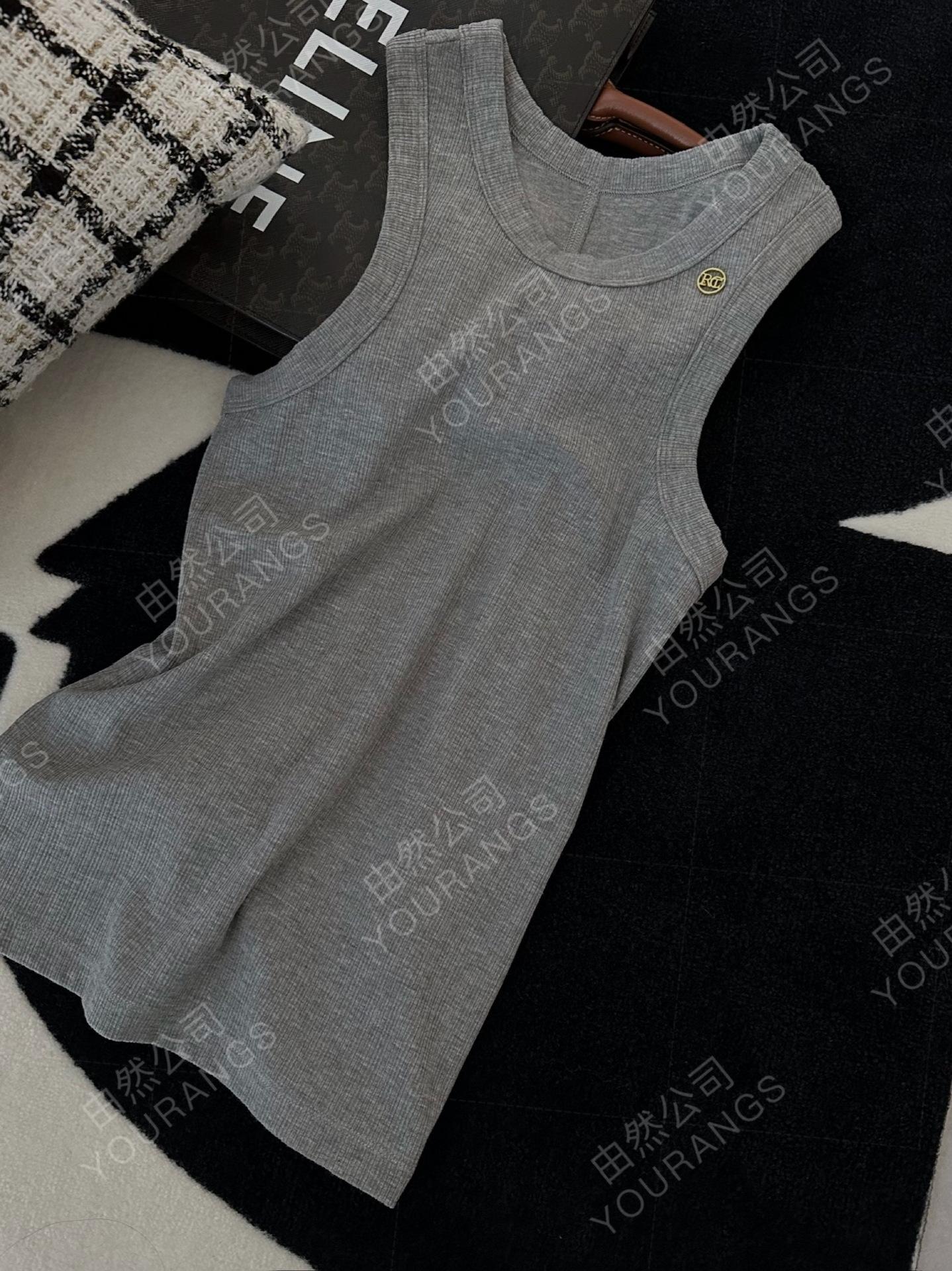 [Kui Qing 50] RE Elástico de Alta Torsión Ligero Canalé Fino Etiqueta Metálica Ajustado Simple Cuello Redondo Tejido Chaleco en I