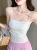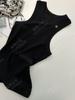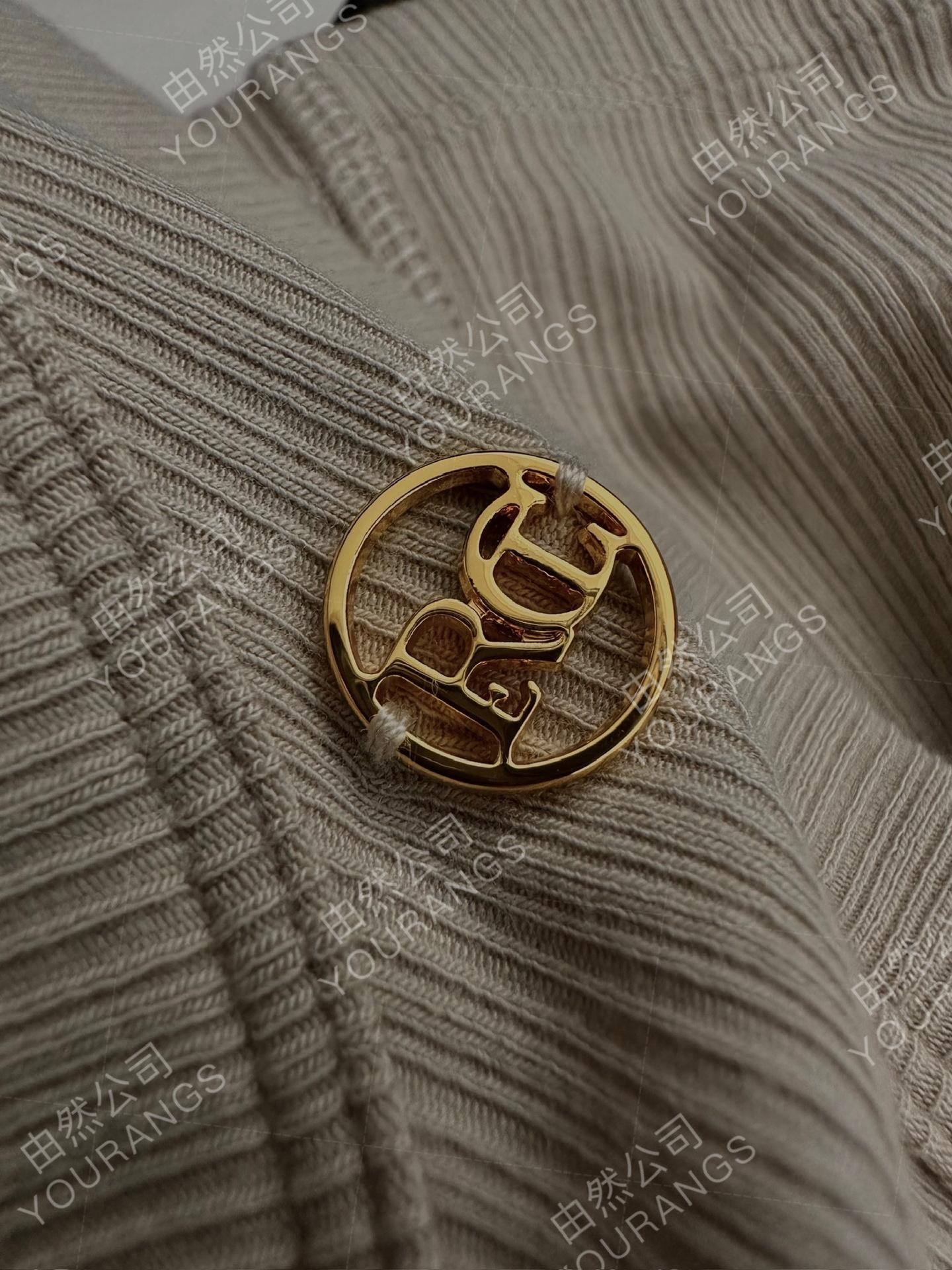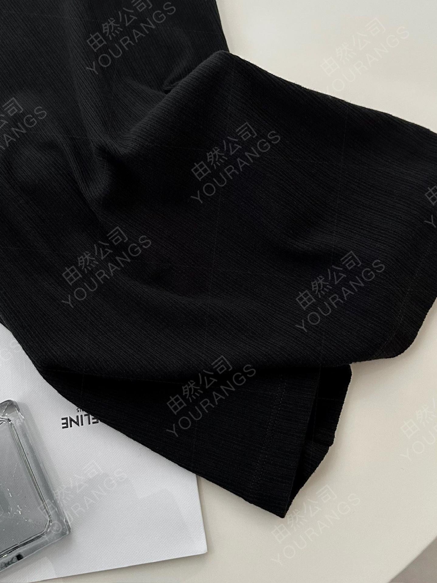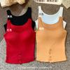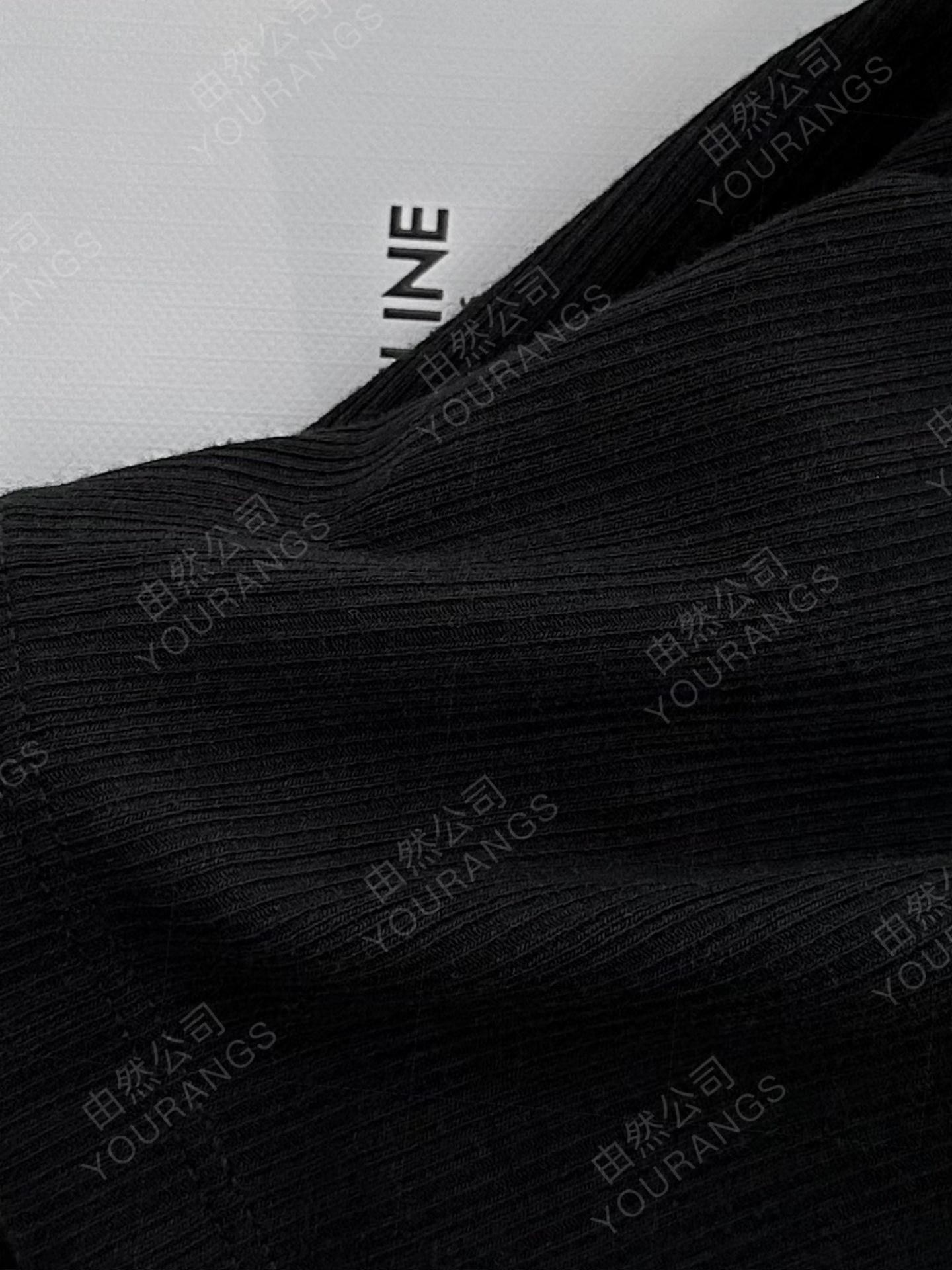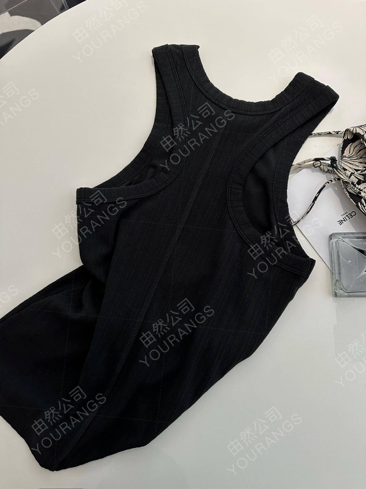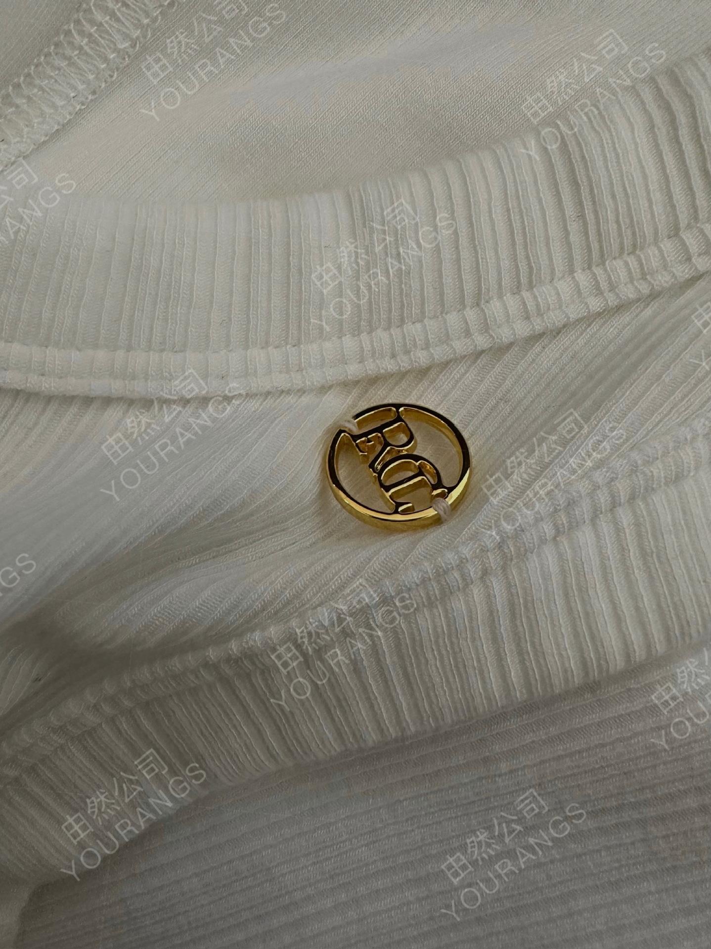 [Kui Qing 50] RE Elástico de Alta Torsión Ligero Canalé Fino Etiqueta Metálica Ajustado Simple Cuello Redondo Tejido Chaleco en I