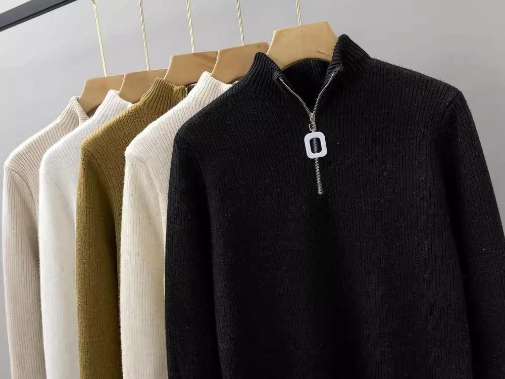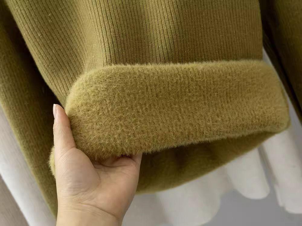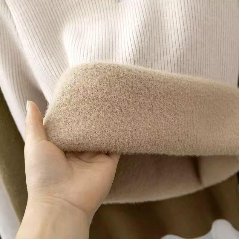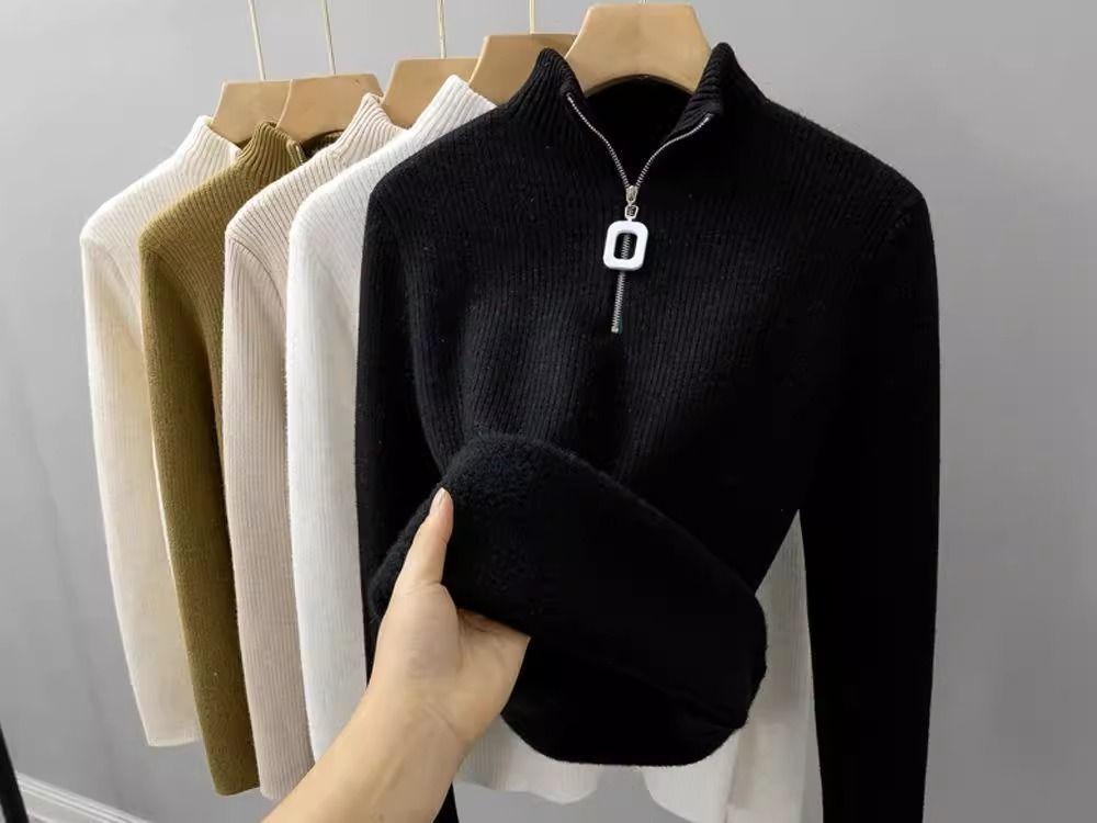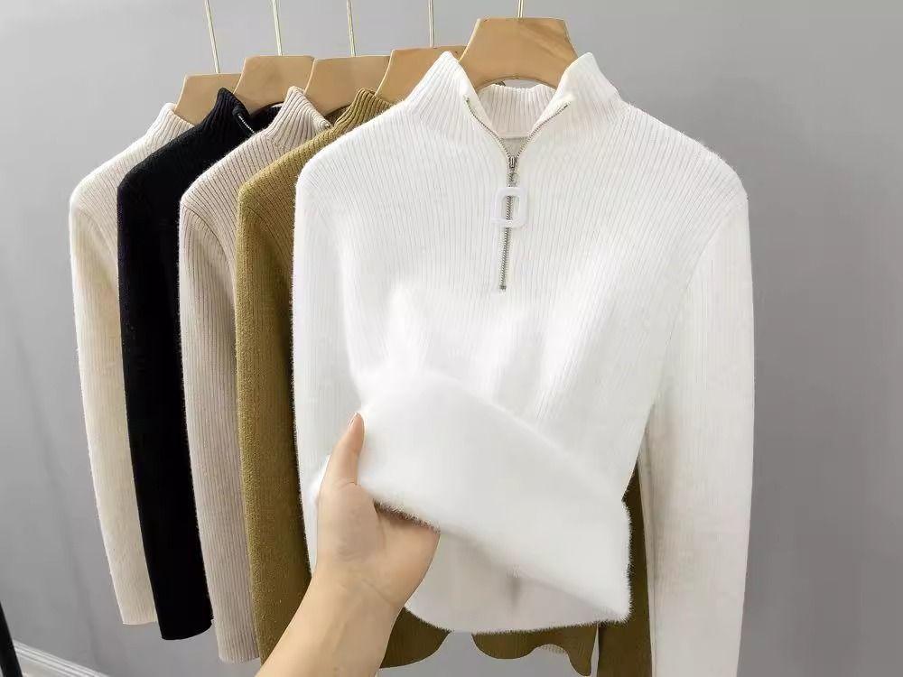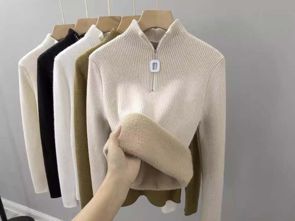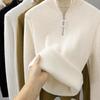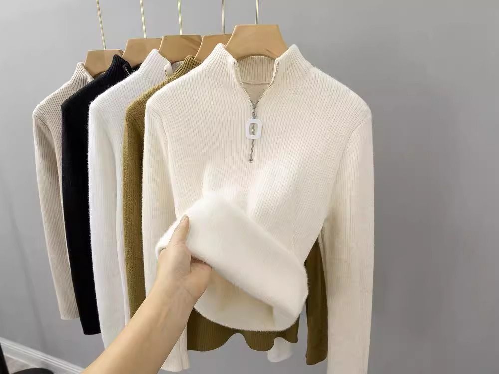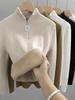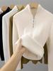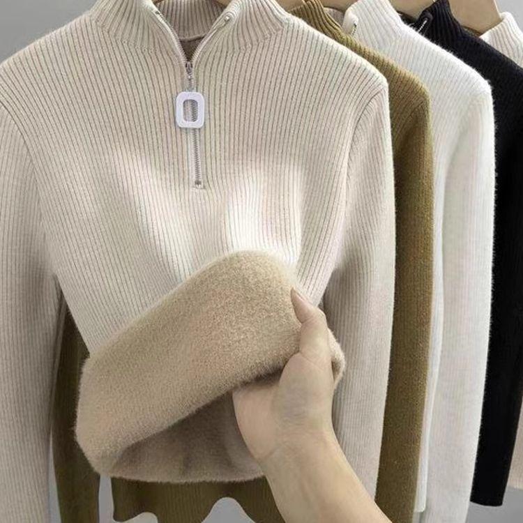 Suéter de punto con cremallera de estilo extranjero, cuello medio alto, forro polar, camisa de base gruesa, suéter interior de terciopelo de una pieza para mujer, otoño e invierno