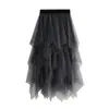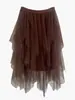 Falda de malla irregular para mujer, primavera 2023, estilo coreano, corte A, cintura alta, combinable, midi, falda de estudiante con velo
