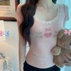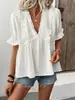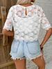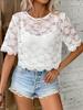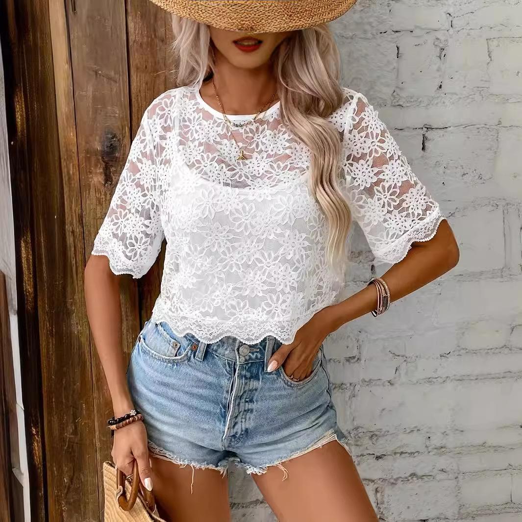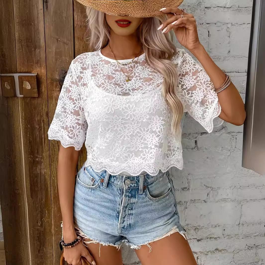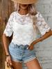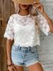 Moda Elegante Color Sólido Encaje Cuello Redondo Manga Corta Camiseta