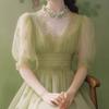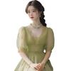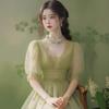 Vestido de verano estilo francés Chanel con mangas abullonadas, estilo verde, para mujer, 2025, nuevo estilo, estilo antiguo, estilo princesa vintage.