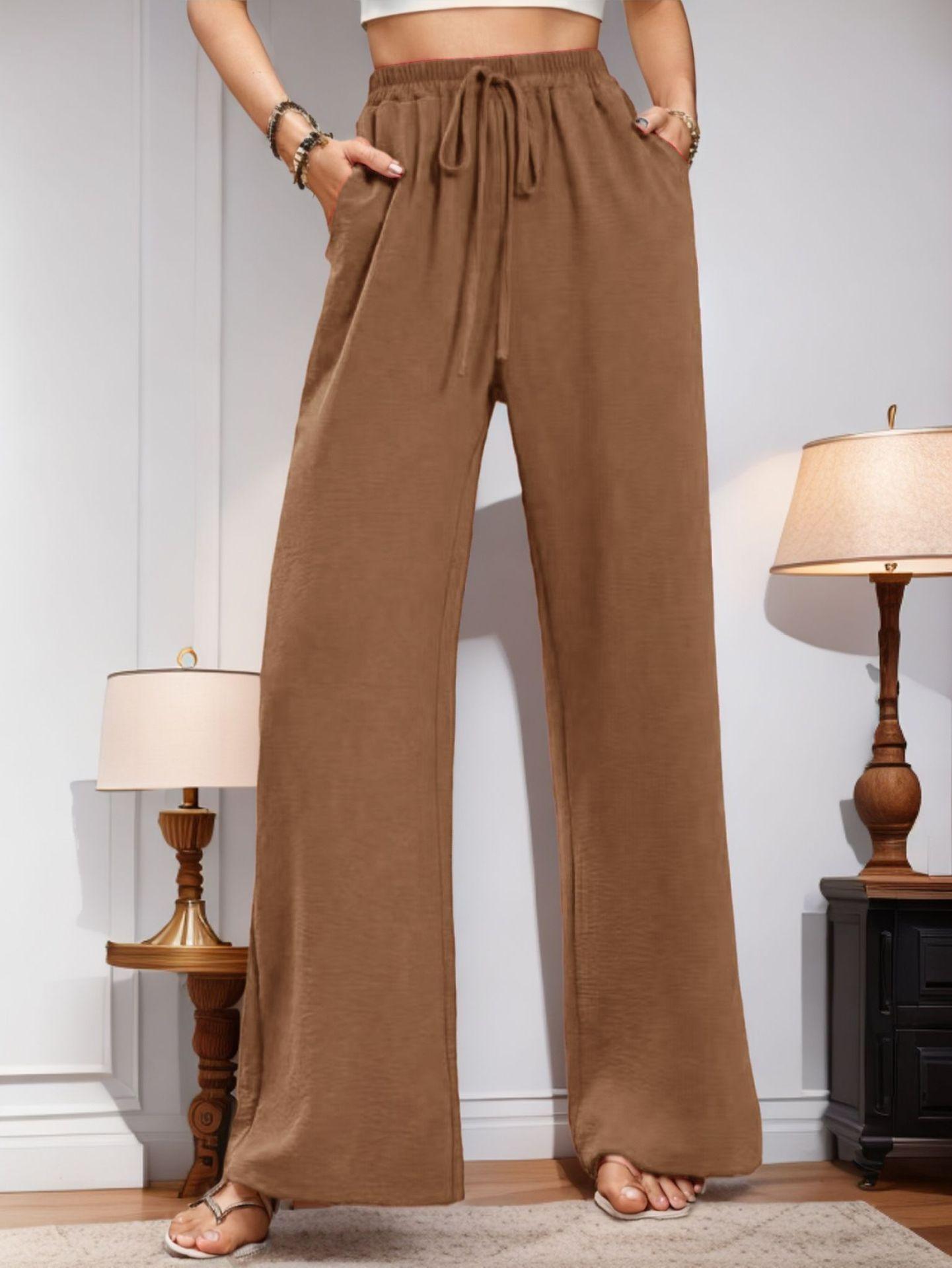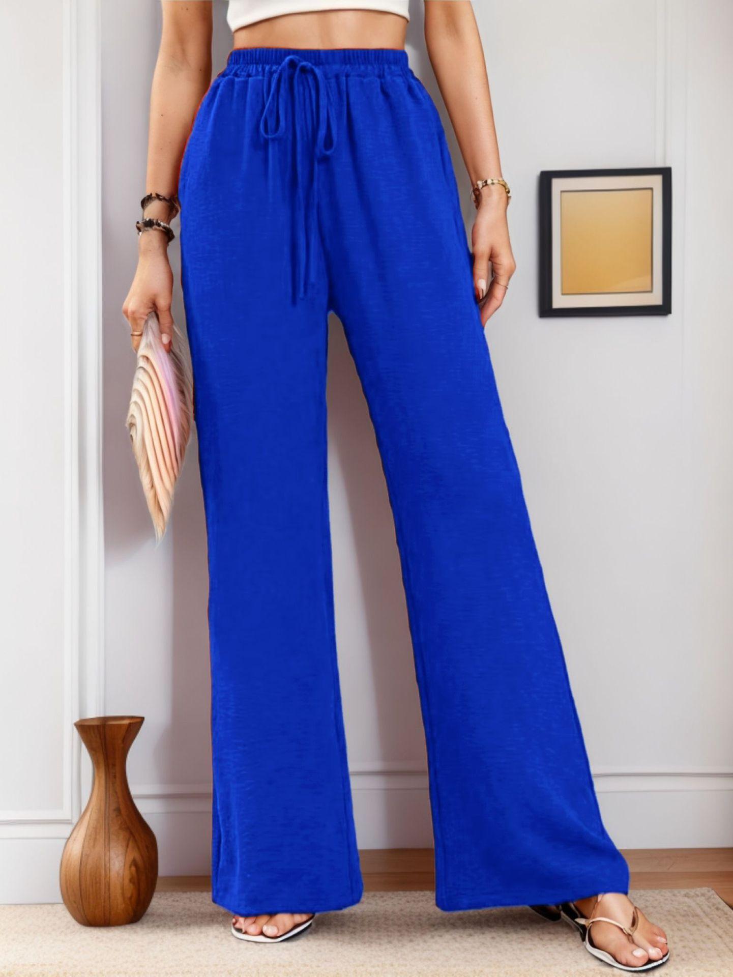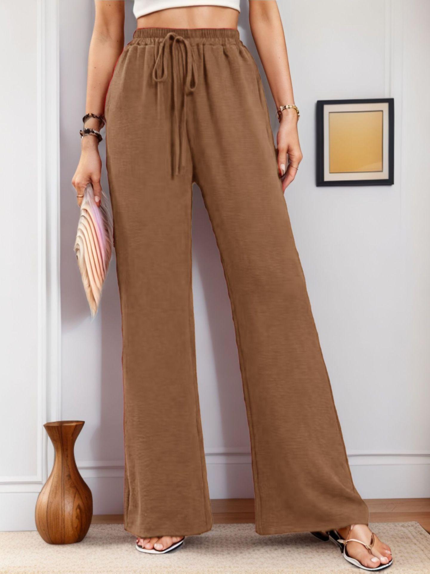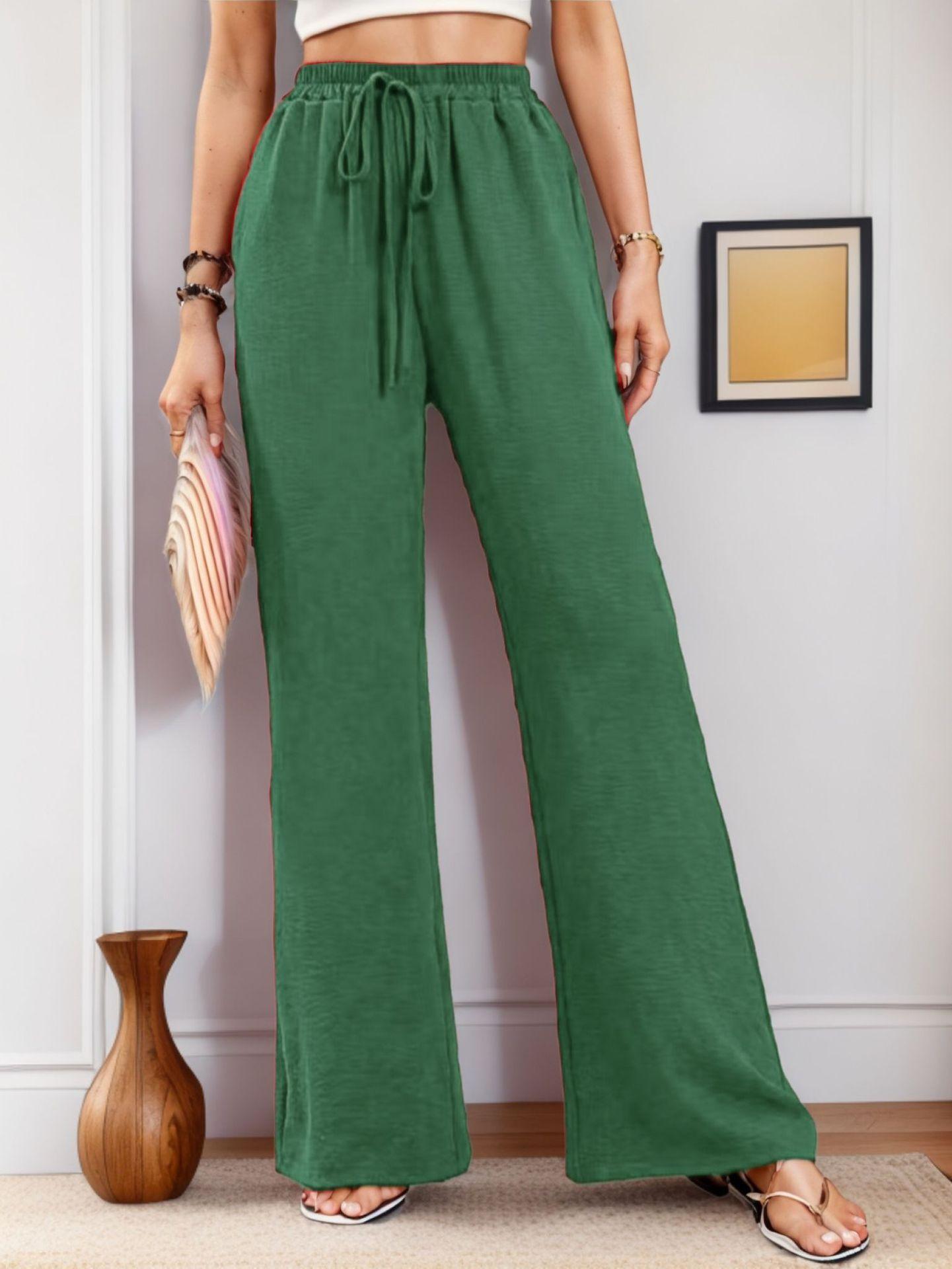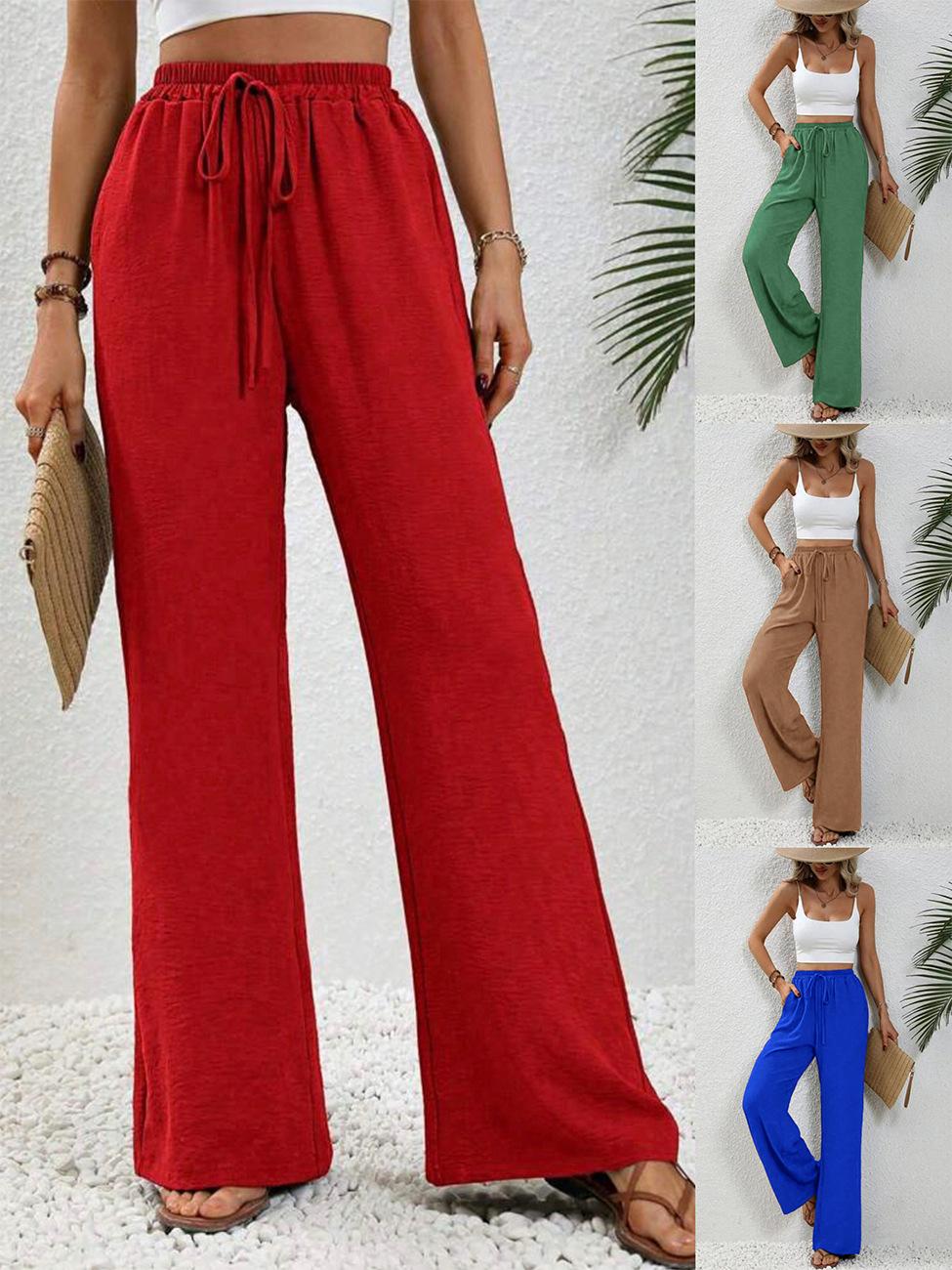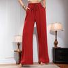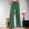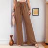 Ropa Europea y Americana Transfronteriza Amazon Nuevo Casual Bolsillo Simple Elástico Cintura con Cordón Pantalones Casuales para Mujer
