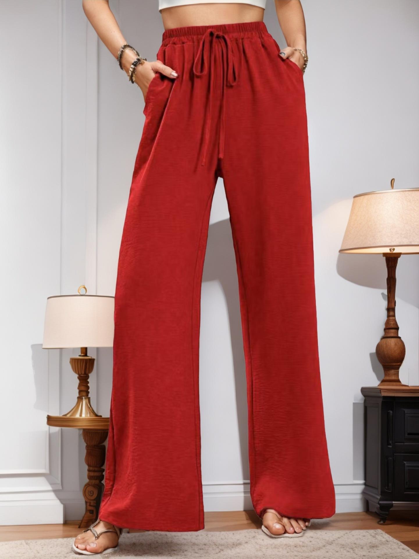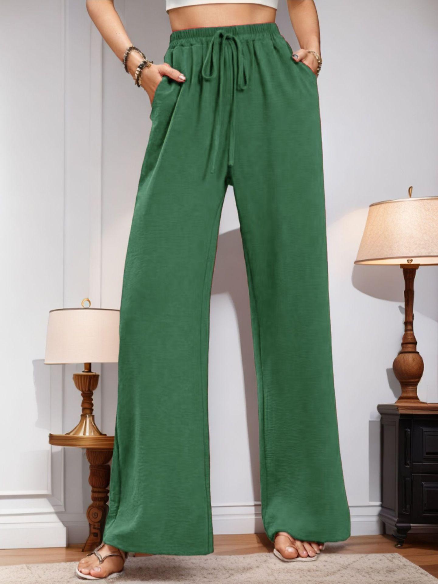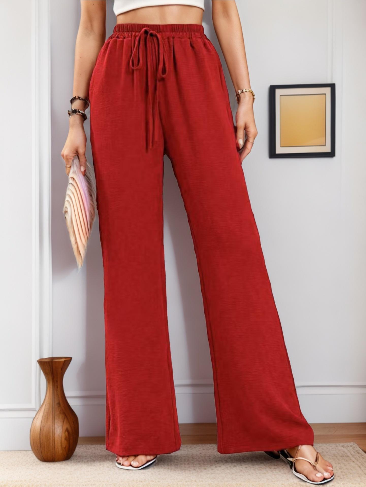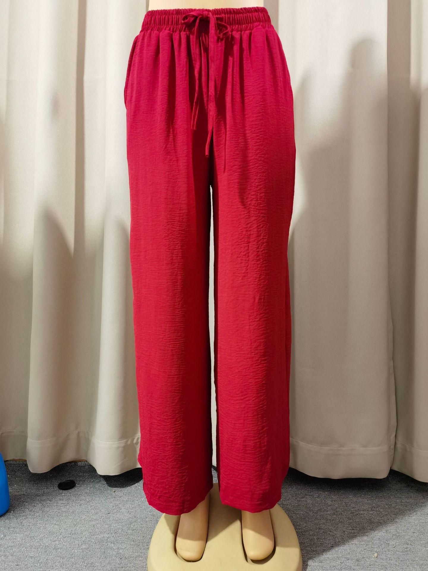 Ropa Europea y Americana Transfronteriza Amazon Nuevo Casual Bolsillo Simple Elástico Cintura con Cordón Pantalones Casuales para Mujer