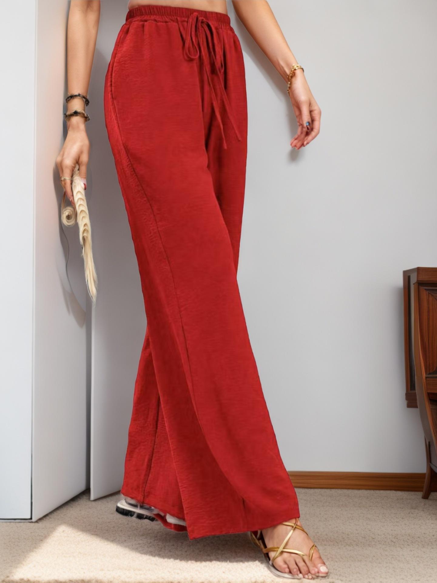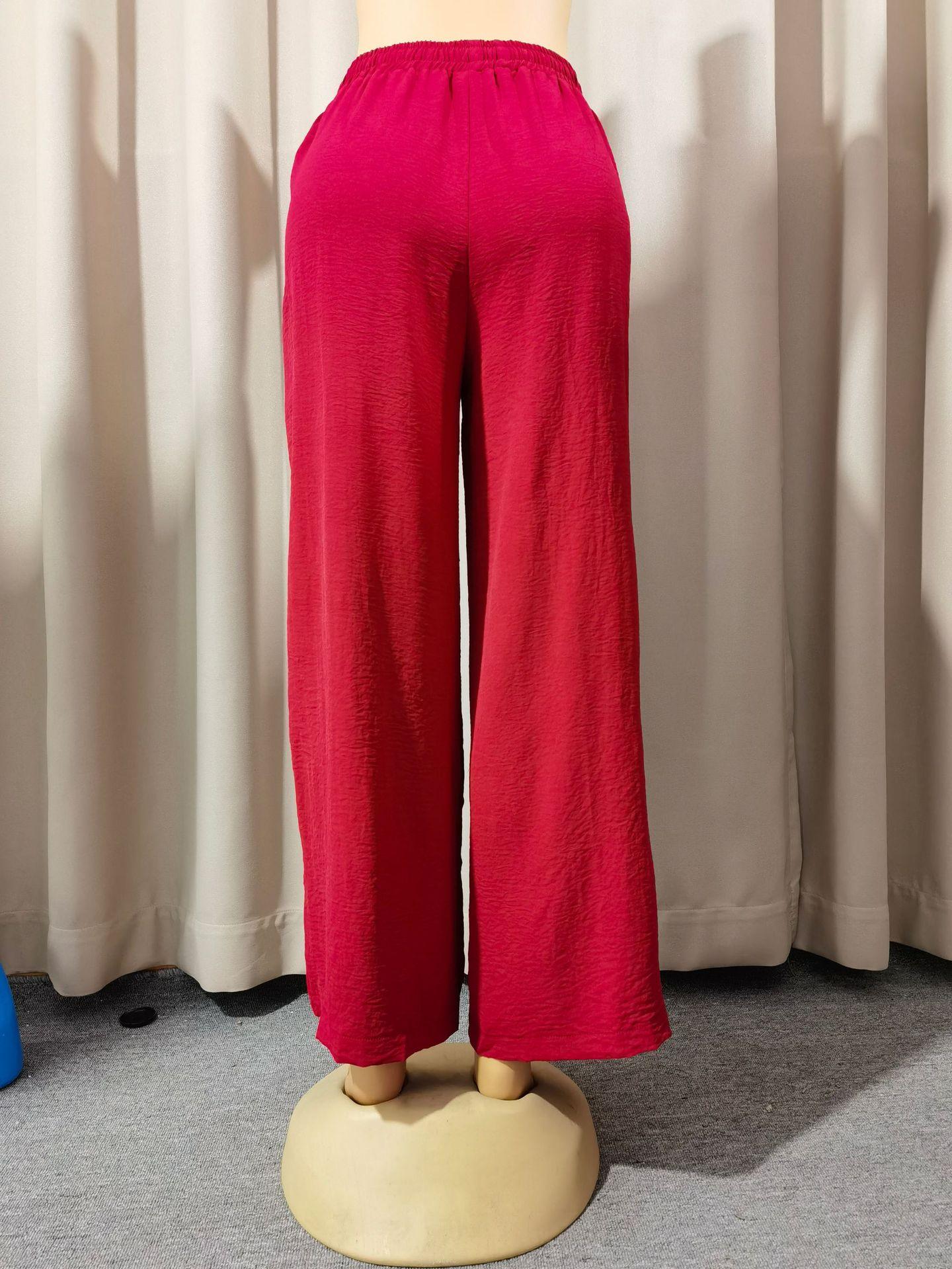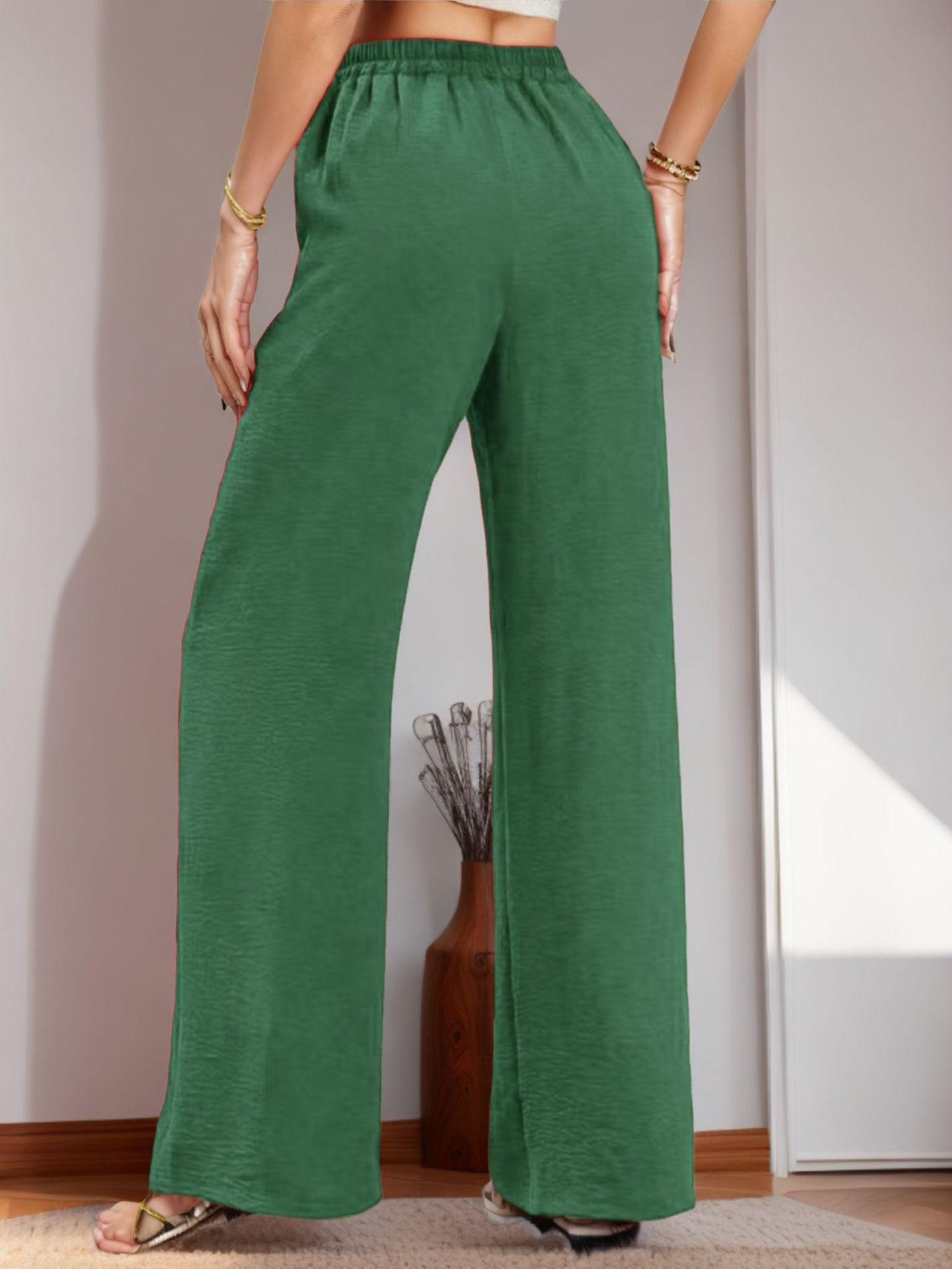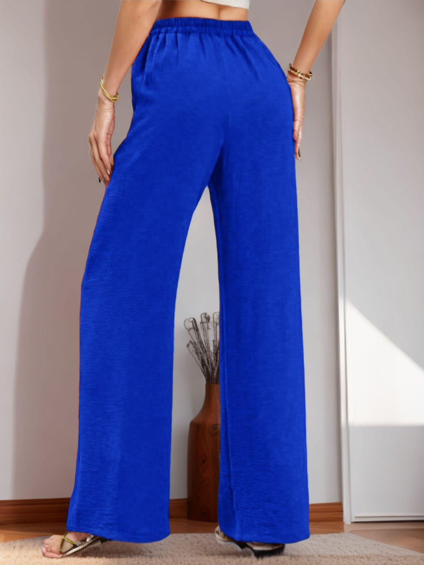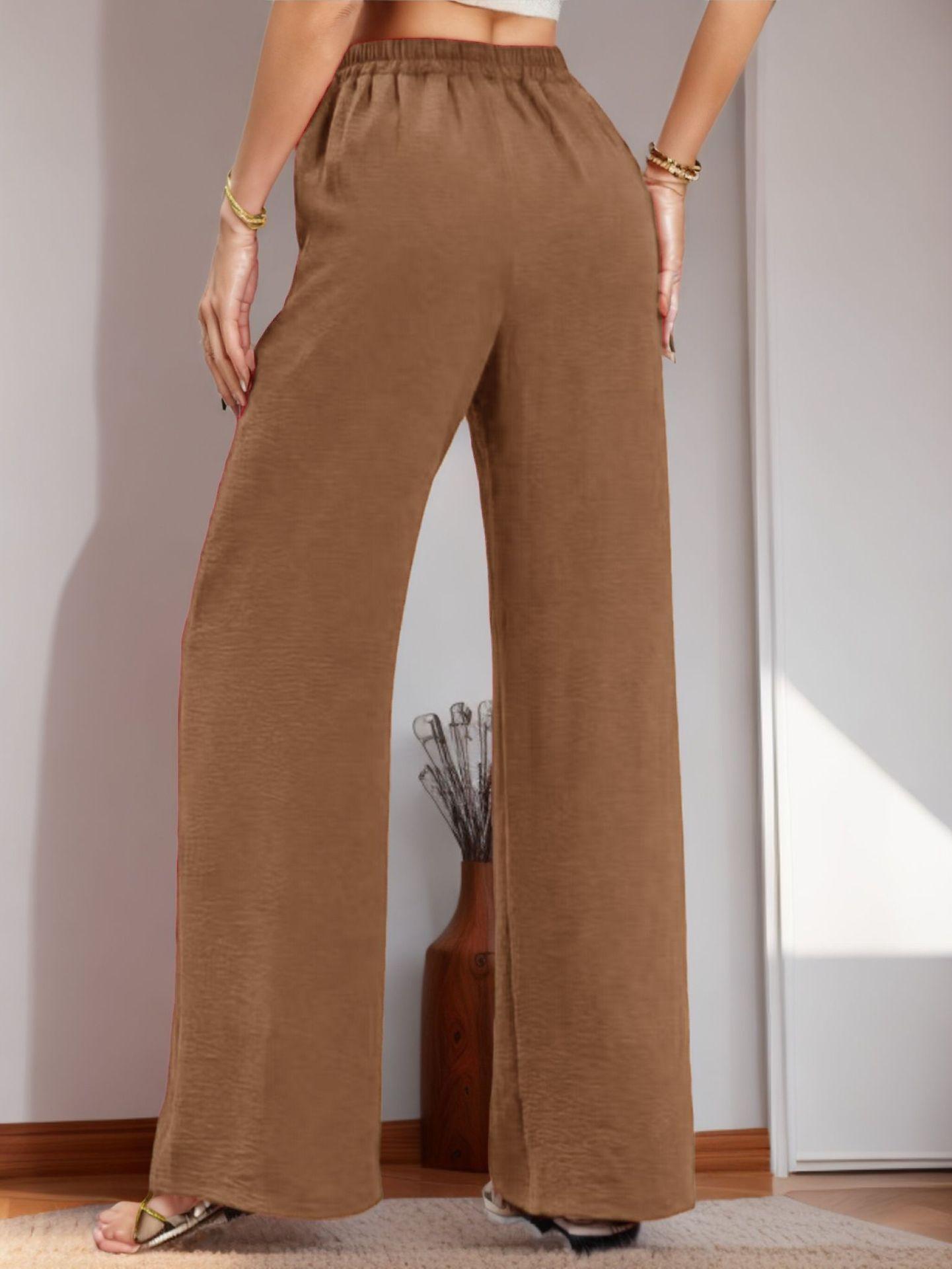 Ropa Europea y Americana Transfronteriza Amazon Nuevo Casual Bolsillo Simple Elástico Cintura con Cordón Pantalones Casuales para Mujer