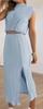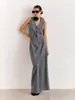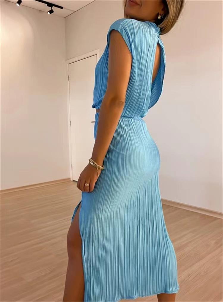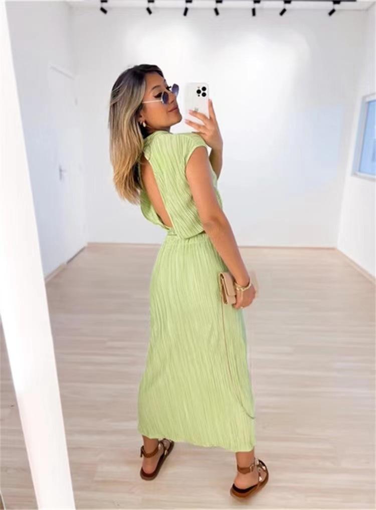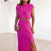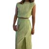 Conjunto de dos piezas de falda midi lápiz corta con abertura, de cintura alta, sin mangas, con cuello medio alto arrugado, moda femenina europea y americana 2023
