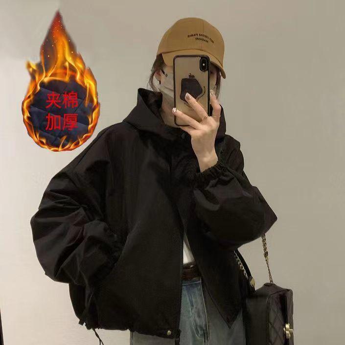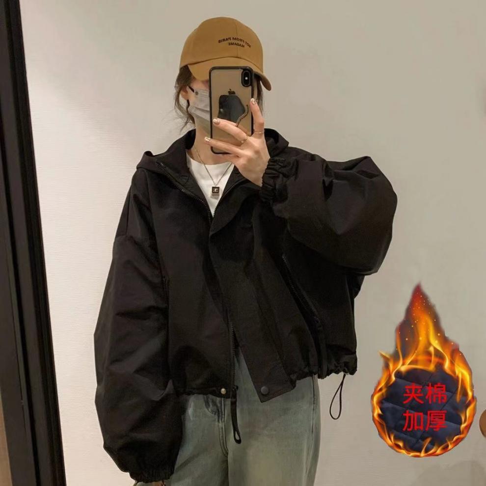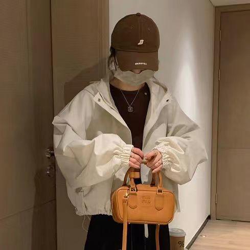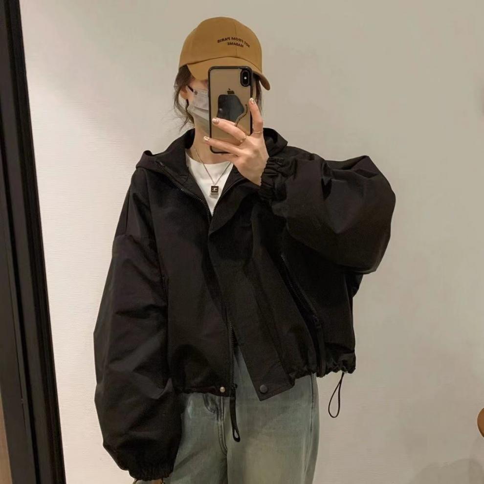 Shanli Dadi Chaqueta Corta con Capucha Combinable Nueva Moda Casual Suelta de Primavera y Otoño Top
