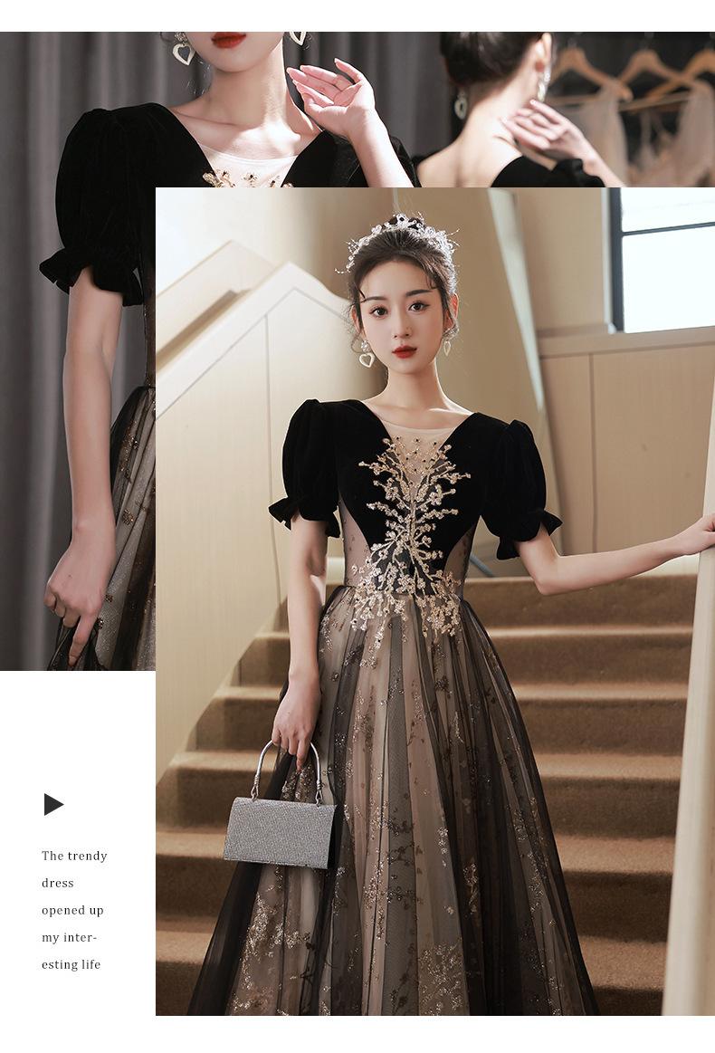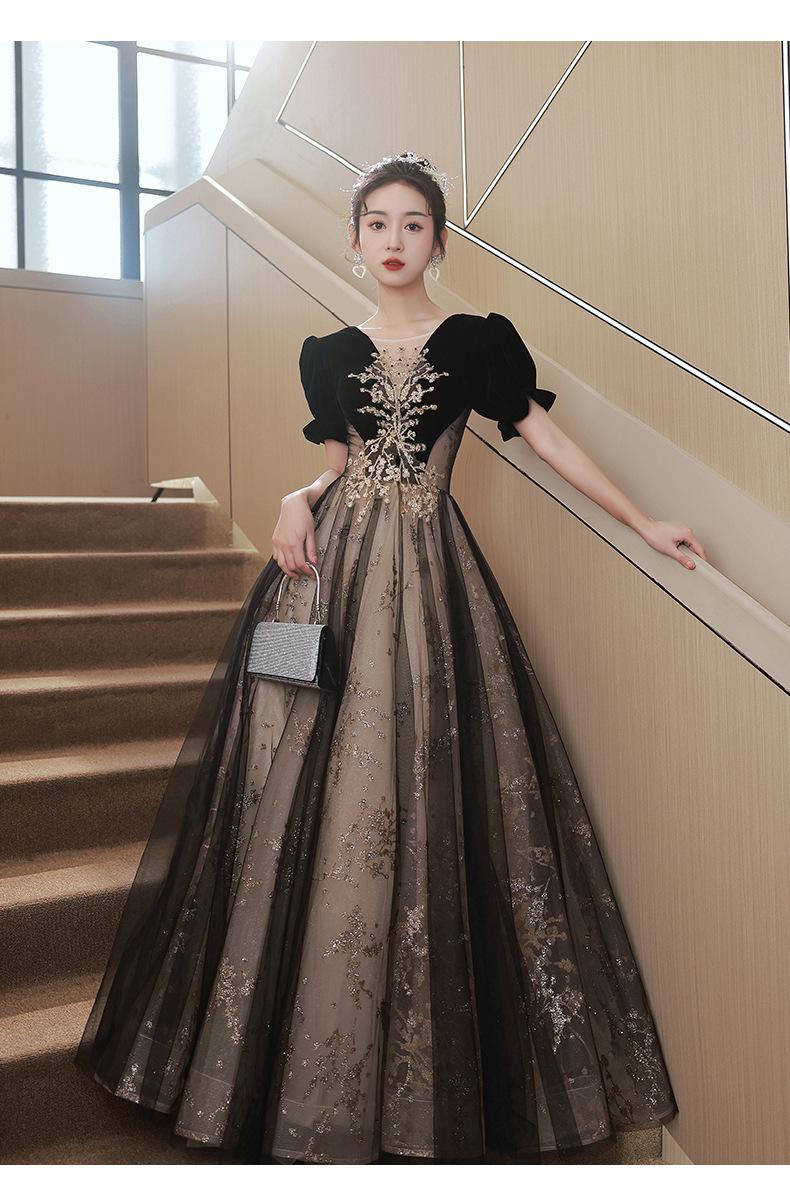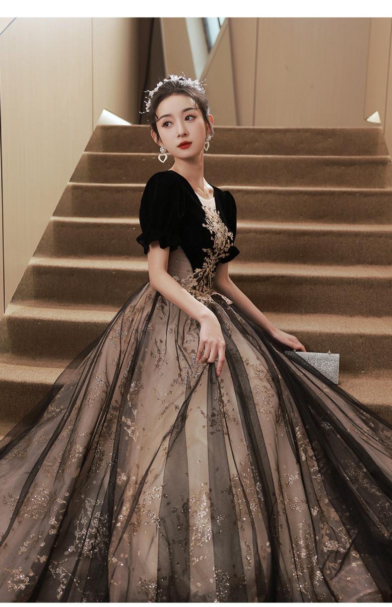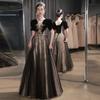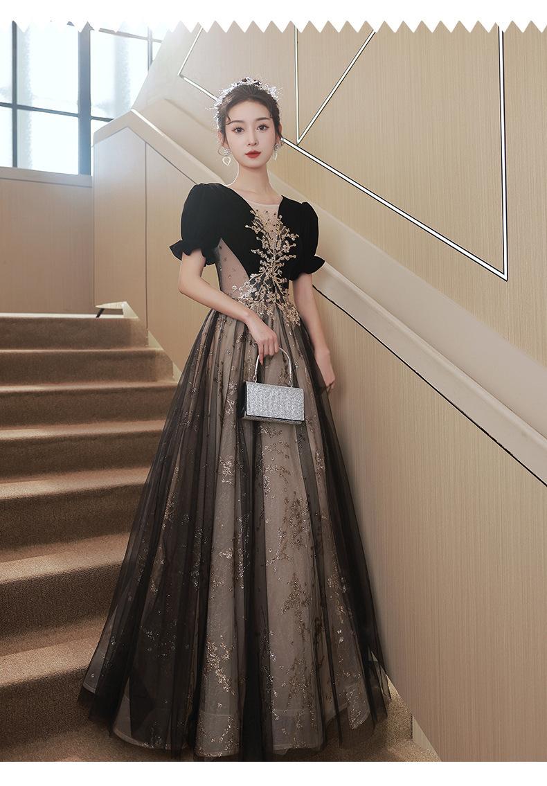 Vestido de Noche Negro, Reunión Anual de Nicho de Lujo Accesible, Vestido de Princesa Estilo Hepburn Francés, Traje de Actuación Coral para Examen de Arte para Adultos