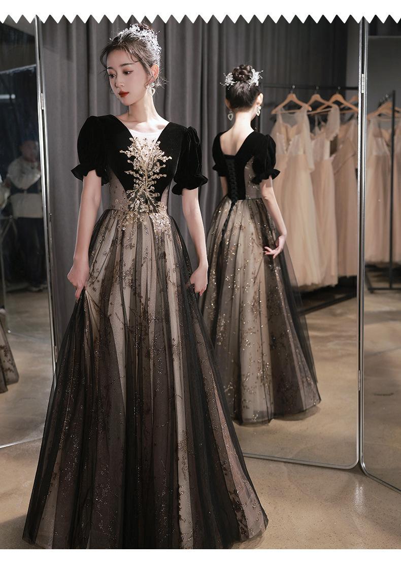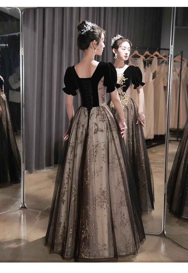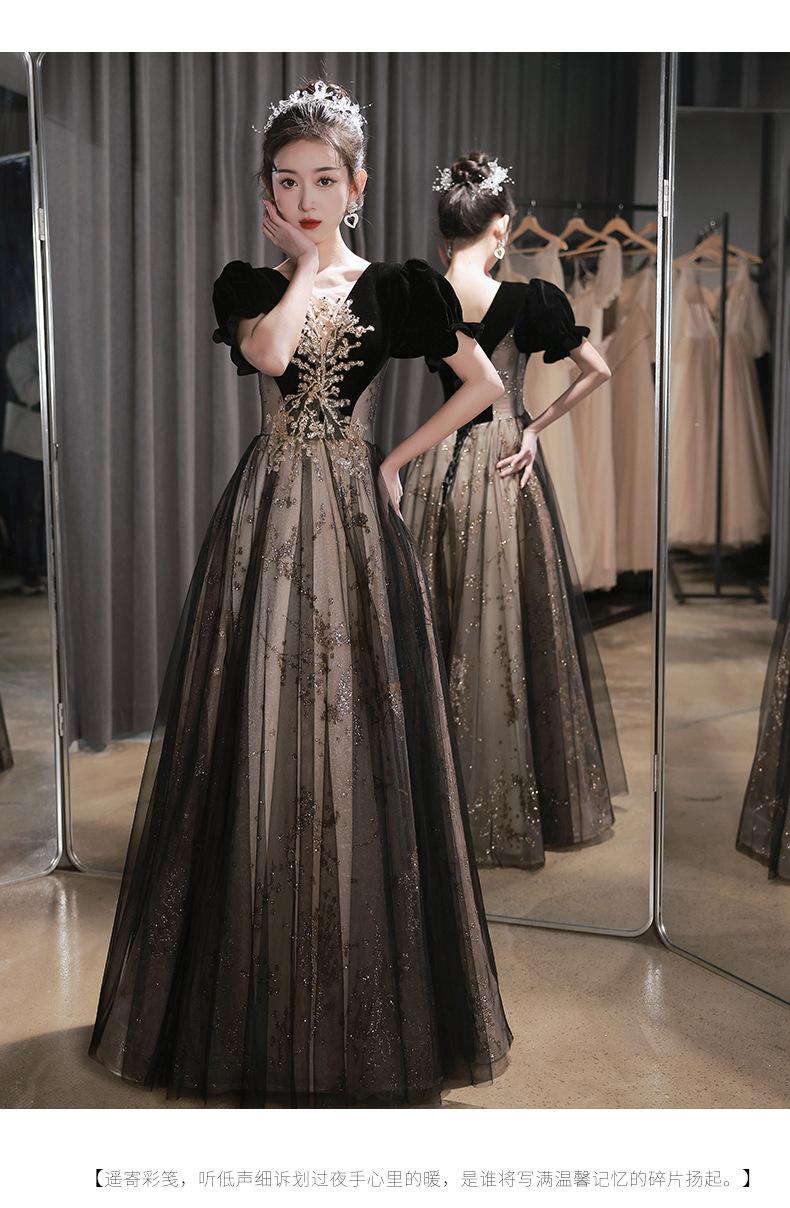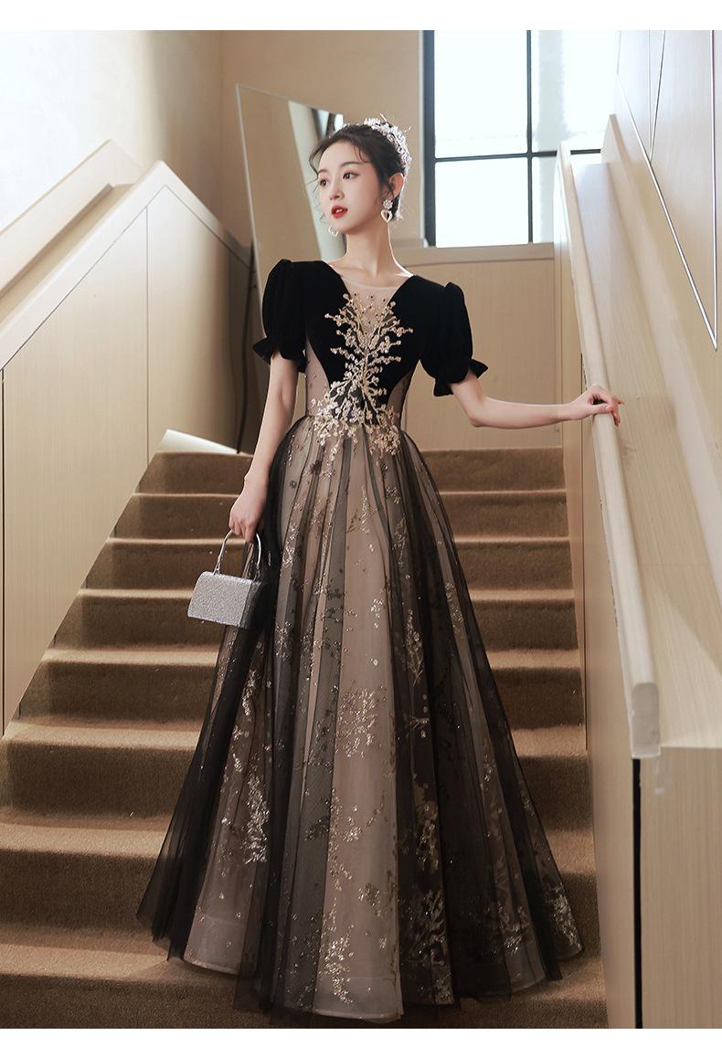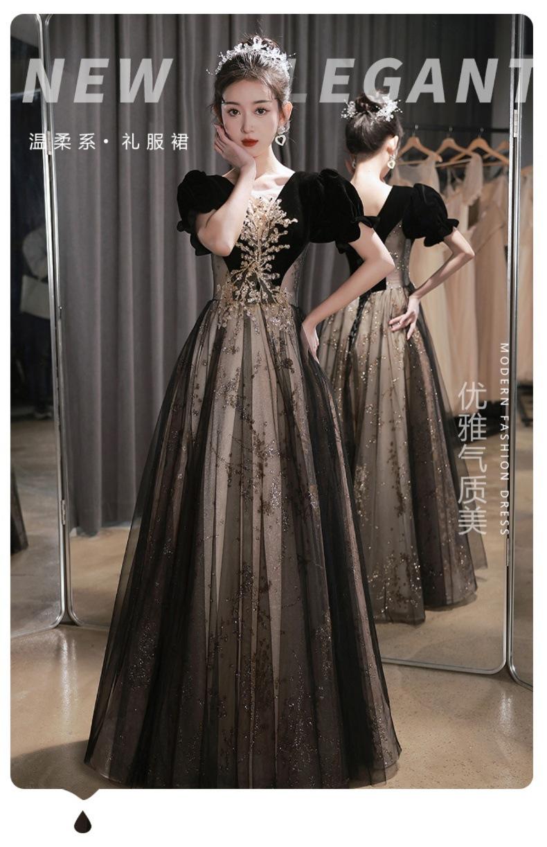 Vestido de Noche Negro, Reunión Anual de Nicho de Lujo Accesible, Vestido de Princesa Estilo Hepburn Francés, Traje de Actuación Coral para Examen de Arte para Adultos