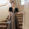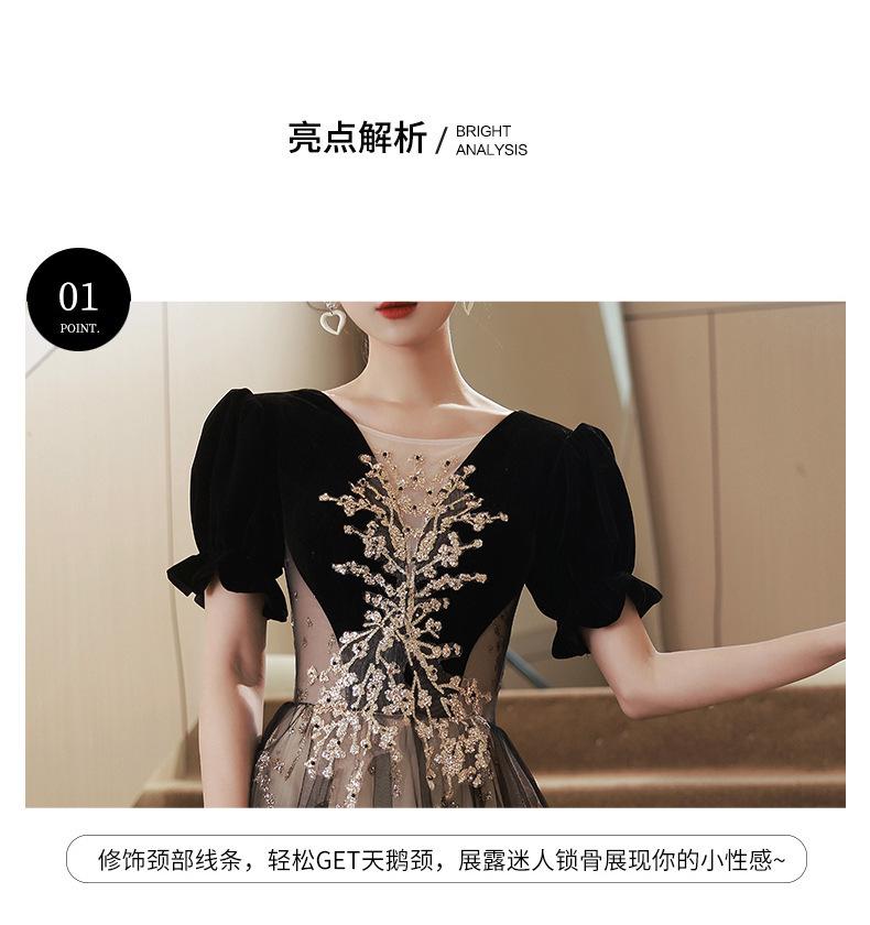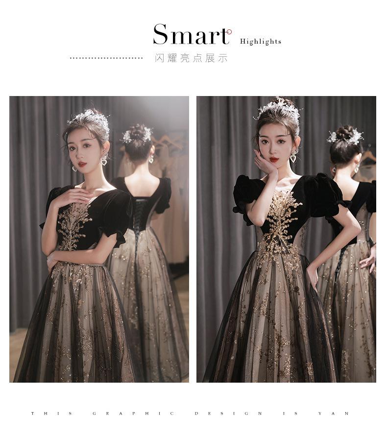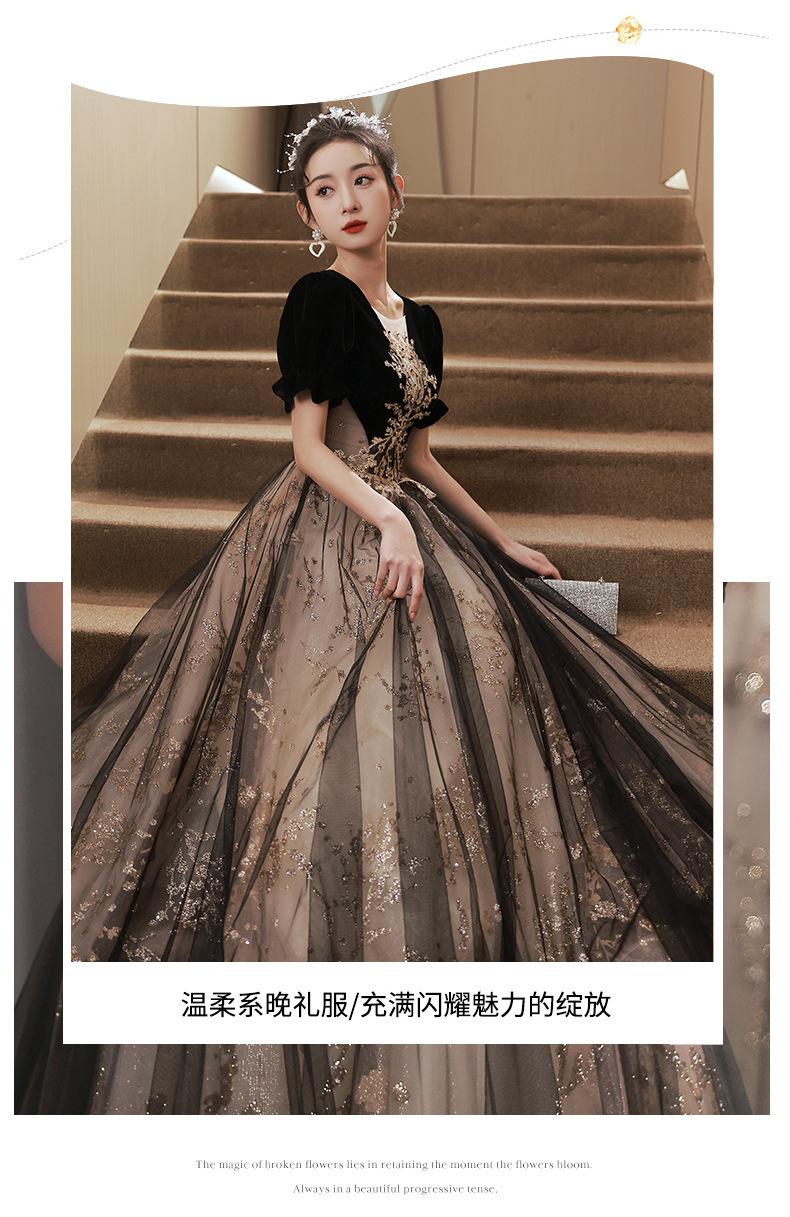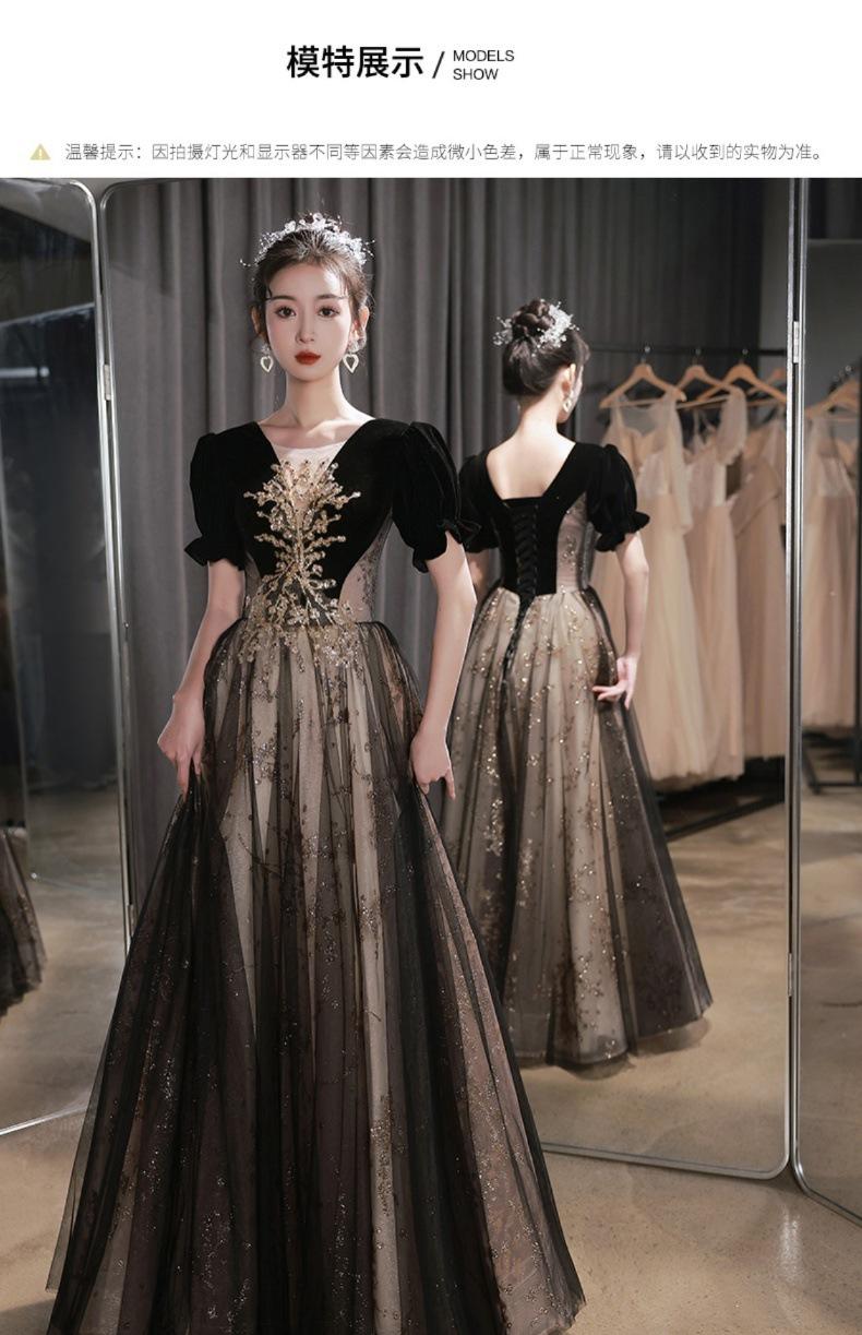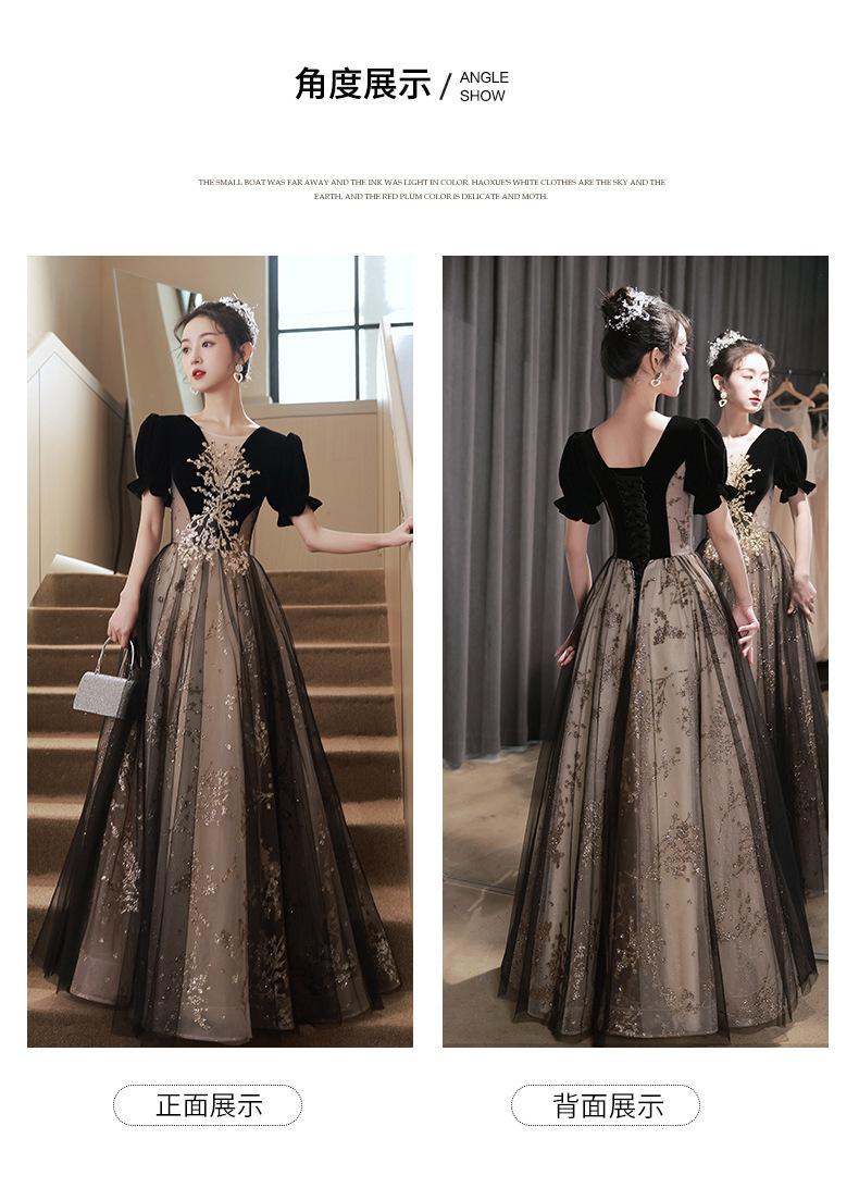 Vestido de Noche Negro, Reunión Anual de Nicho de Lujo Accesible, Vestido de Princesa Estilo Hepburn Francés, Traje de Actuación Coral para Examen de Arte para Adultos