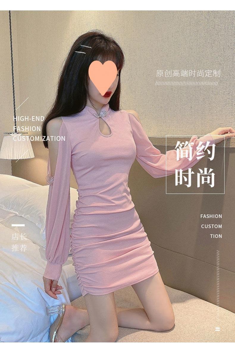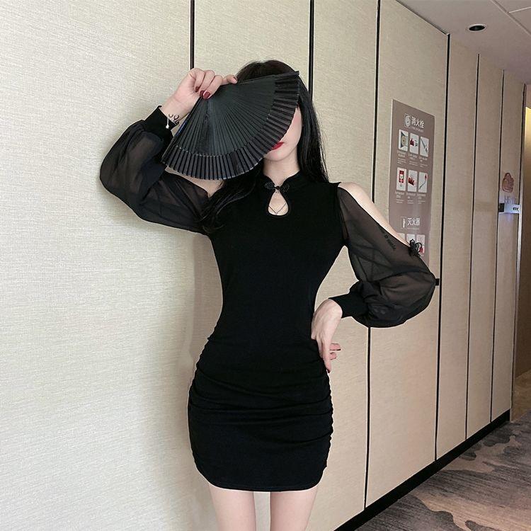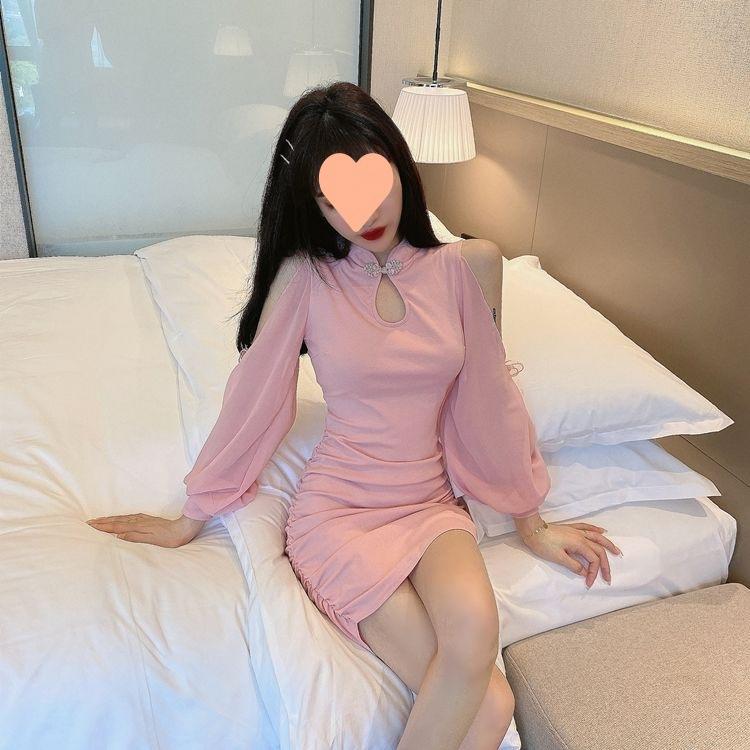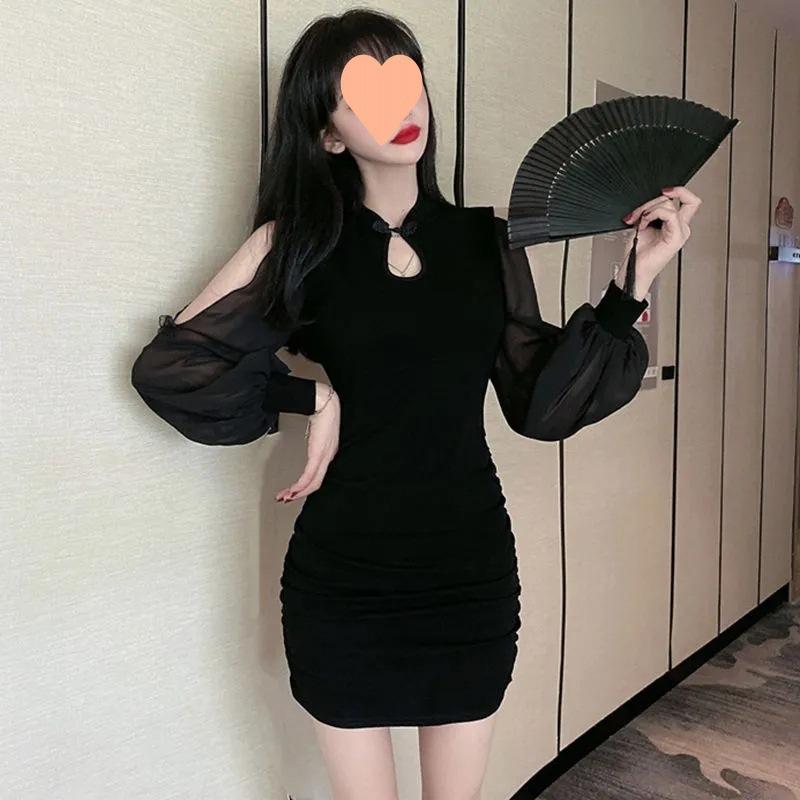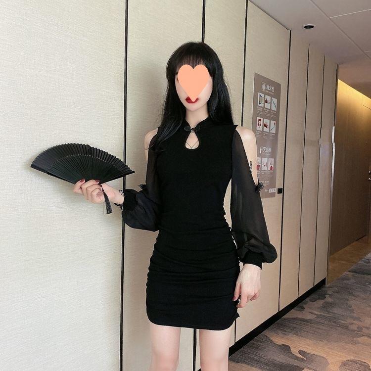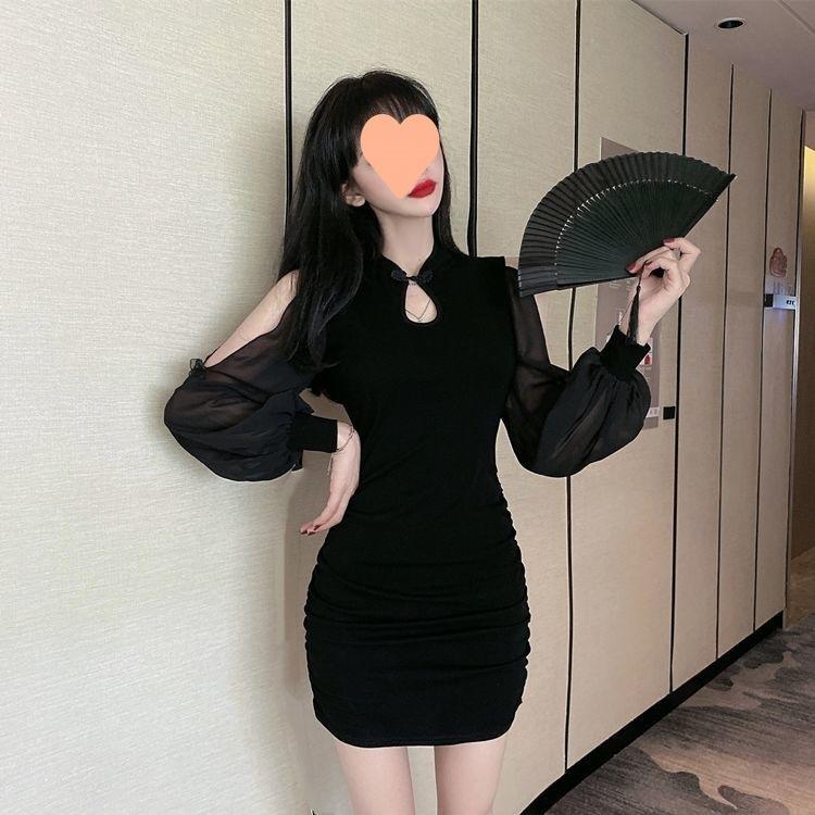 2025 Nuevo Nuevo Cheongsam de Manga Larga Chinoiserie Niña Joven Retro Ajustado Adelgazante Look Versión Mejorada Vestido