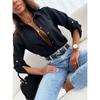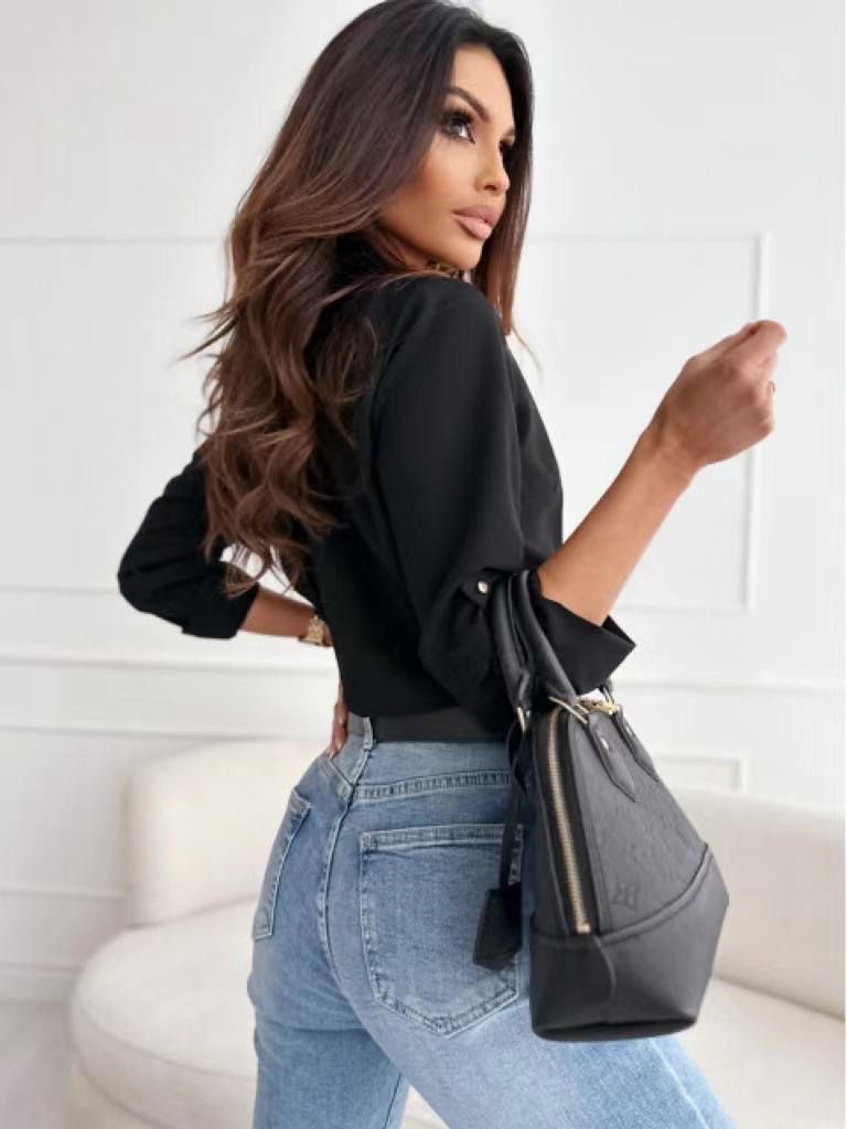Camisa sexy de color liso con cuello en V y manga larga de Amazon Independent Station 2024