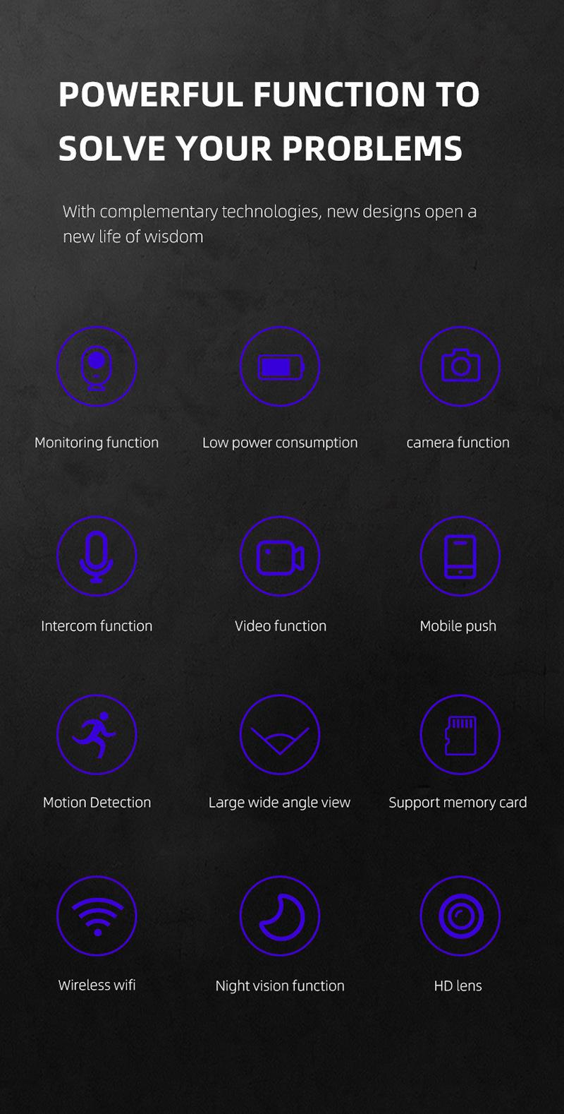 Night vision, Reset, Two way audio, Motion detection, Built-in siren