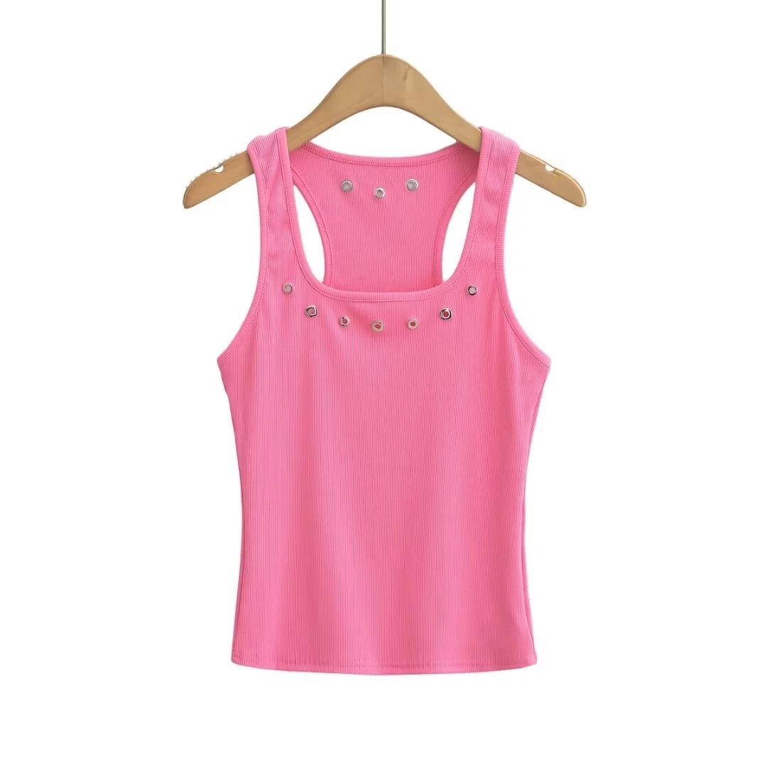 Camisola de verano 2023 Spice Girls de color liso, corte entallado, con forma de I, para mujer, diseño Pisan, sin mangas, ajustada, a la moda