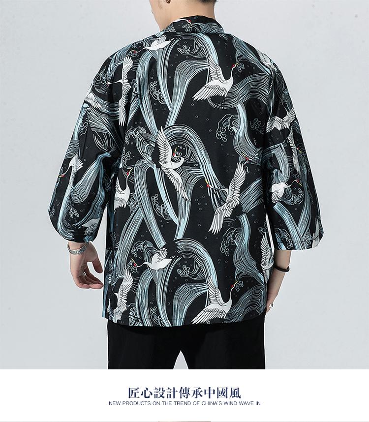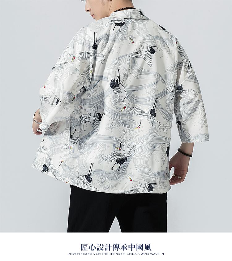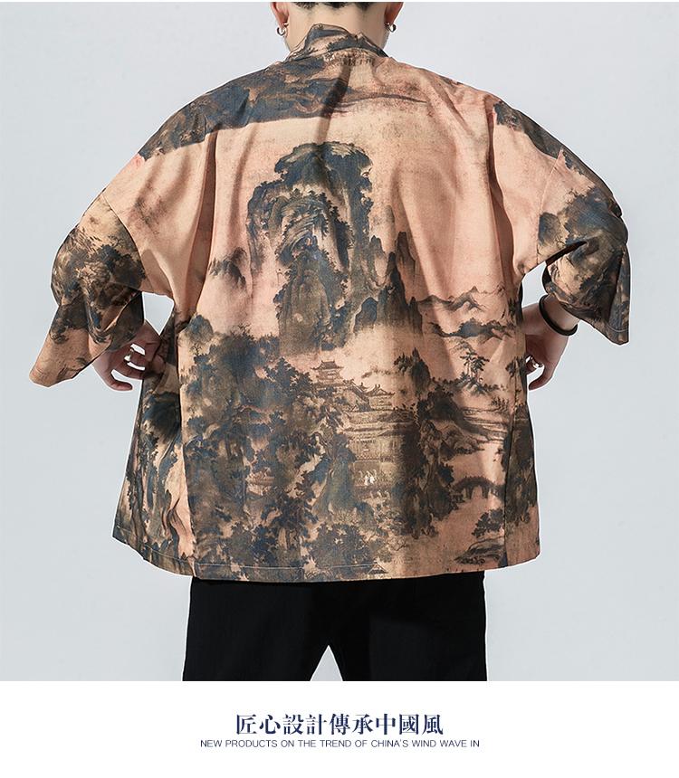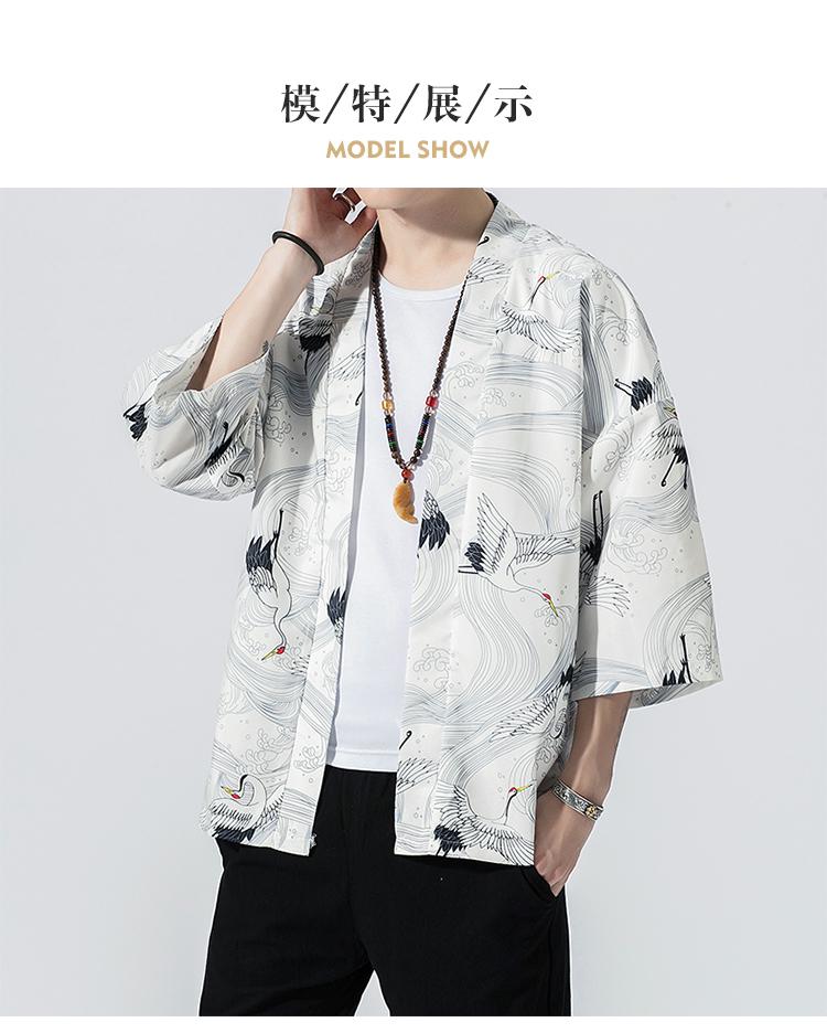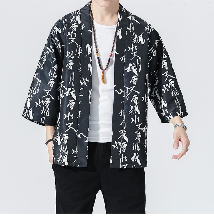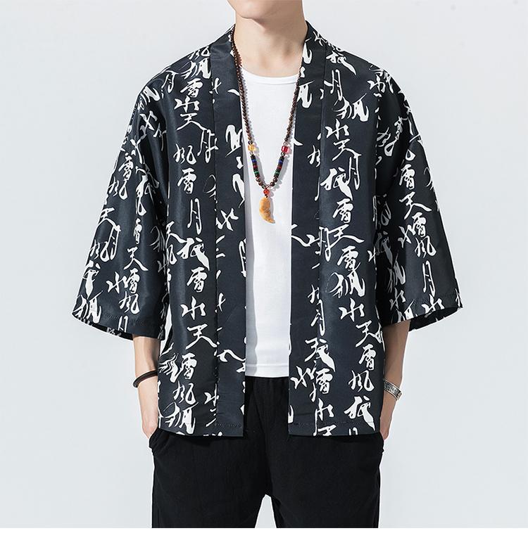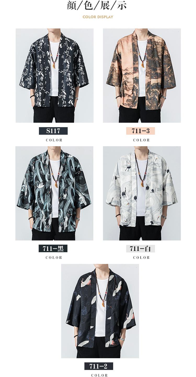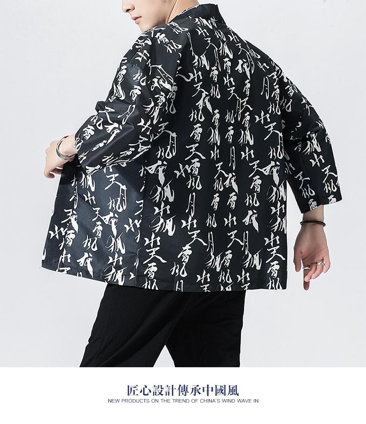Camiseta Delgada de Verano Estilo Chino Manga Tres Cuartos Cárdigan Capa Talla Grande Suelta Estampada Cárdigan Top Estilo Han Japonés