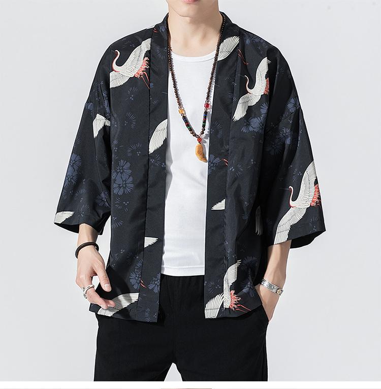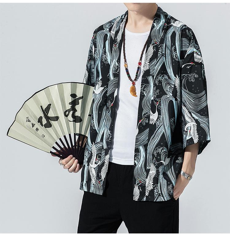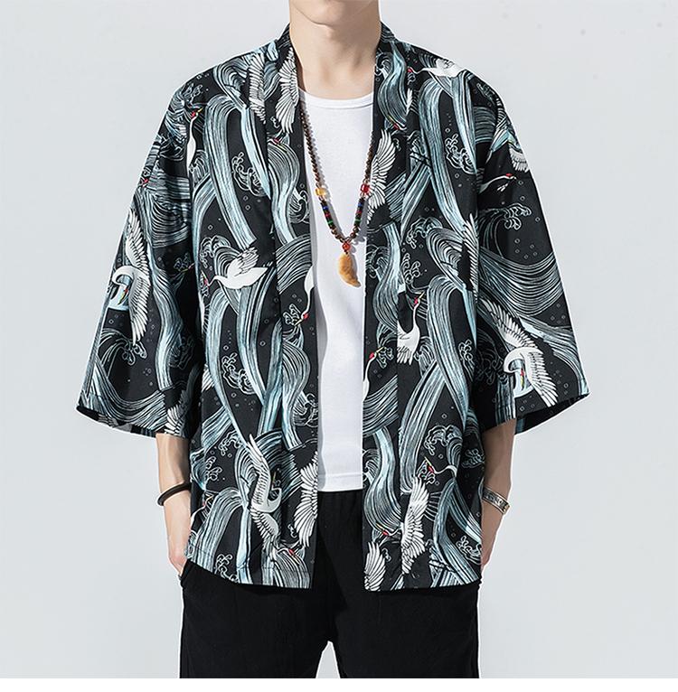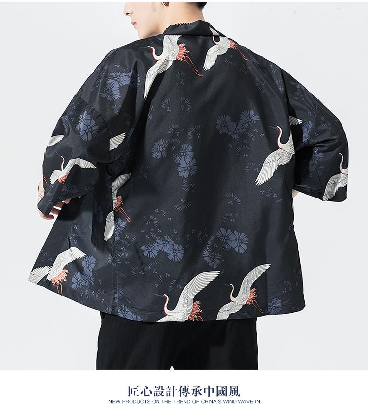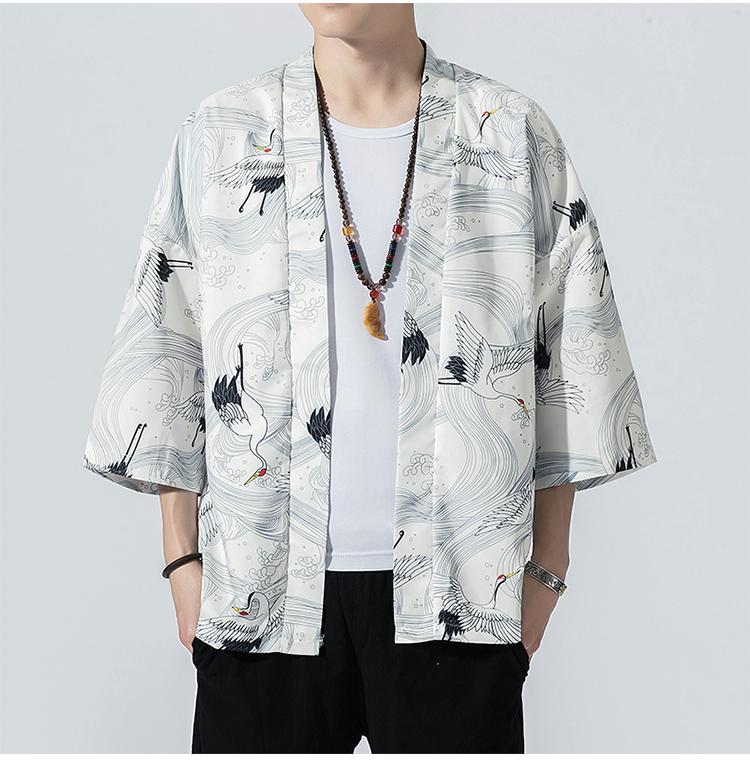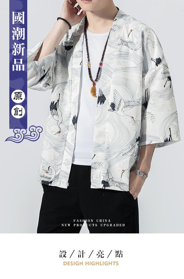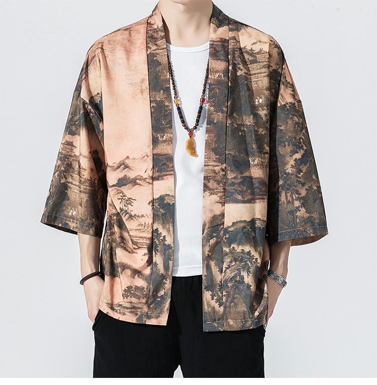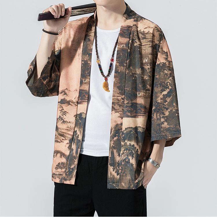 Camiseta Delgada de Verano Estilo Chino Manga Tres Cuartos Cárdigan Capa Talla Grande Suelta Estampada Cárdigan Top Estilo Han Japonés