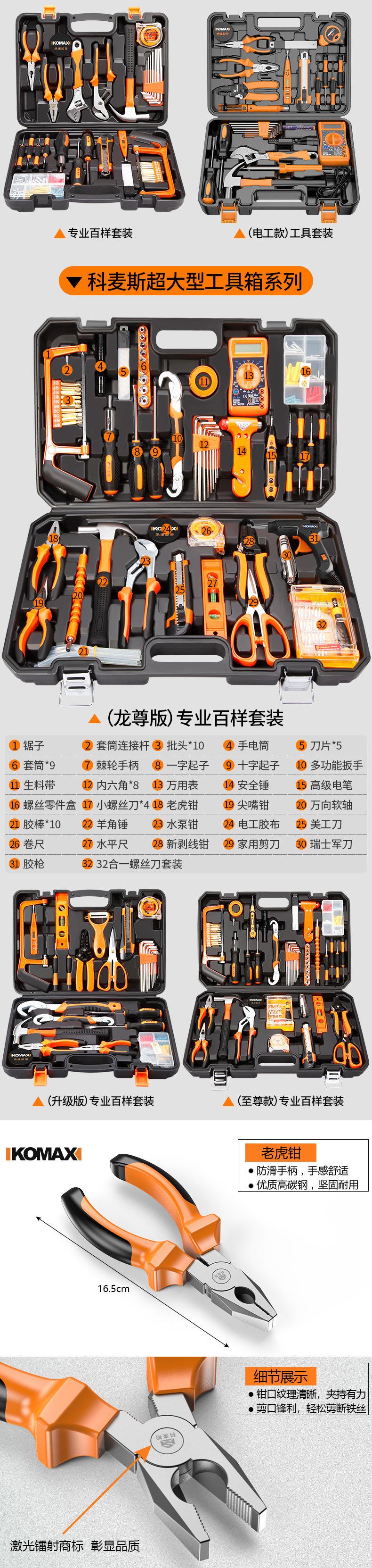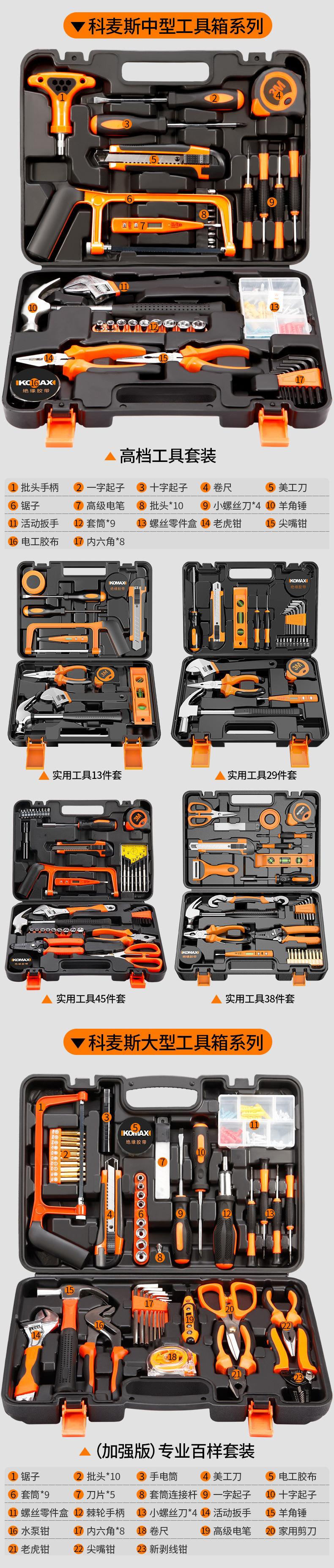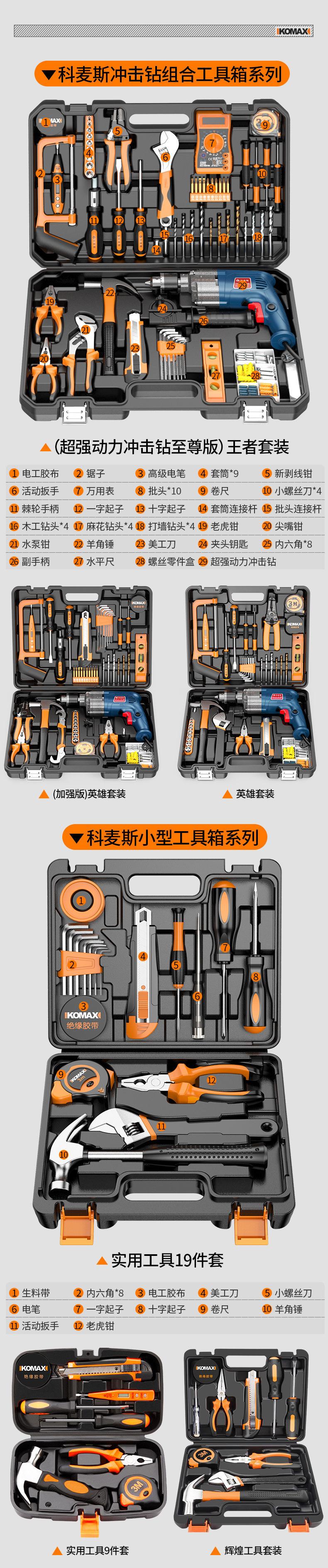 Herramientas manuales eléctricas para el hogar Komaisi, adecuadas para ferretería, electricistas, mantenimiento especial, caja de herramientas universal multifuncional.