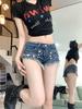 Verano 2025 Chica Americana Caliente Retro Corte Crudo Uña de Sauce Shorts de Mezclilla de Tiro Bajo para Mujer Pantalones Cortos de Línea A a la Moda