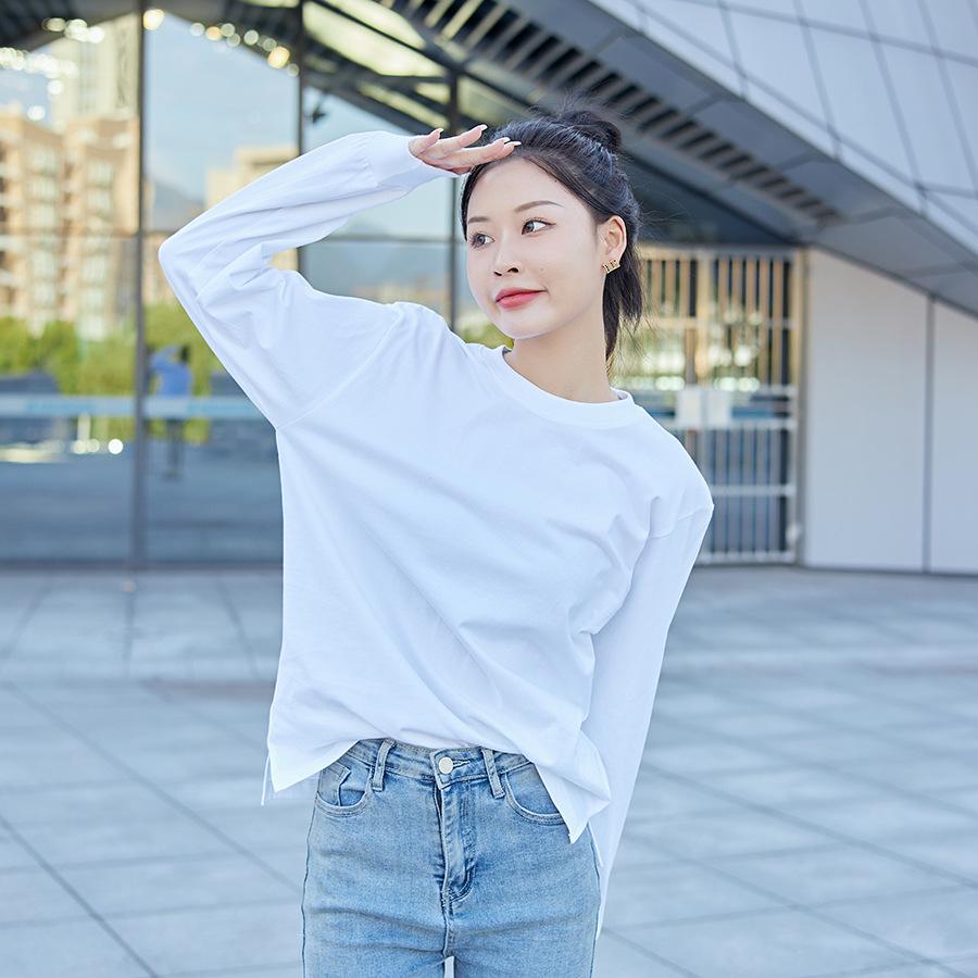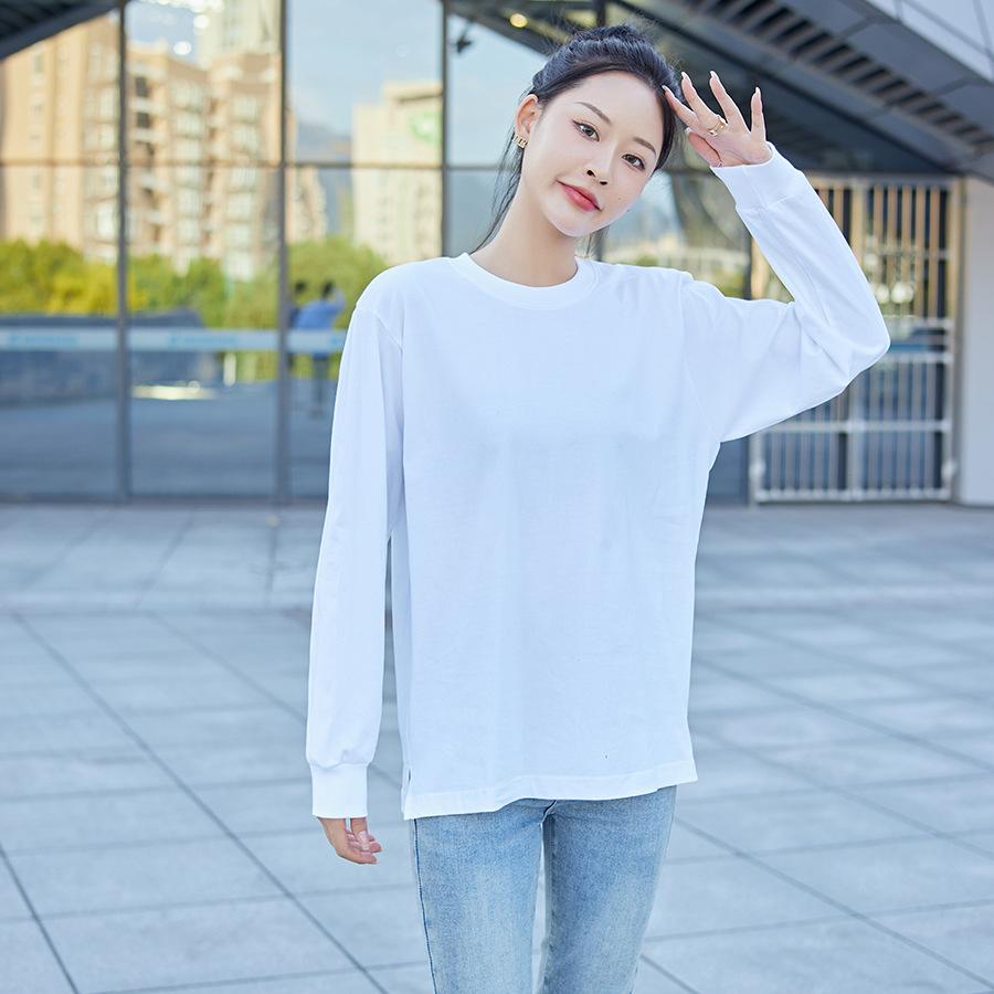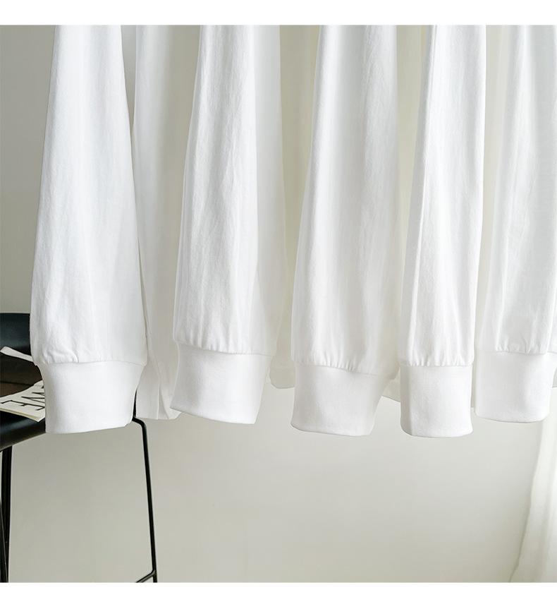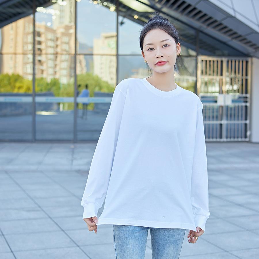 Camiseta Pesada Blanca Zhijian T220G para Mujer de Manga Larga para Primavera y Otoño Camiseta Interior Blanca Top Holgado de Cuello Redondo