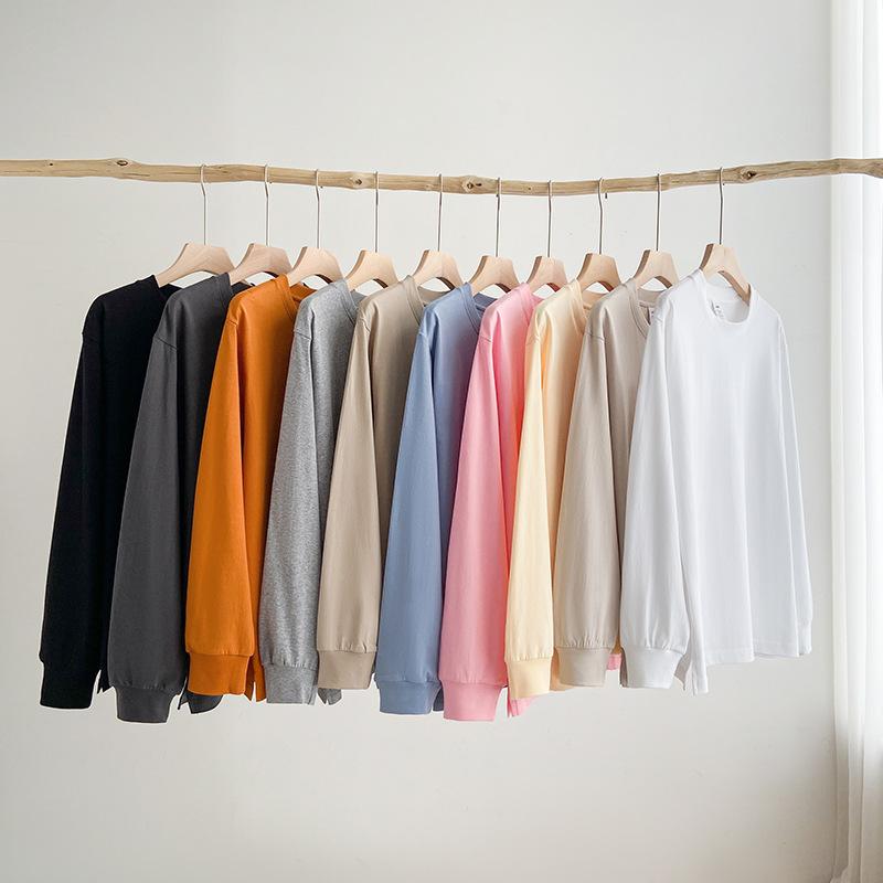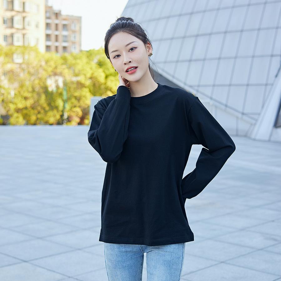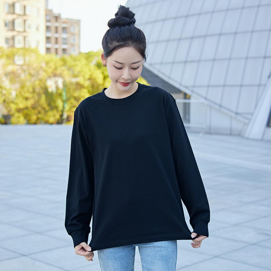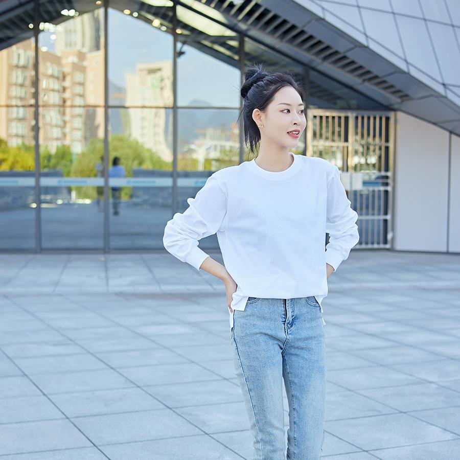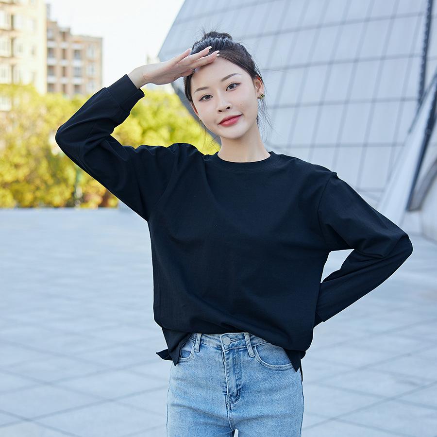 Camiseta Pesada Blanca Zhijian T220G para Mujer de Manga Larga para Primavera y Otoño Camiseta Interior Blanca Top Holgado de Cuello Redondo