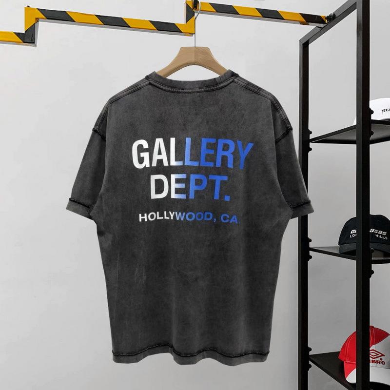 Camiseta holgada de manga corta con cuello redondo y estampado de la marca de moda urbana de hip hop europea y americana GD Gallery Dept para hombre
