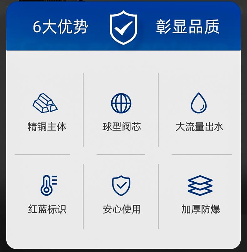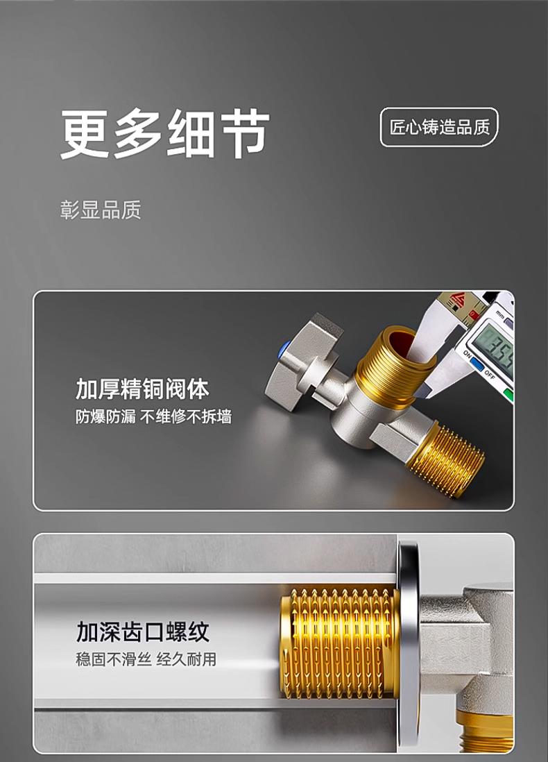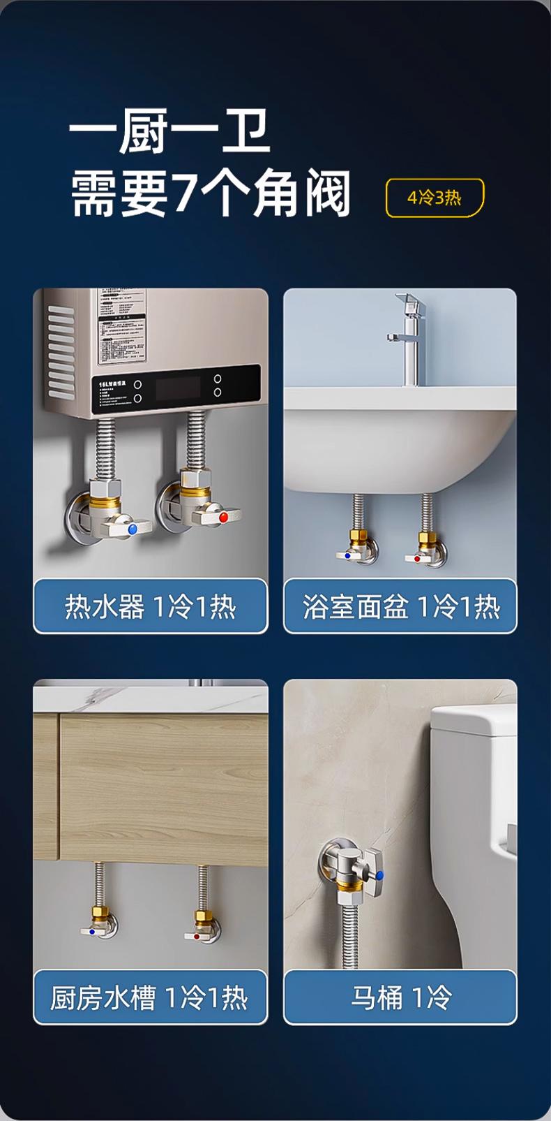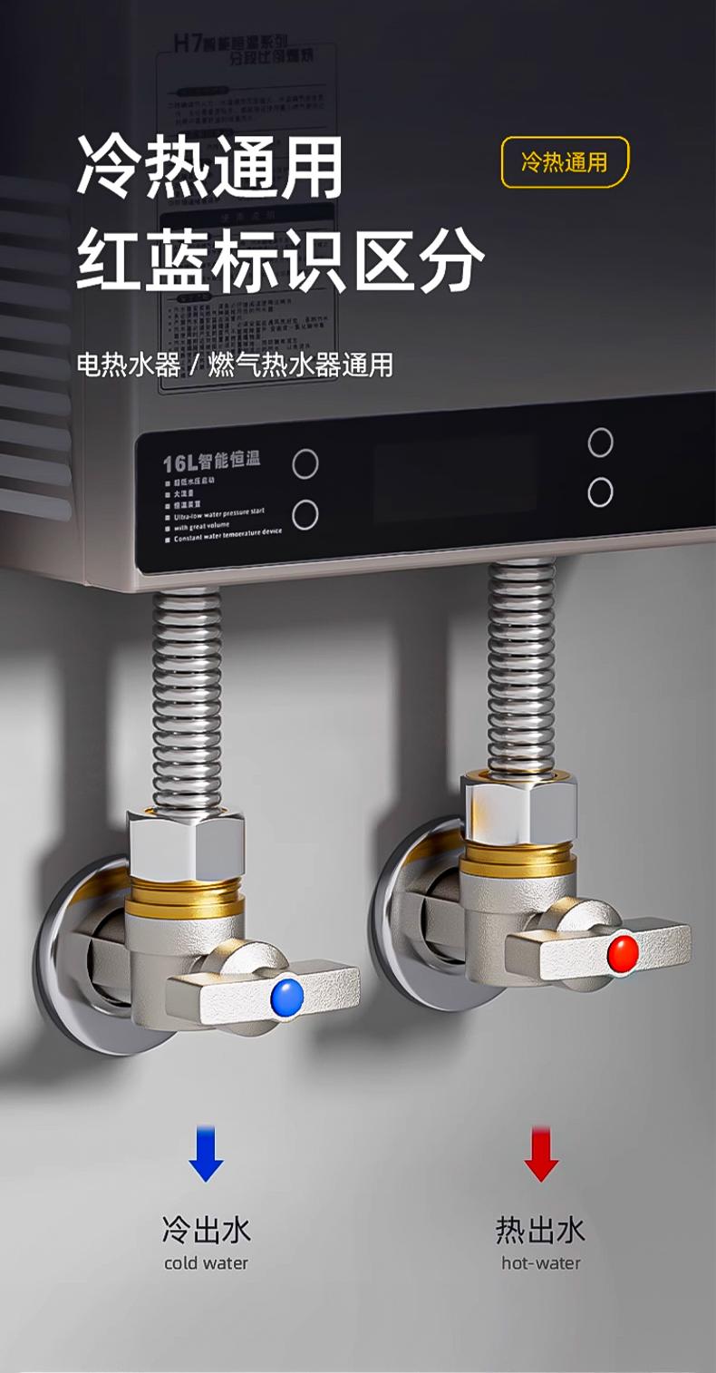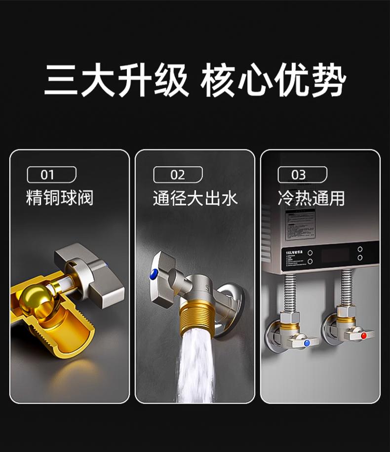 Válvula de ángulo de flujo grande con núcleo de bola totalmente abierto, todo de cobre, calentador de agua a gas para agua fría y caliente, válvula de bola especial, interruptor de válvula triangular de 4 puntos