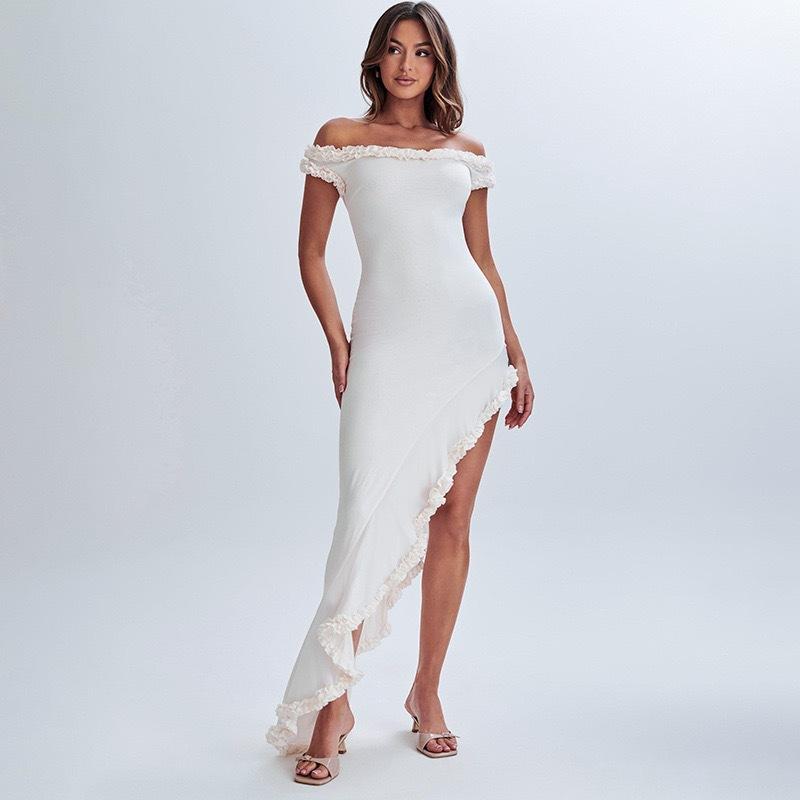 Comercio exterior europeo y americano mujeres verano 2025 nueva moda de gama alta sin tirantes falda ajustada vestido sexy cuello