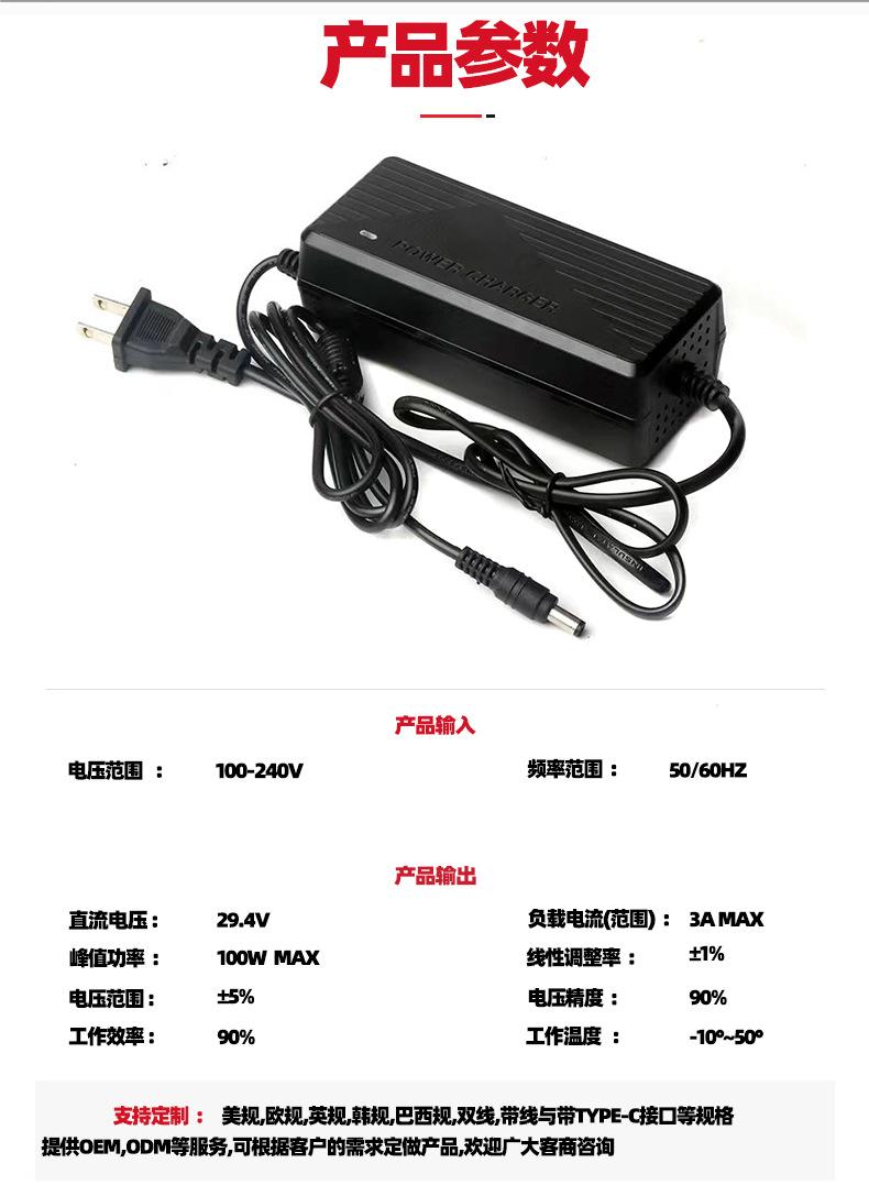 Cargador de Batería de Litio 29.4V3A 7 Celdas 25.9V2A4A Batería de Polímero Ternaria de Litio Cargador de Iones de Litio