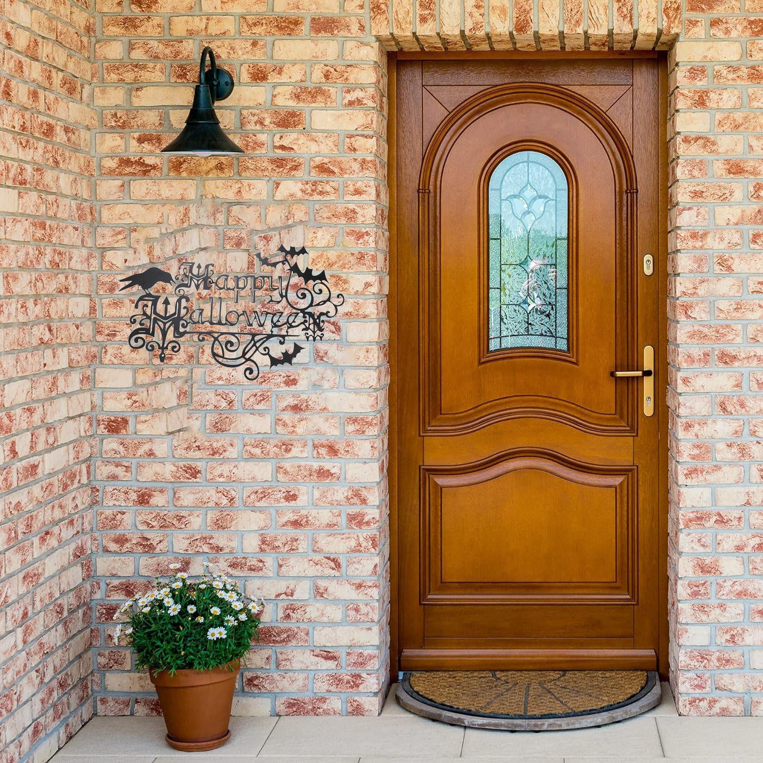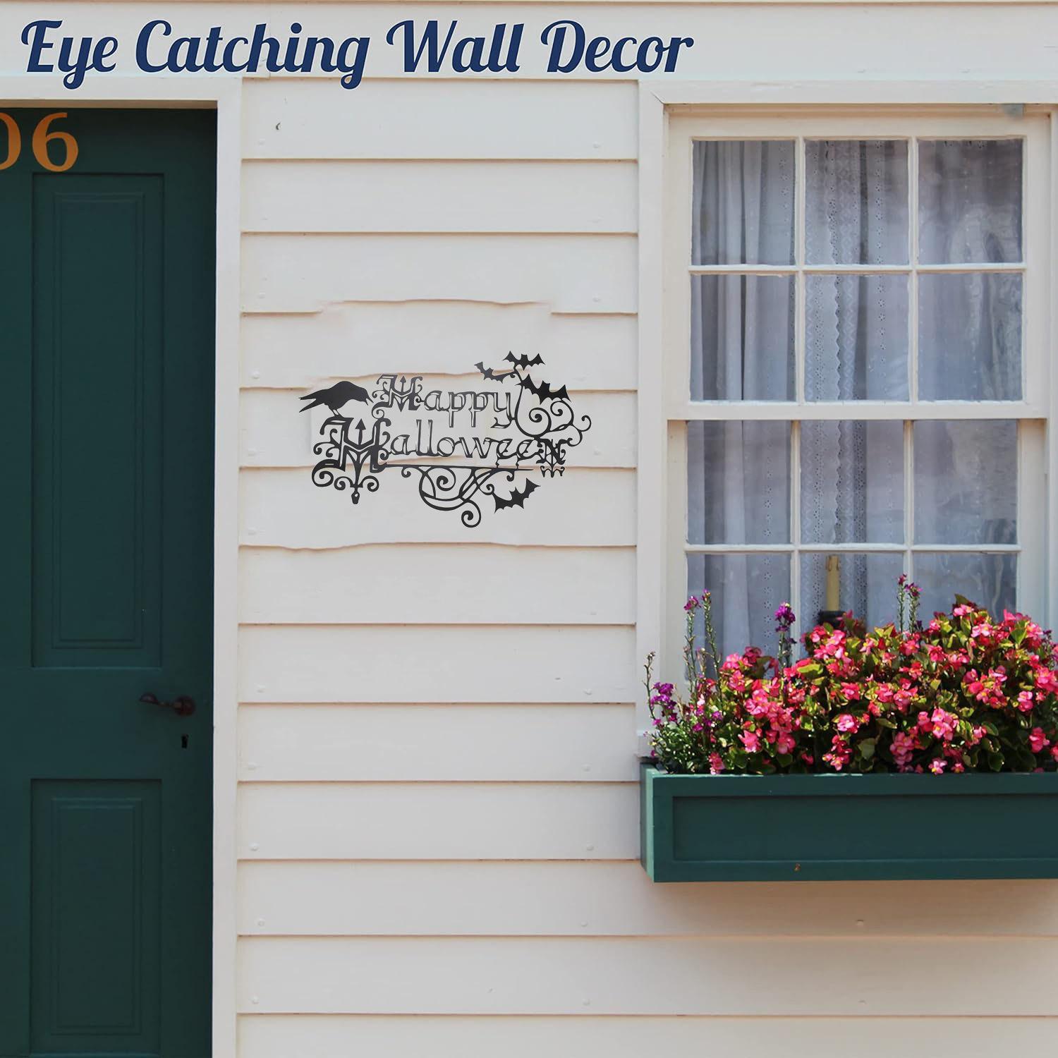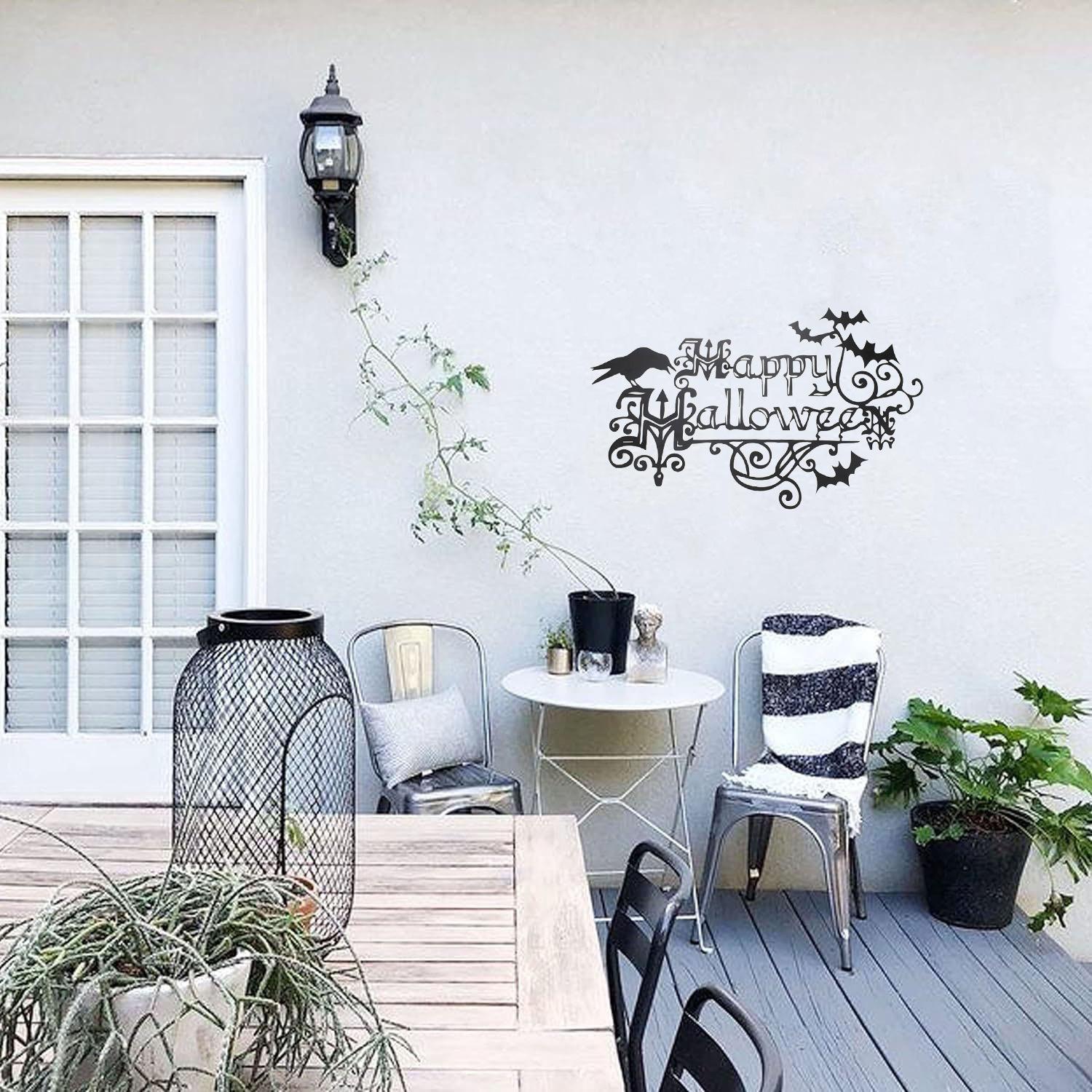 Decoración de muebles de hierro con forma de murciélago y cuervo de Halloween de la estación independiente transfronteriza TK, adornos colgantes de pared para la entrada del patio.