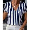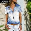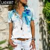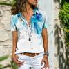 Blusa holgada de manga corta para mujer de Amazon, con estampado azul fino, para primavera de 2021.