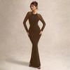Europa y Estados Unidos transfronterizo 2024 otoño temperamento femenino sexy malla de doble capa ajustado gran espalda descubierta vestido de encaje al por mayor