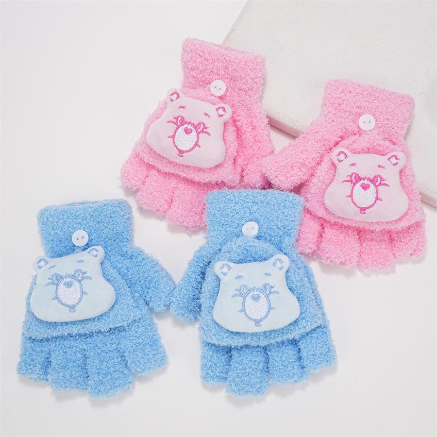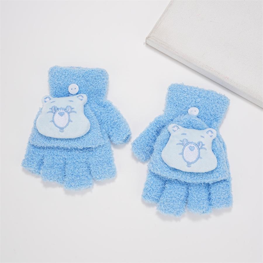 Guantes de dibujos animados para niños de otoño e invierno, cálidos y resistentes al frío, de medio dedo, de tamaño pequeño y mediano, para niños y para escribir.