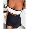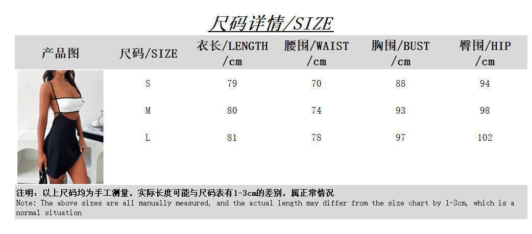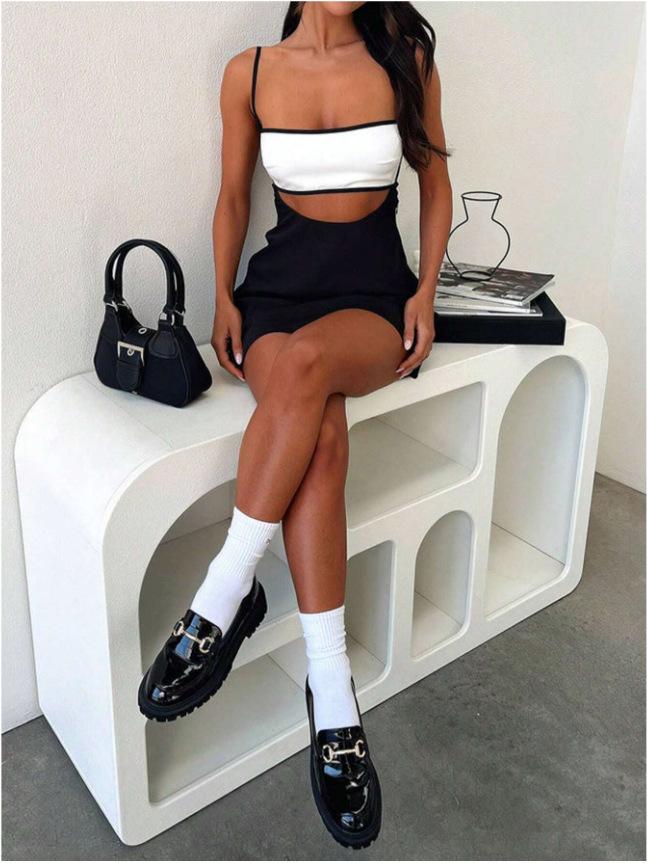 Vestido de mujer nuevo, sexy, sin espalda, blanco y negro, sin mangas, con costuras, con tirantes y cuello cuadrado, estilo europeo y americano transfronterizo