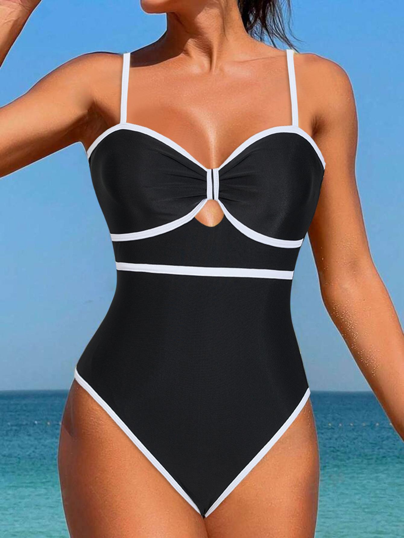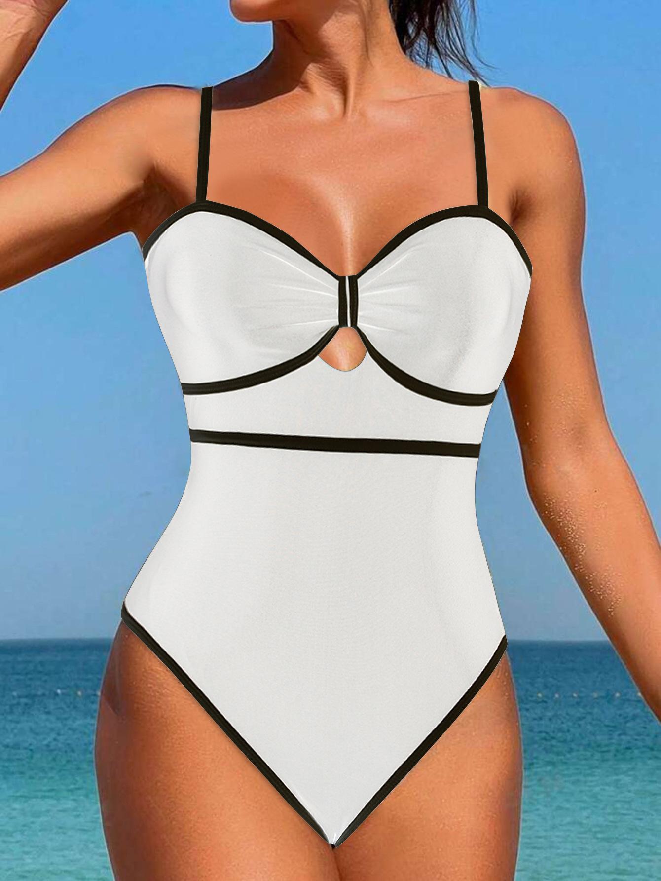 Traje de Baño Ajustado Sexy Europeo y Americano Nuevo de Rayas Blancas y Negras 2025 Mujer Playa Spa Traje de Baño Amazon