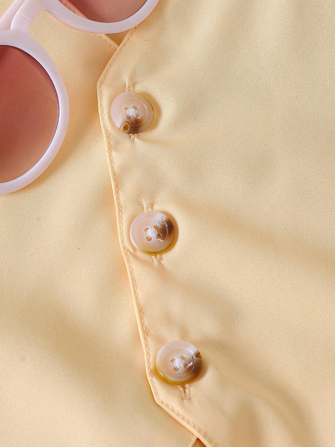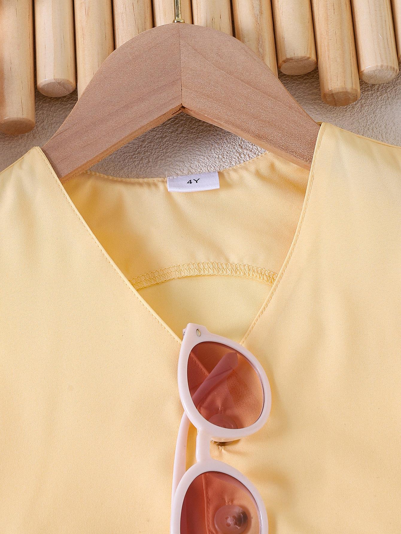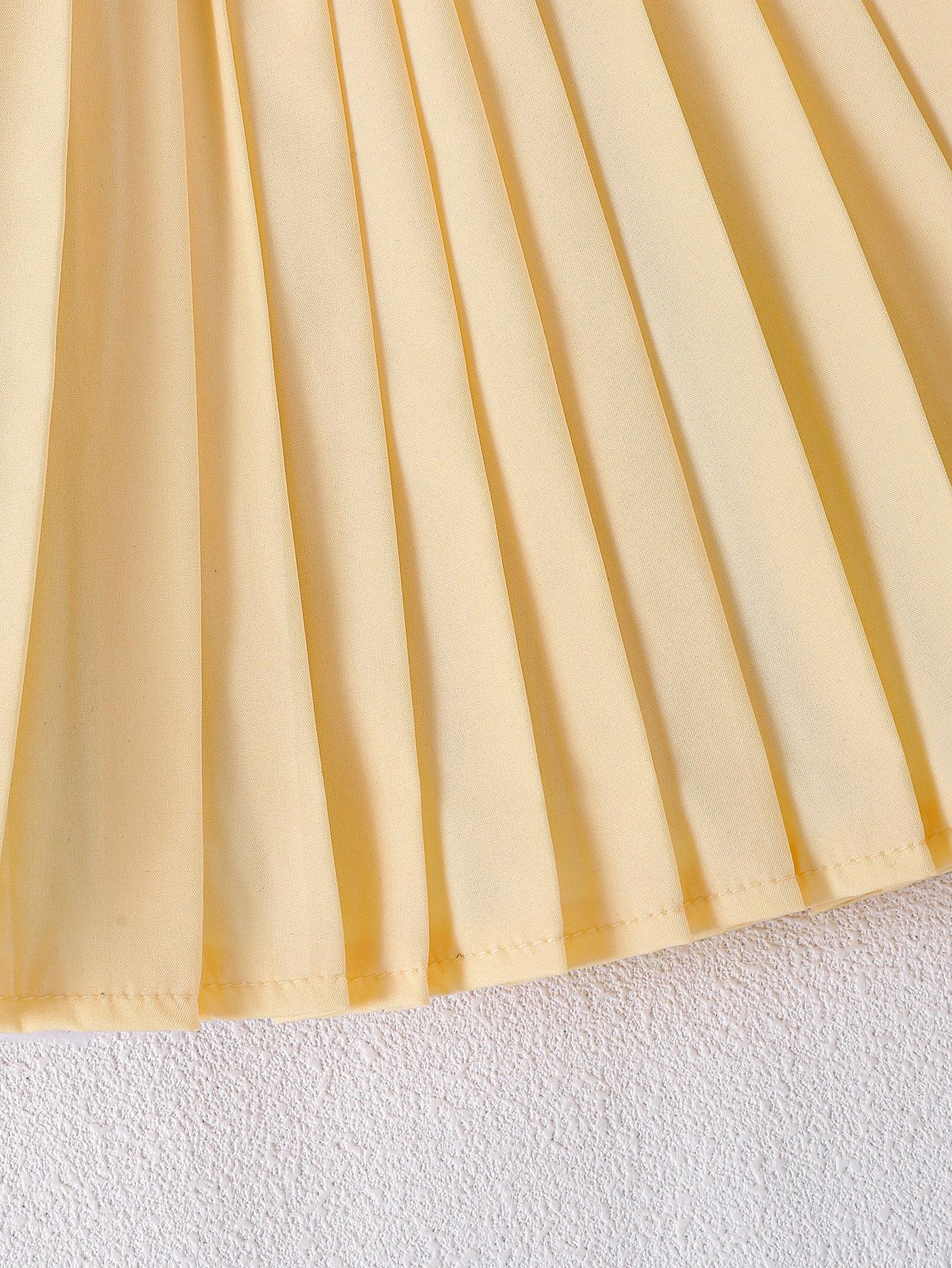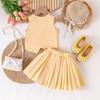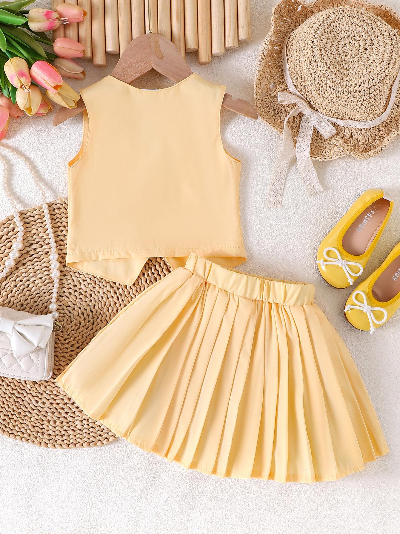 Conjunto de dos piezas para niñas europeas y americanas, especial transfronterizo de verano 2025: chaqueta sin mangas con cuello en V y falda plisada.